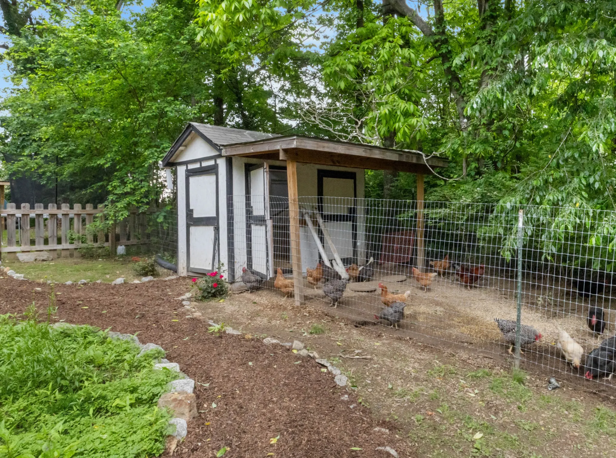 Peaceful Cul-de-Sac Living with Natural Beauty & Room to Grow 112 Saint James St., Charlotte Tucked quietly at the end of a cul-de-sac, this home offers privacy, charm, and a setting that feels like a retreat. The lot is beautifully maintained and surrounded by mature cherry, peach, and apple trees, lush blueberry bushes, and open green space. A treehouse adds character, while a chicken coop and thriving garden spaces invite you to live closer to the land. Whether you’re sipping coffee on the porch or picking fruit steps from your kitchen, life here moves at a peaceful pace. Inside, the home has been thoughtfully updated for modern comfort. You’ll find newer flooring, upgraded laundry room storage, and a built-in bookshelf in the master bedroom. From the dining area, French double doors open to a brand-new screened-in porch, perfect for indoor-outdoor living. The roof, HVAC, and water heater are all under 5 years old, offering long-term value and reliability. A new 20×24 shop with a 10ft lean-to and overhead storage rounds out the property with versatile space for work or hobbies. This is more than a home—it’s a calm, well-loved space with room to grow, tucked in a quiet, welcoming neighborhood.