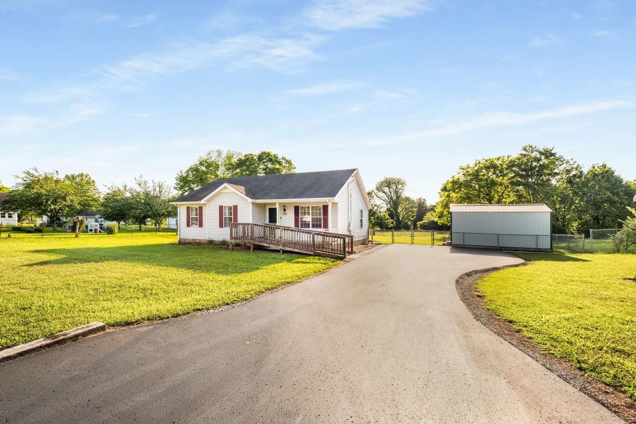 Welcome to your slice of Tennessee paradise. This beautifully maintained one-level home offers the perfect blend of comfort, privacy, and convenience – all nestled on a scenic half-acre lot in Murfreesboro, just minutes from MTSU, downtown, and major shopping and dining. Inside, you’ll find 3 spacious bedrooms, 2 full bathrooms, and a bright living room with a tray ceiling that adds an elegant touch. The primary suite features a private bath, while two additional bedrooms offer space for family, guests, or a home office. A utility closet with built-in shelving adds function without sacrificing space. Step outside and feel the charm of Southern living. Enjoy coffee on your covered front porch or relax on the back deck while overlooking a fully fenced backyard bursting with mature fruit trees and grapevines. Whether you’re a gardener, a hobbyist, or simply someone who loves wide open spaces, this backyard delivers. Need extra space? You’ll love the detached workshop with electricity – perfect for creative projects or storing gear – plus an additional storage shed. With no HOA, no city taxes, and a peaceful setting just off E Main St/Woodbury Pike, this is one of the best-kept secrets in the area. Perfect for those looking for homes for sale in Murfreesboro with land! Don’t wait – homes like this move fast! Call today to schedule your private showing and discover why this is the one you’ve been waiting for.