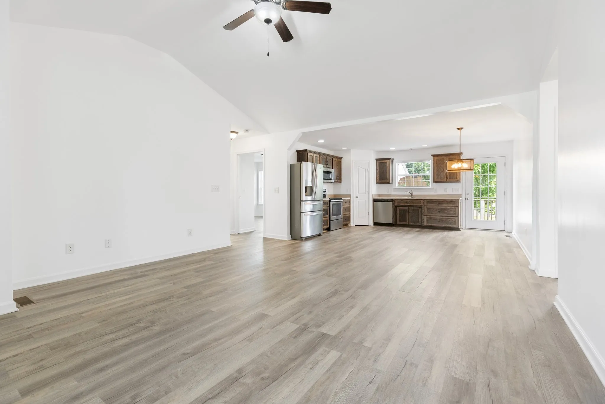 This charming single-story 3 bed, 2 bath home has everything you’re looking for! Step inside to a bright, open layout with plenty of space to spread out. The kitchen, eat-in area, and living room flow together seamlessly, with high ceilings and lots of natural light plus durable LVP flooring throughout. The kitchen features stainless steel appliances and warm wood cabinets that add character. The primary bedroom includes a walk-in closet and private bath, while the two additional bedrooms on the opposite side of the home are perfect for kids, guests, or a home office. An oversized laundry room adds extra convenience and versatility. Outside, enjoy the covered front patio and a back deck that’s perfect for those upcoming warm summer nights. The 2-car garage offers great storage, and with no HOA, you’ll enjoy more flexibility. Located in a quiet neighborhood just minutes from downtown Columbia and close to the local college, it’s a home that truly checks all the boxes.