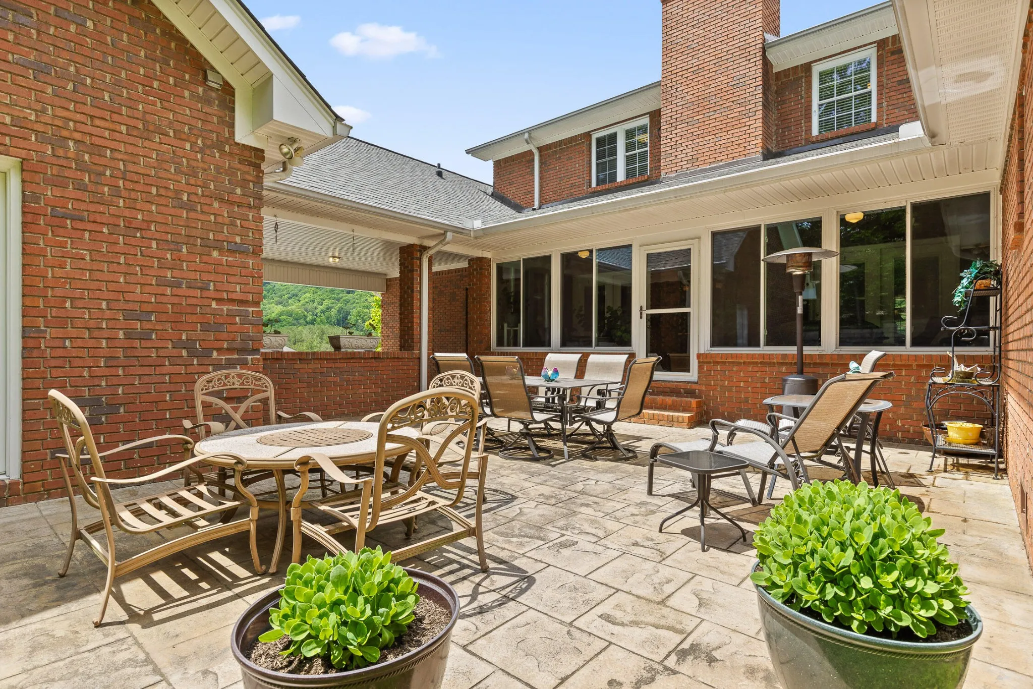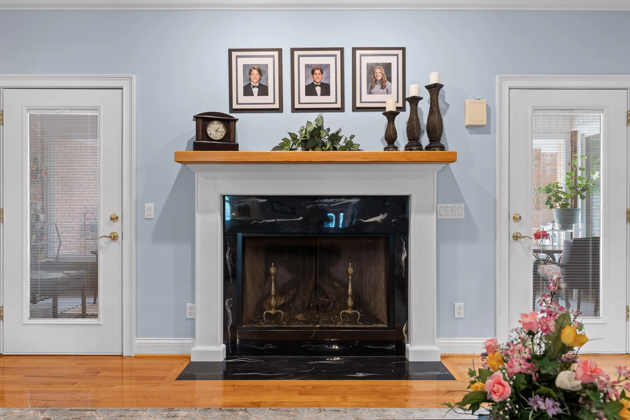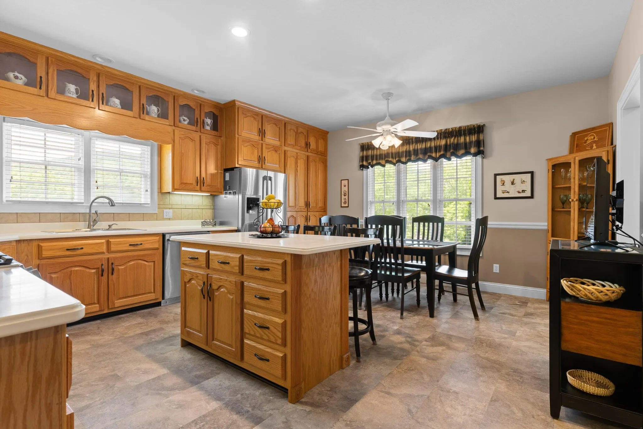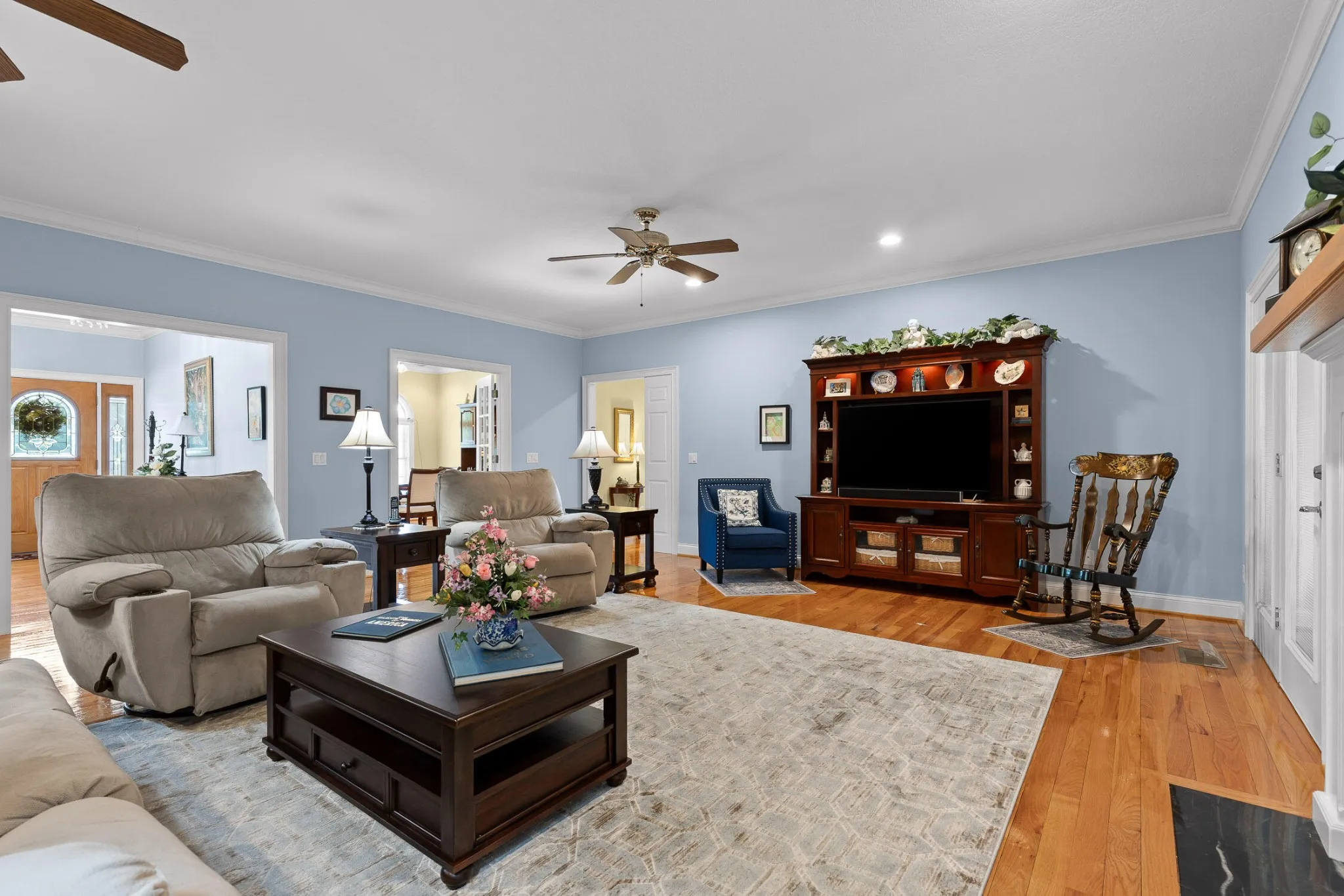 The great room is centered around a beautiful fireplace, perfect for wood-burning or gas logs. Just off the great room is a bright all-seasons sunroom with custom sliding windows, an ideal space to relax, entertain, or enjoy year-round natural light.