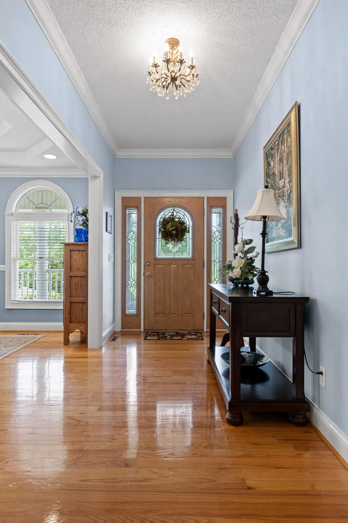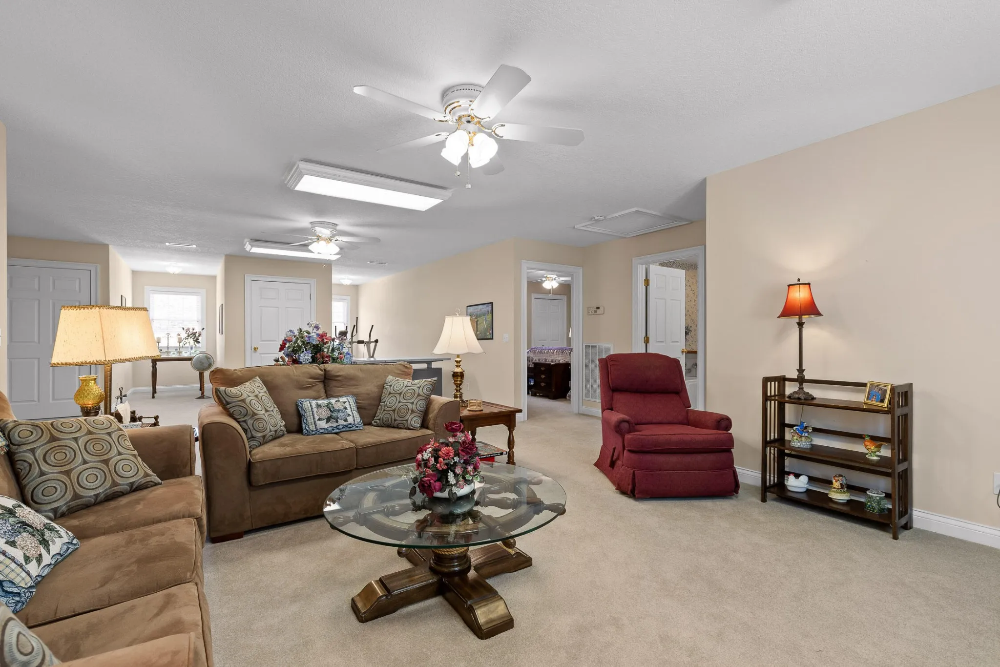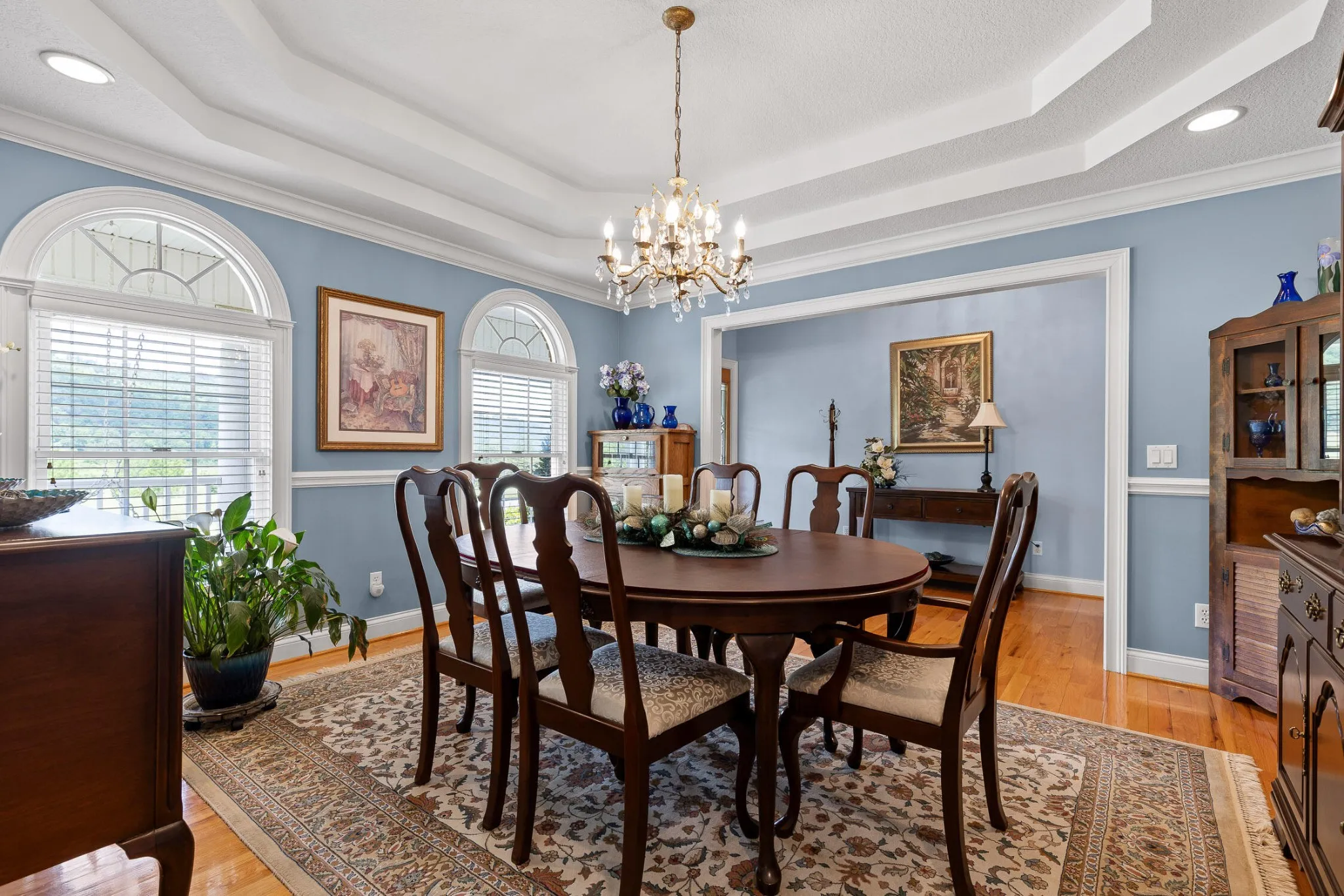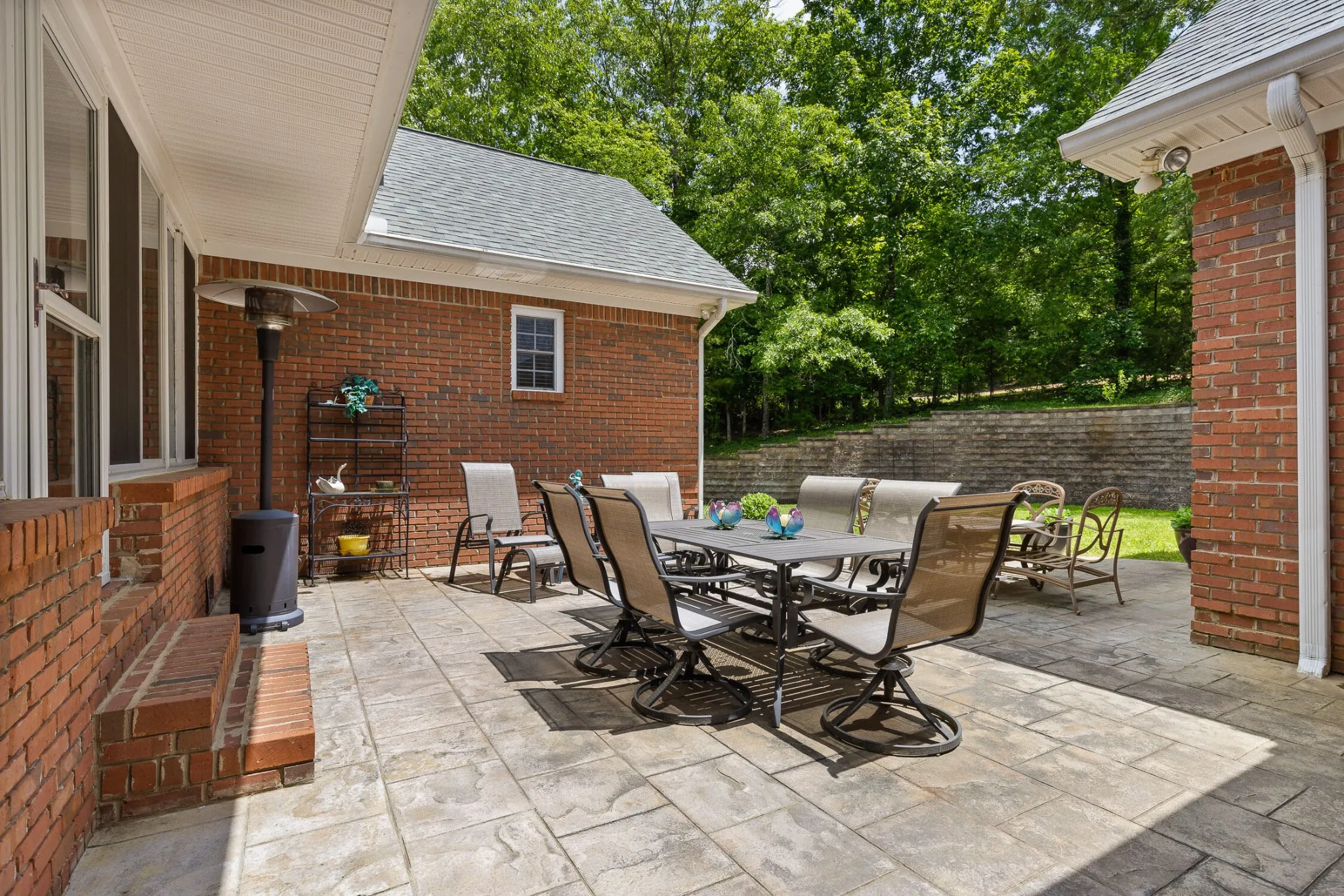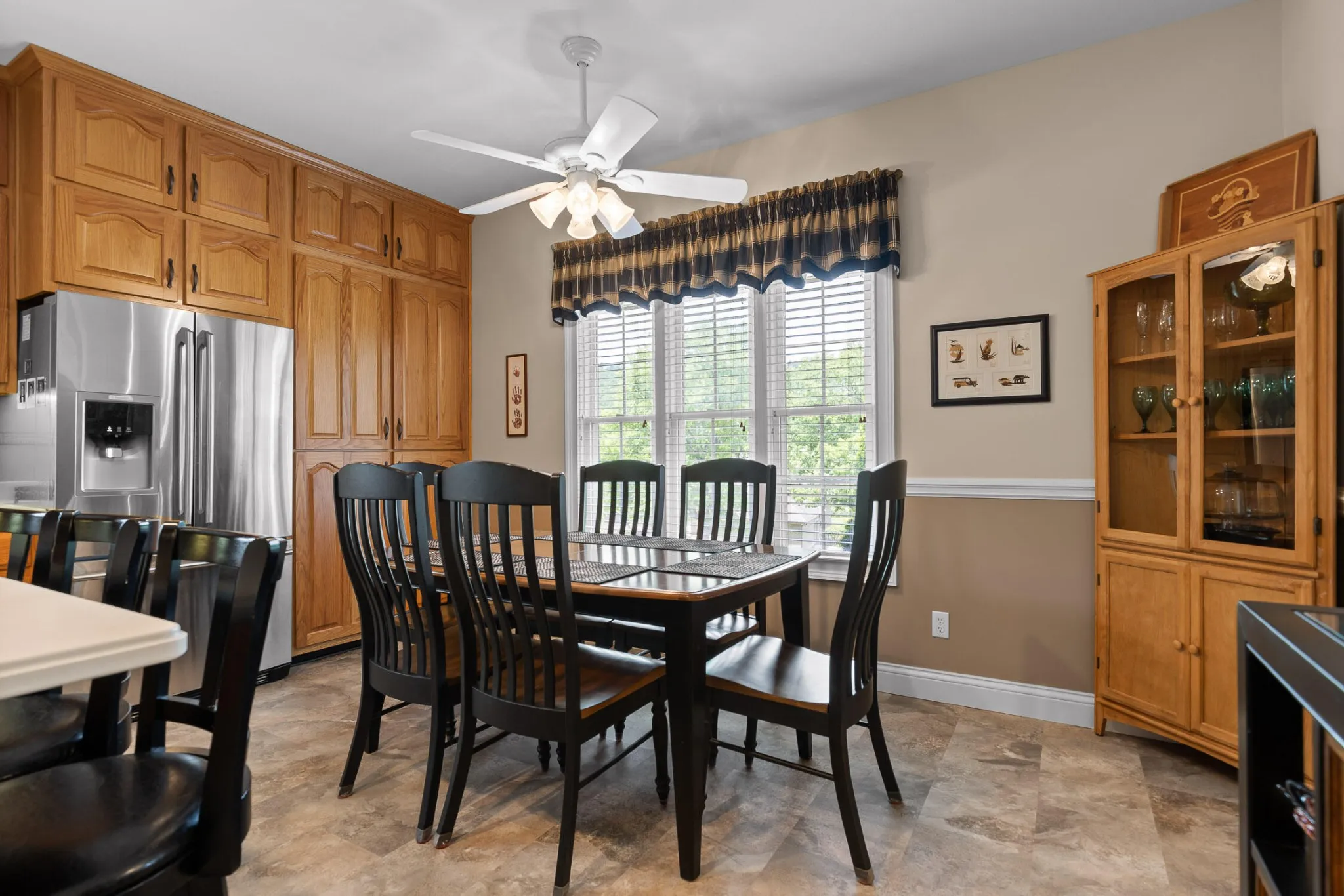 The great room is centered around a beautiful fireplace, perfect for wood-burning or gas logs. Just off the great room is a bright all-seasons sunroom with custom sliding windows, an ideal space to relax, entertain, or enjoy year-round natural light.