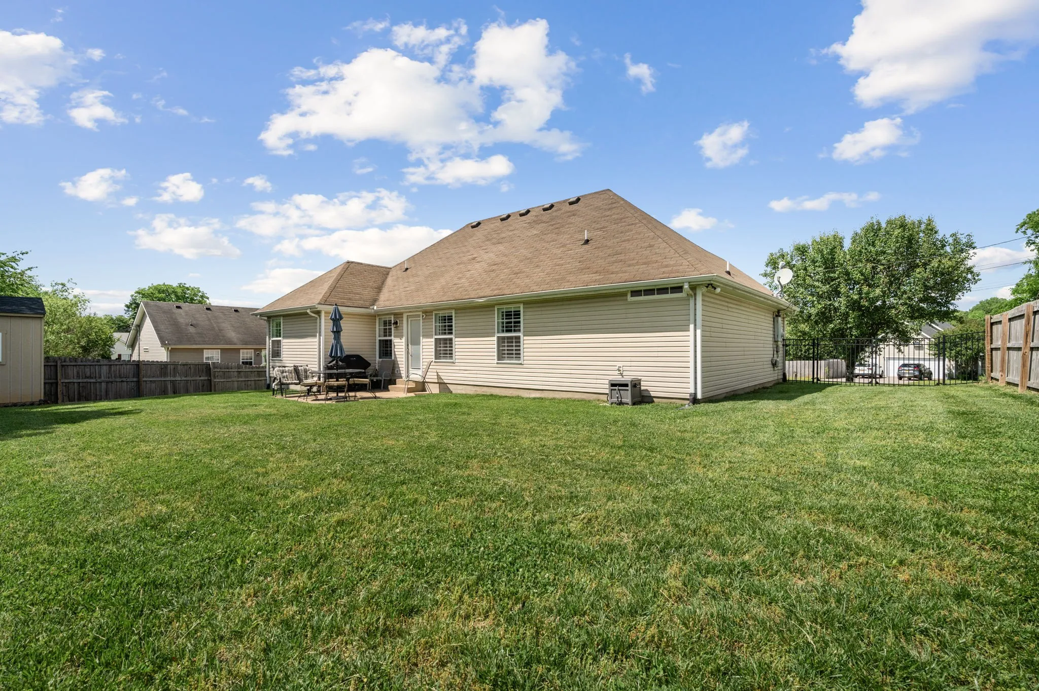 Welcome to this beautifully maintained 3-bedroom, 2-bath home nestled in a quite cul-de-sac in Murfreesboro. A desirable split floorplan, the owners suite is separated from the additional two bedrooms that allows privacy and comfort. The living area flows seamlessly into the kitchen and dinning areas. The backyard is perfect for entertaining or enjoying an evening on the patio. Beautiful plantation shutters throughout. Conveniently located near the best shopping, dining and entertainment Murfreesboro has to offer. It’s the perfect blend of suburban living with city conveniences.