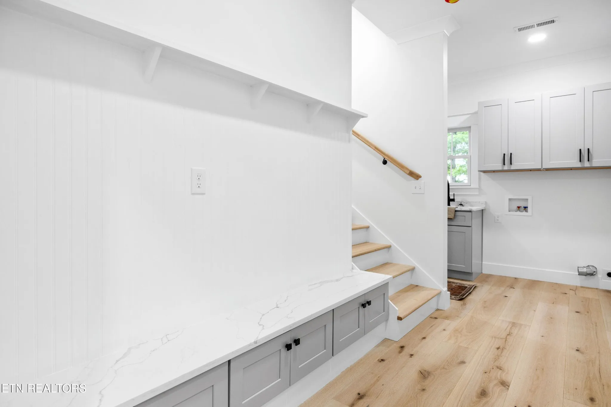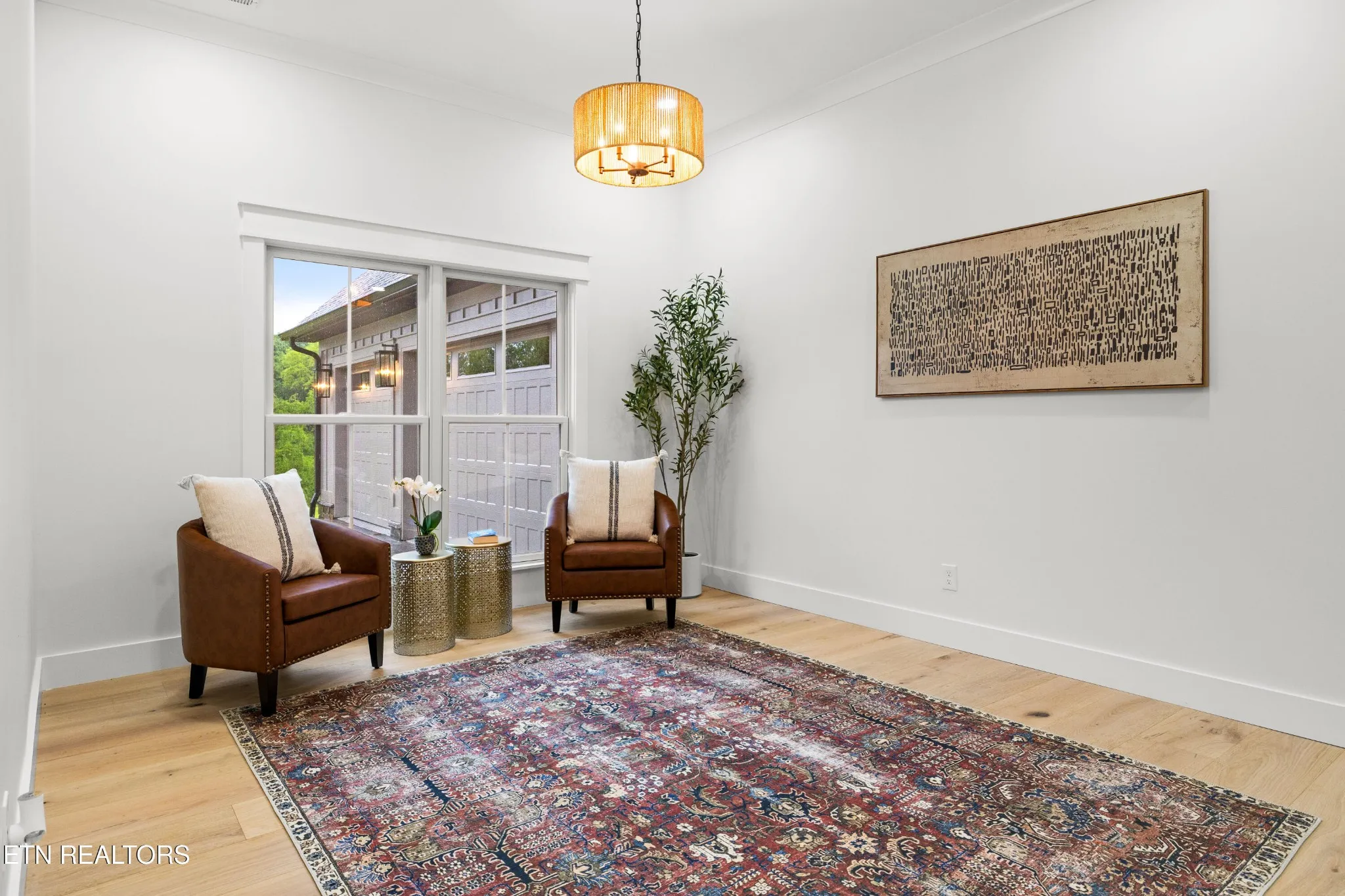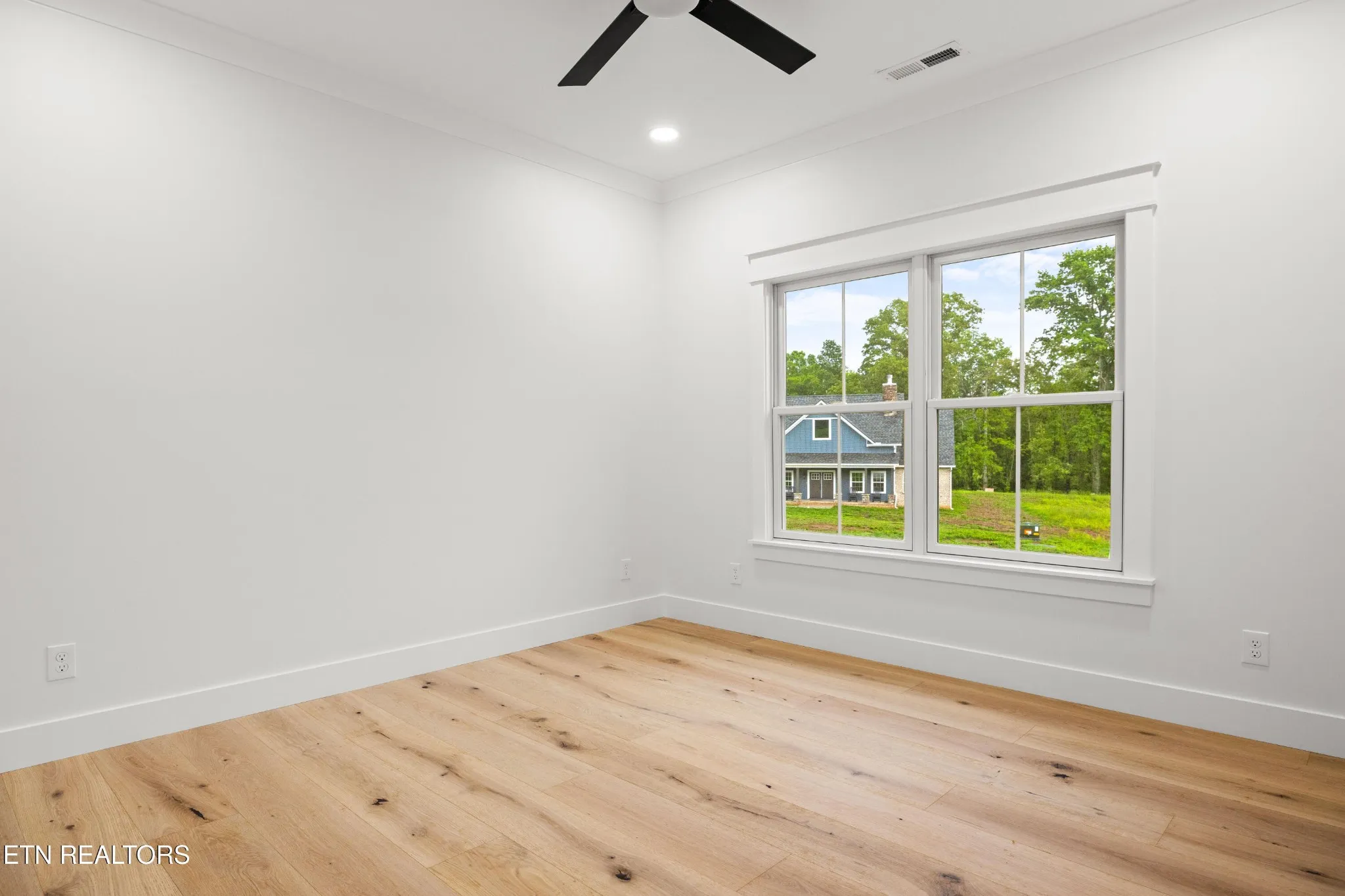 Upstairs, a finished room with engineered hardwood, over the three-car garage, provides additional space for a home office, guest room, or hobby area.