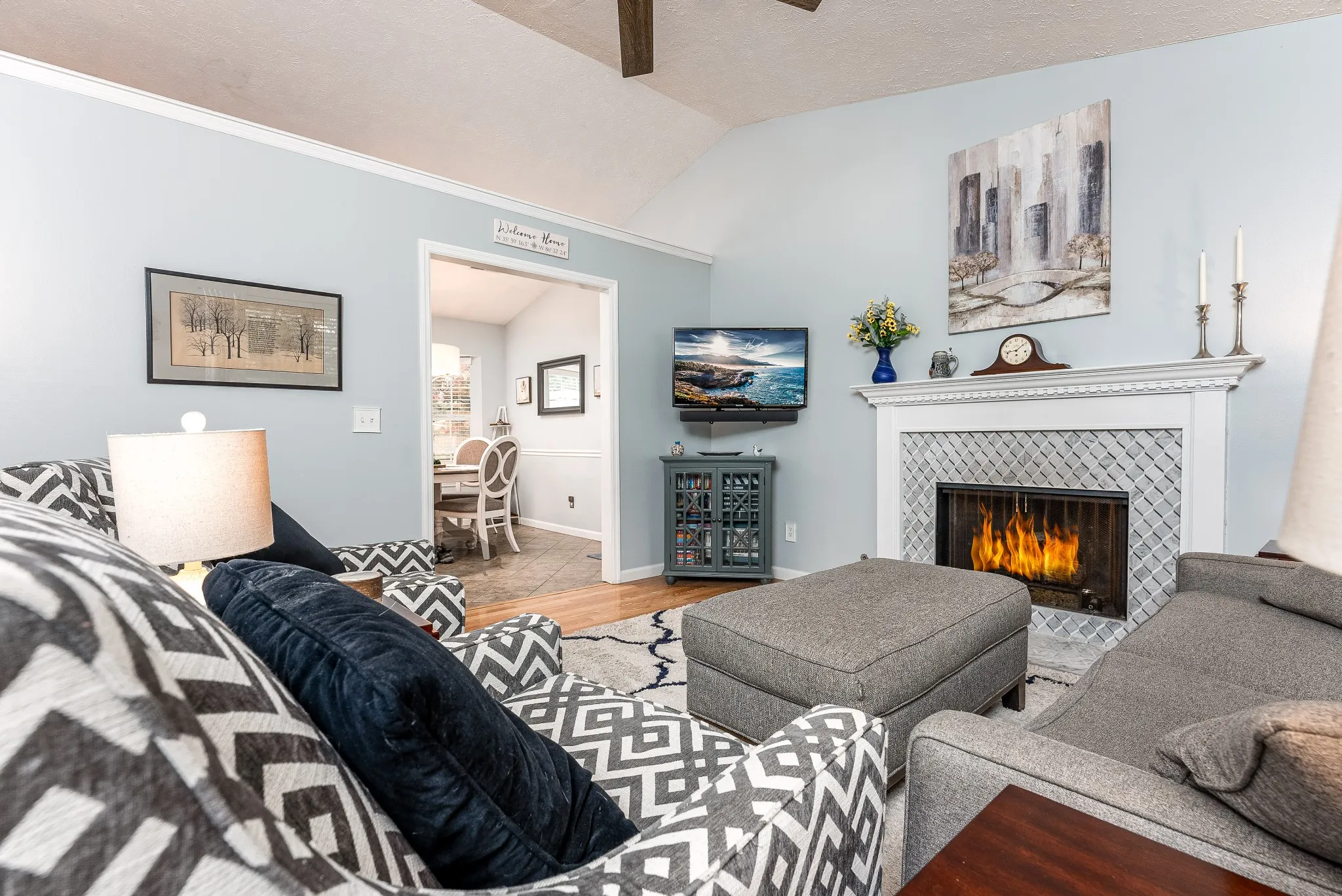 Charming and well maintained 3BR/2BA one-level home with an attached 2 car garage. Upon entering, you are greeted by a beautiful Magnolia Tree, vibrant perennial plants, and a cozy front porch. Recent updates include a newer HVAC (2022), a modernized kitchen featuring stainless steel appliances, quartz countertops, stylish backsplash, and under-cabinet lighting. Relax by the cozy gas fireplace in the vaulted ceiling living room. Step outside to a fenced-in backyard, perfect for outdoor relaxation. No HOA. Just minutes to Smyrna shopping, dining, and I-24!