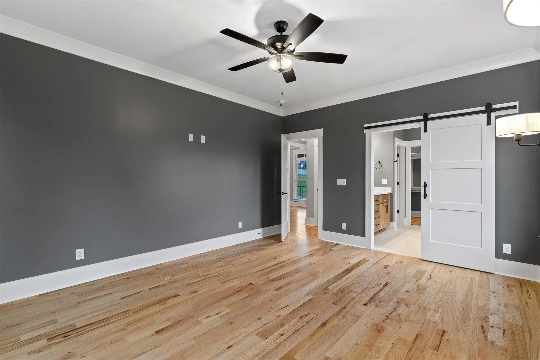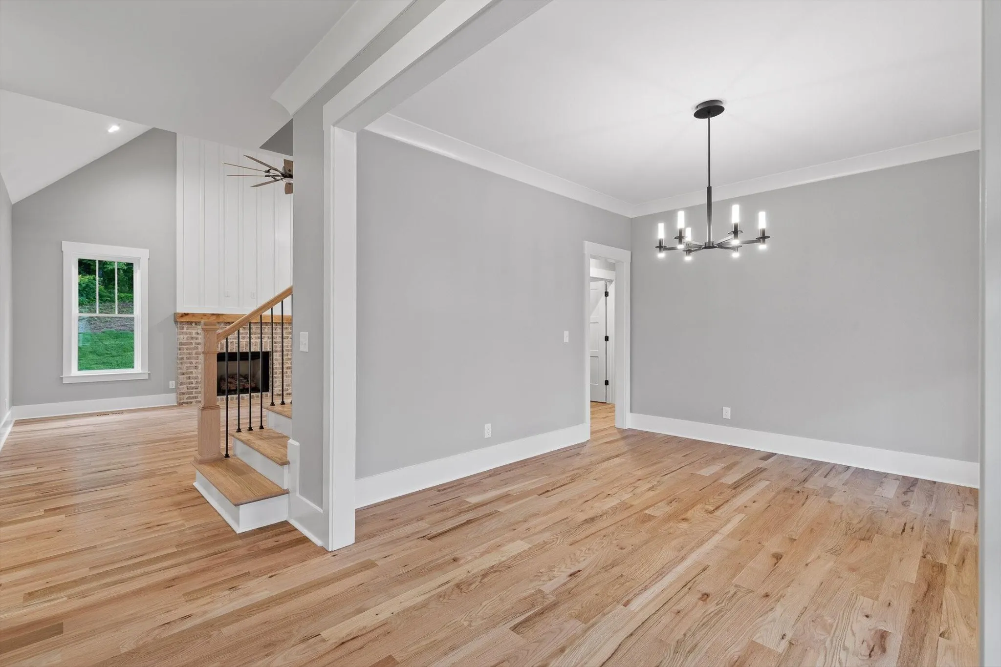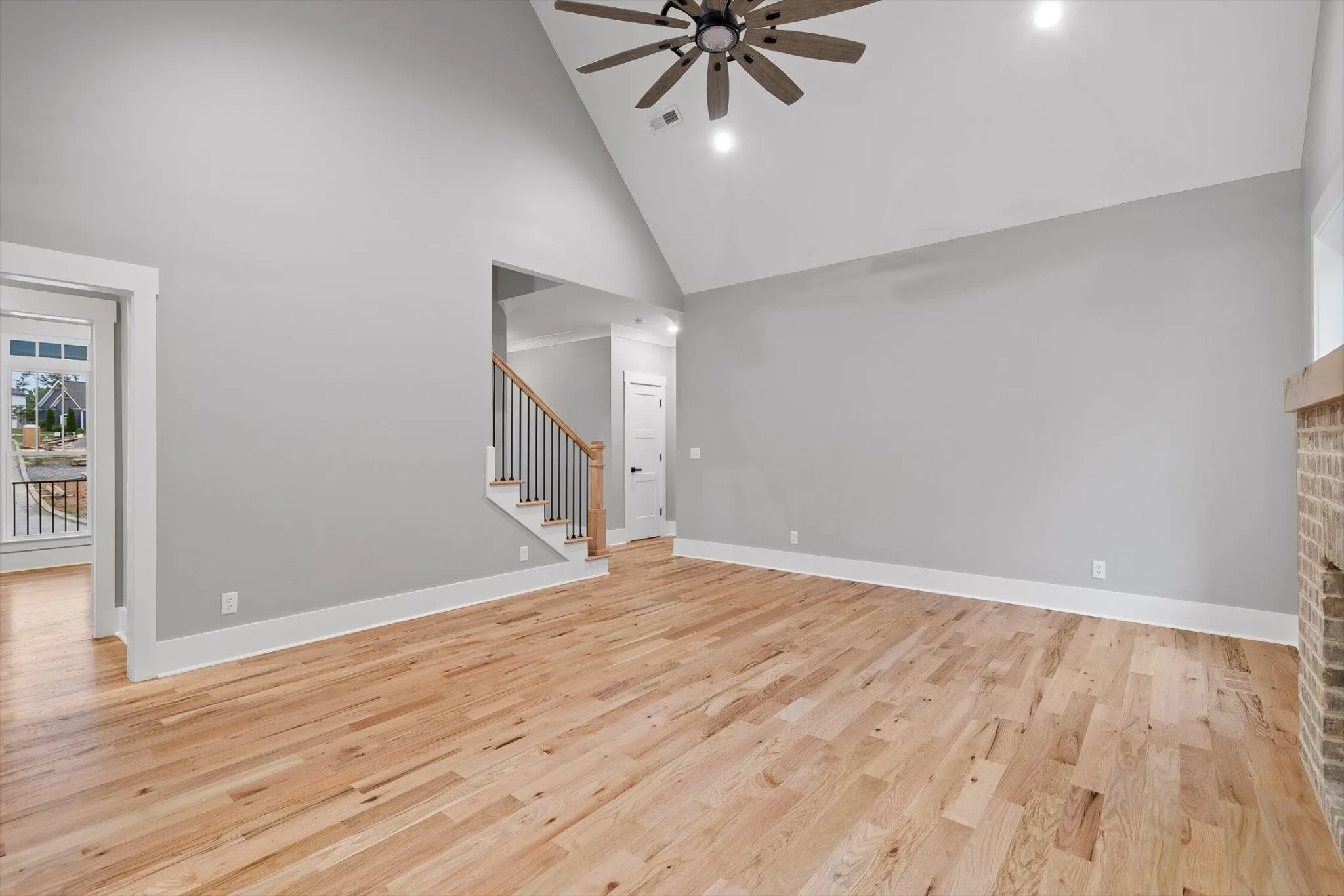 Step through the stately mahogany front door with beveled glass into a welcoming interior featuring real 4-inch red oak hardwood flooring throughout the main level. The spacious living room showcases vaulted ceilings, a custom handcrafted maple mantle, and a large ceiling fan, creating a bright and open atmosphere with timeless character. The main-level primary suite features dual sinks in the vanity, a soaking tub, steam shower, and a walk-in closet with built-in storage.\r\n