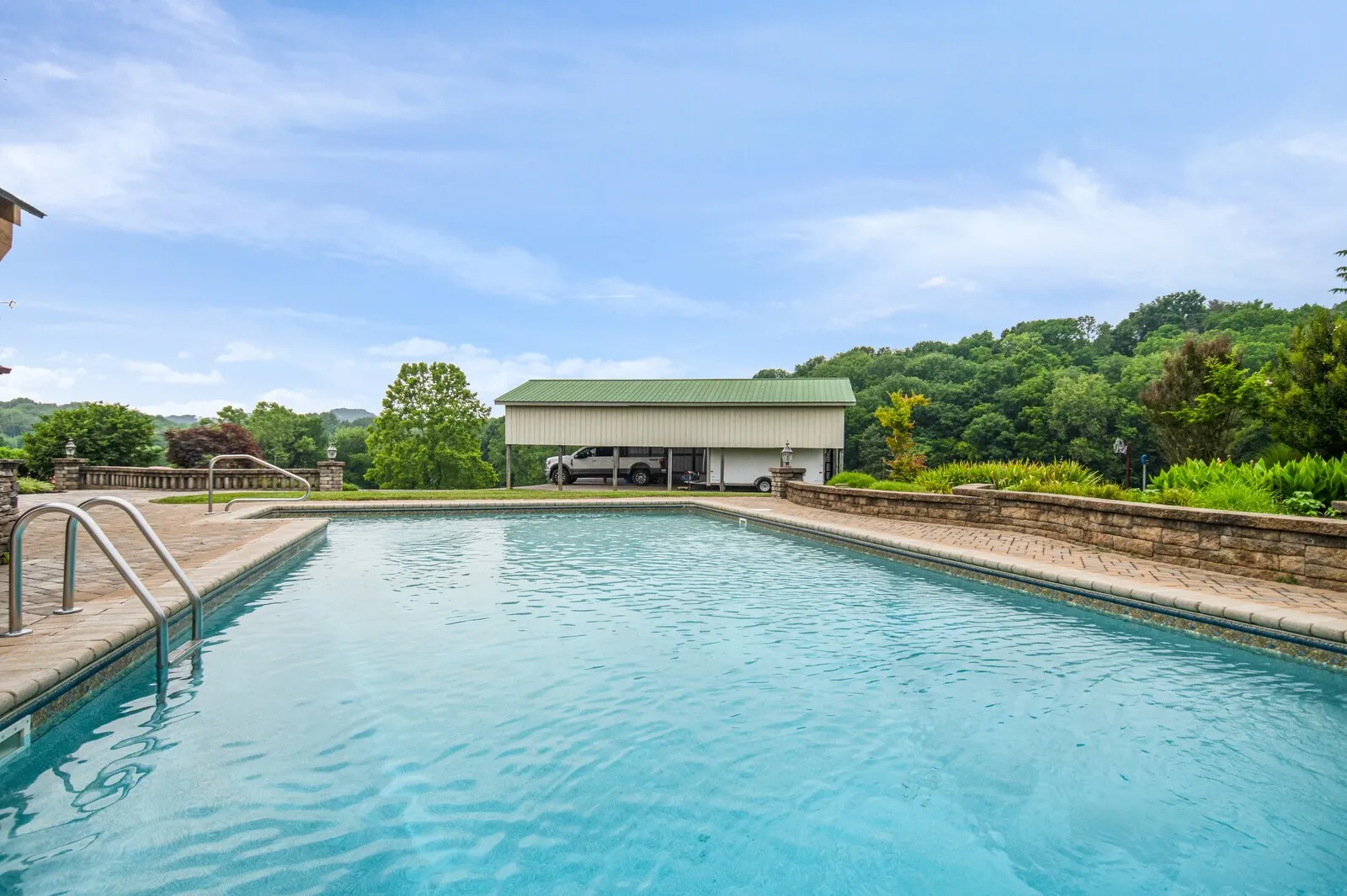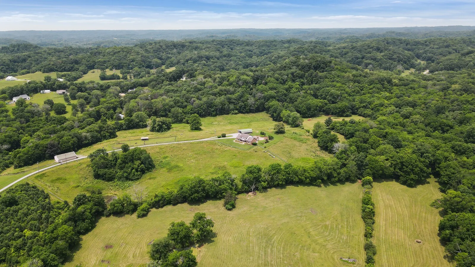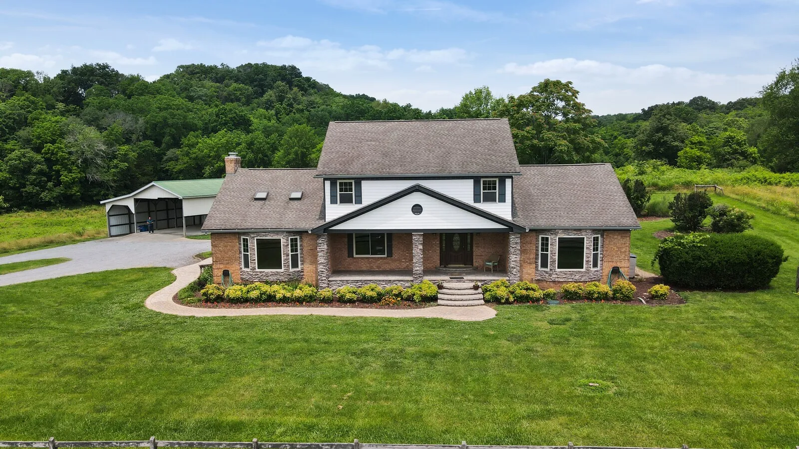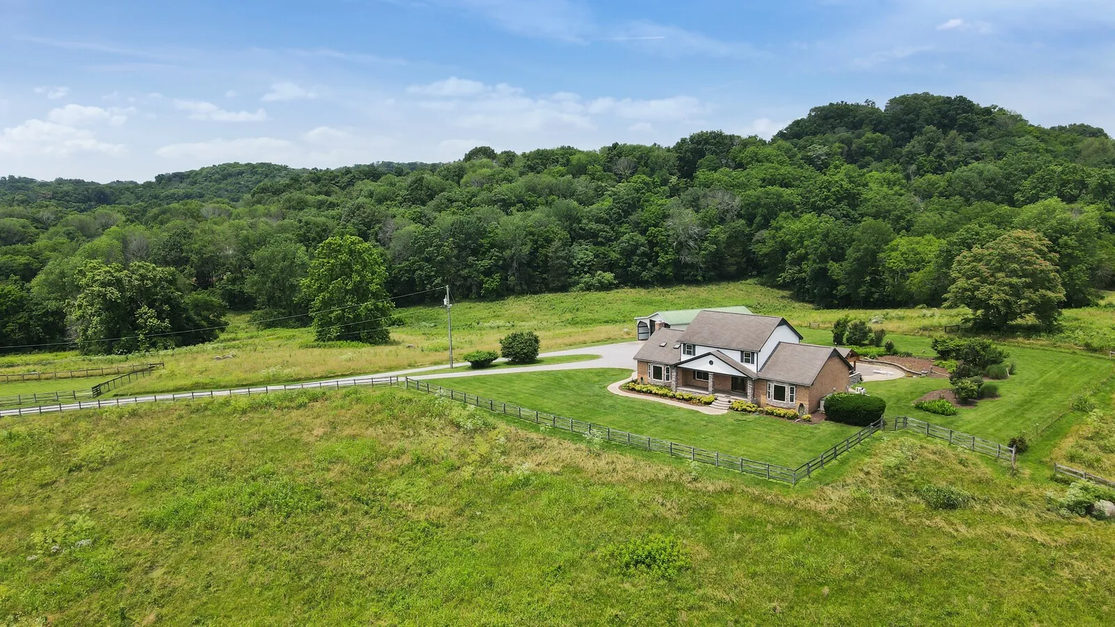 Find your private oasis on 10.33 acres in Goodlettsville, TN. The charming home invites you into the comfortable living room with soaring ceilings, skylights, and an enormous brick fireplace. The chef’s kitchen provides a functional, and beautiful, space to cook and entertain with stainless steel appliances. The master suite has enormous space to make the room your sanctuary, including high wood-paneled ceilings and a relaxing en-suite bathroom. Upstairs you will find cozy bedrooms with comfortable bathrooms that are perfect for guests. Fall in love with the dream backyard! A brick paved patio surrounds the pool, and the poolside pavilion features an outdoor kitchen for grilling! The serenity of the surrounding countryside is ideal for an escape from the city. Home, Sweet, Home! Additional 20 acres available.