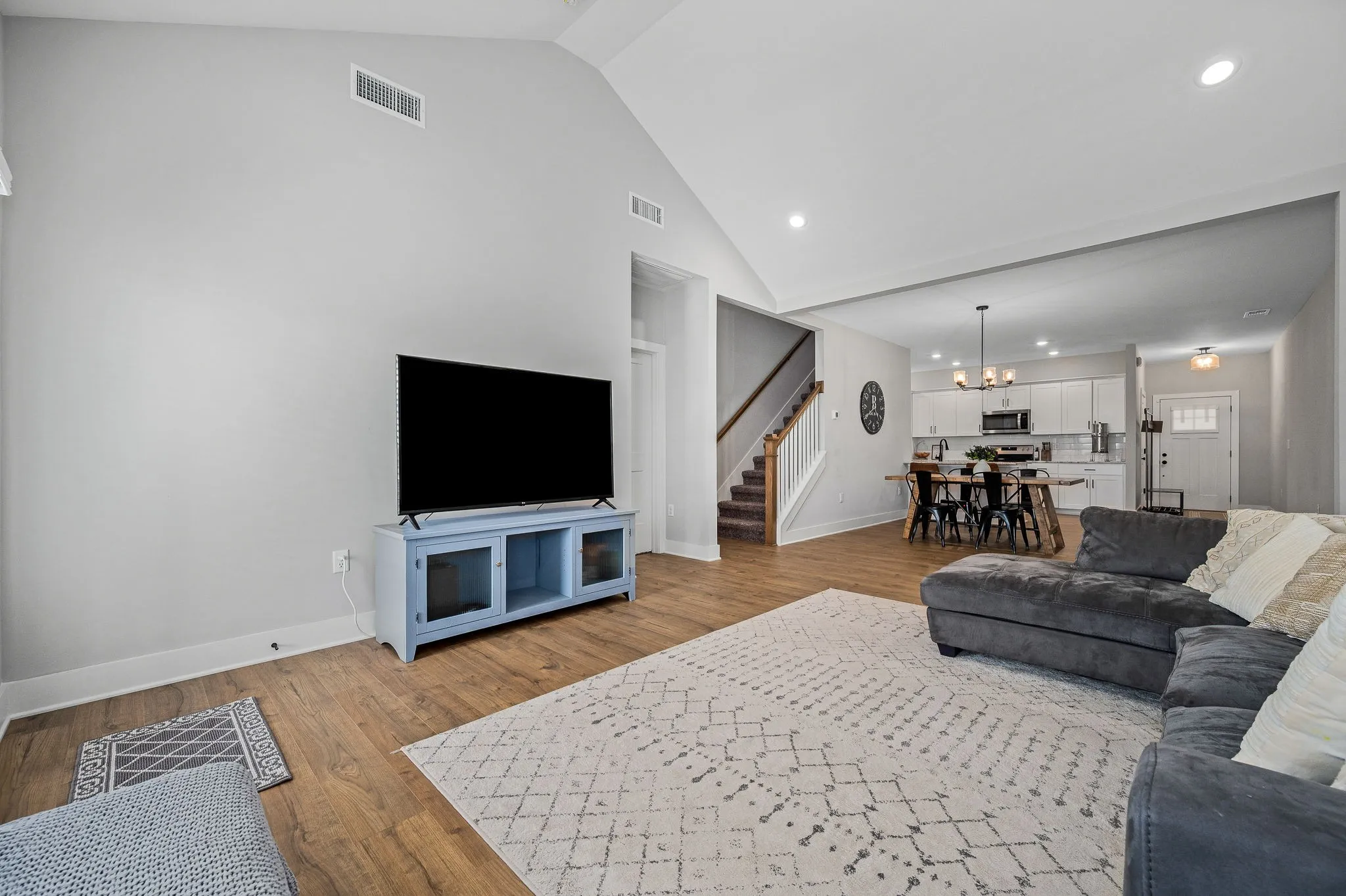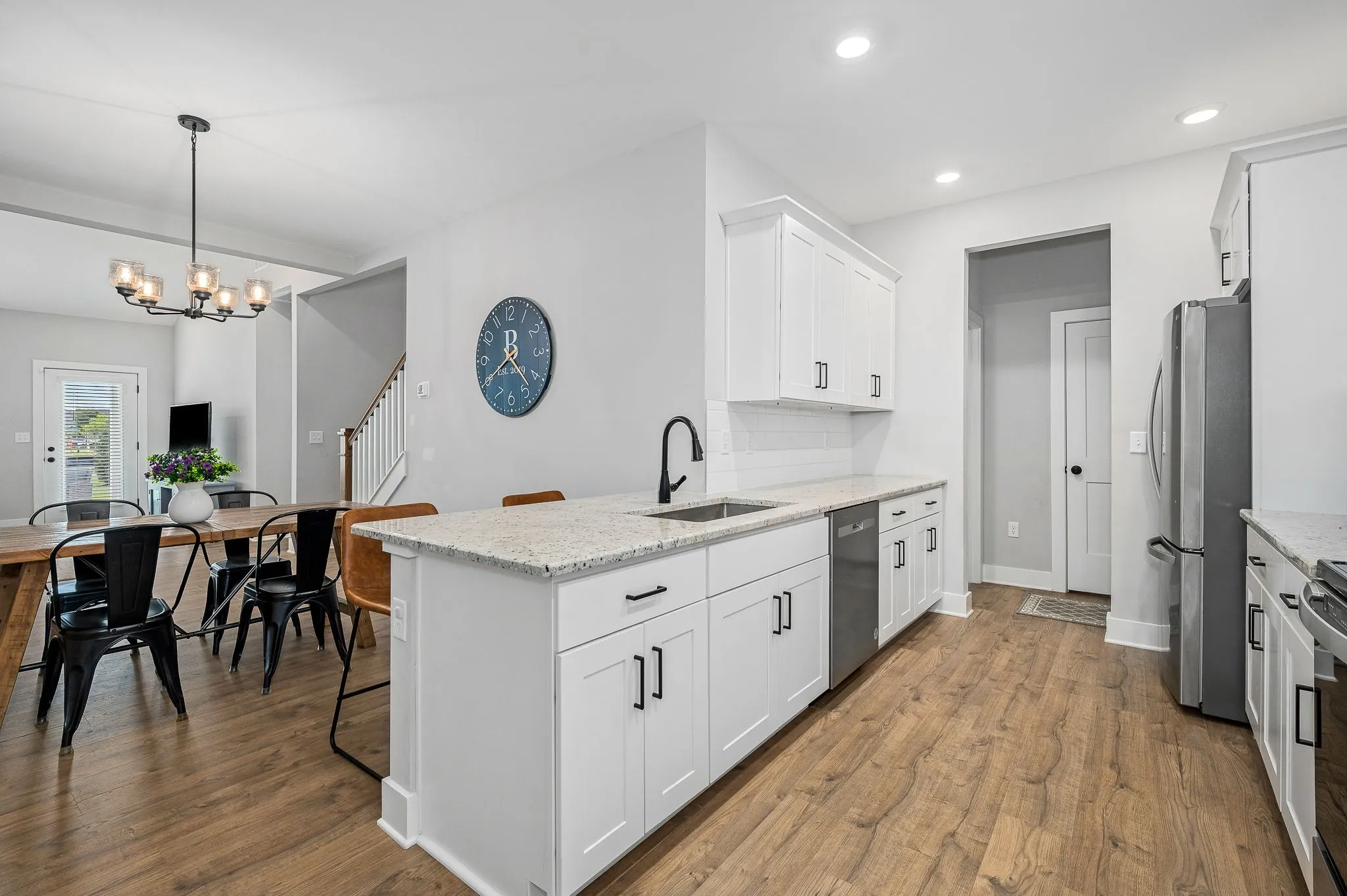 Luxury townhome that is tucked away on a quiet street in established community. Owner’s suite on main floor, three bedrooms upstairs w/ large closets and loft .Features Upgraded kitchen white cabinets~ tile backsplash leathered granite~open floor plan~vaulted ceiling in living room~craftsman trim~SS appliances~granite counters throughout~large tiled shower~LVP in living areas~matte black hardware~tile baths/laundry~covered back porch. Community pool/clubhouse.