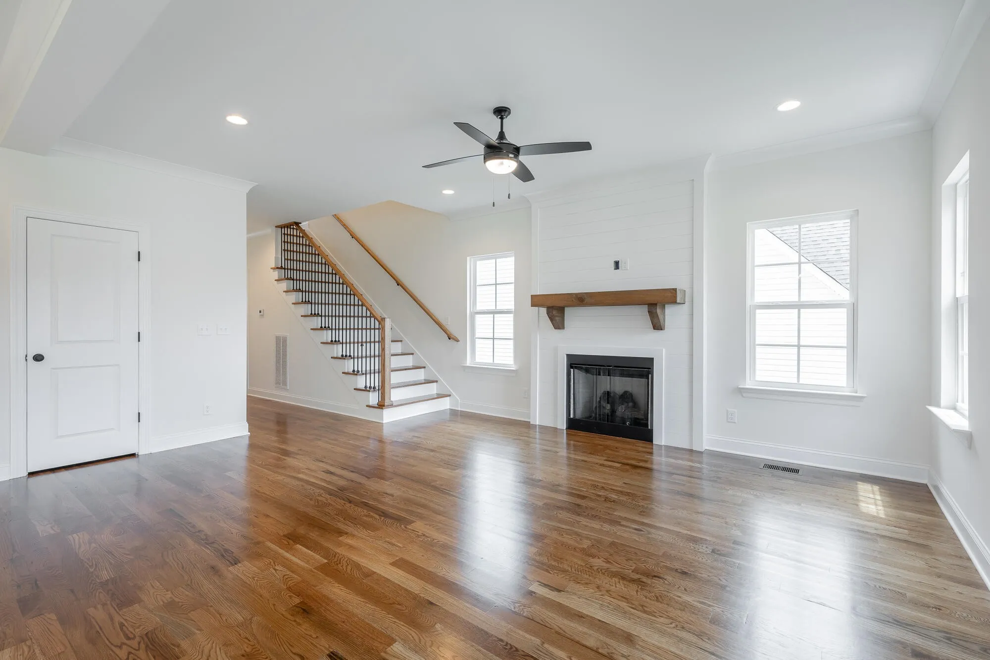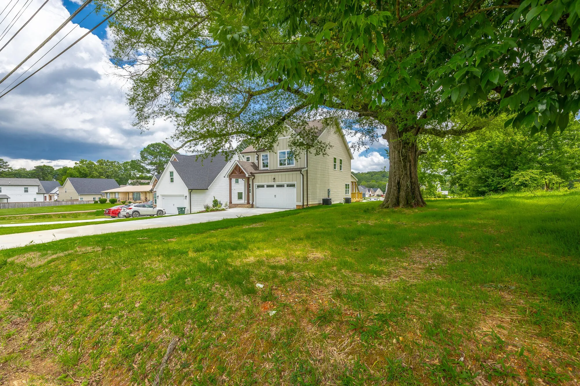 Construction is completed on this Brand-New 3 Bedroom, 2.5 Bath home on Swan Road built by Mellencamp Construction. Known for their quality construction and popular finishes, Mellencamp Construction builds great homes throughout Chattanooga and Hamilton County. This home has an open-concept floor plan with abundant natural light on the main level with solid oak hardwoods throughout the main living areas and primary suite with energy efficient windows; tiled baths; and two carpeted bedrooms. The living room centers around a ship lap fireplace with a wooden mantle, adding an inviting space for relaxing. Outside, entertain in style on a covered screened porch and attached sun-soaked grilling deck overlooking the expansive (.44 acre lot) side and back yard. These areas are truly some of the many highlights of this well-designed home. The spacious, gently sloping yard is perfect for relaxing or entertaining outdoors. Back inside the home, a well-appointed kitchen is complete with stone countertops, stainless steel Samsung appliances and a workspace island ideal for meal prep and casual dining. This kitchen also smartly offers a pantry for all your kitchen storage needs. The main level plan also offers a formal entry, powder room and egress to and from the 2-car garage. As you ascend the stairs to the second story you will find a custom oak handrail and oak stairs. Once atop the stairs you are greeted with beautiful oak flooring in the versatile oversized flex space that offers endless possibilities, whether used as a home office, sitting area, or playroom, this space is inviting and well designed. The spacious primary suite has been upgraded with oak flooring and offers picturesque views over the back yard. There is an ensuite designer bathroom with dual sinks, stone countertops, a large tiled shower with heavy glass door, and walk-in closet for ample storage. Two additional well-sized bedrooms with oversized closets share a full guest bathroom in the hall.