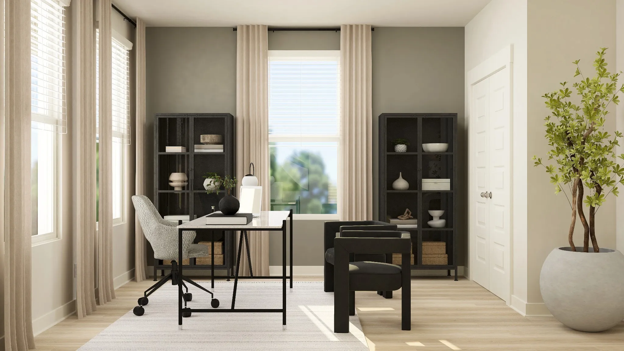 Discover the new Edinburgh plan in the new Arbors at Compton neighborhood today! The Edinburgh features brick and hardiboard exterior, a first-floor office, a covered rear porch, an open concept kitchen with lots of cabinets and countertop space and a huge island with 42″ shaker style cabinetry, quartz tops, tile backsplash, double ovens, gas cooking with vented hood, and stainless steel kitchen appliances. Luxurious primary suite includes oversized walk-in ceramic tile shower with built-in bench seat, tile floor, executive height cabinets, and quartz top. Beautiful LVP flooring throughout the main living areas, durable LVT flooring in secondary baths and laundry. Luxurious features throughout! Tankless water heater, Ring doorbell, Schlage keyless entry, Honeywell WIFI thermostat, gas fireplace, drop zone to keep everything neat and organized, 2″ faux wood blinds on operable windows, and so much more!