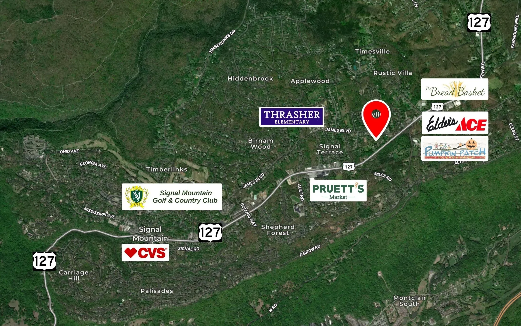 - Directions: From Downtown Chattanooga: Take Hwy 27N. Take the Signal Mtn Blvd/ Hwy 127N exit. Continue on Hwy 127N up Signal Mountain. From the traffic light in Signal Mtn continue for approximately 2.3 miles. Property will be on the left.