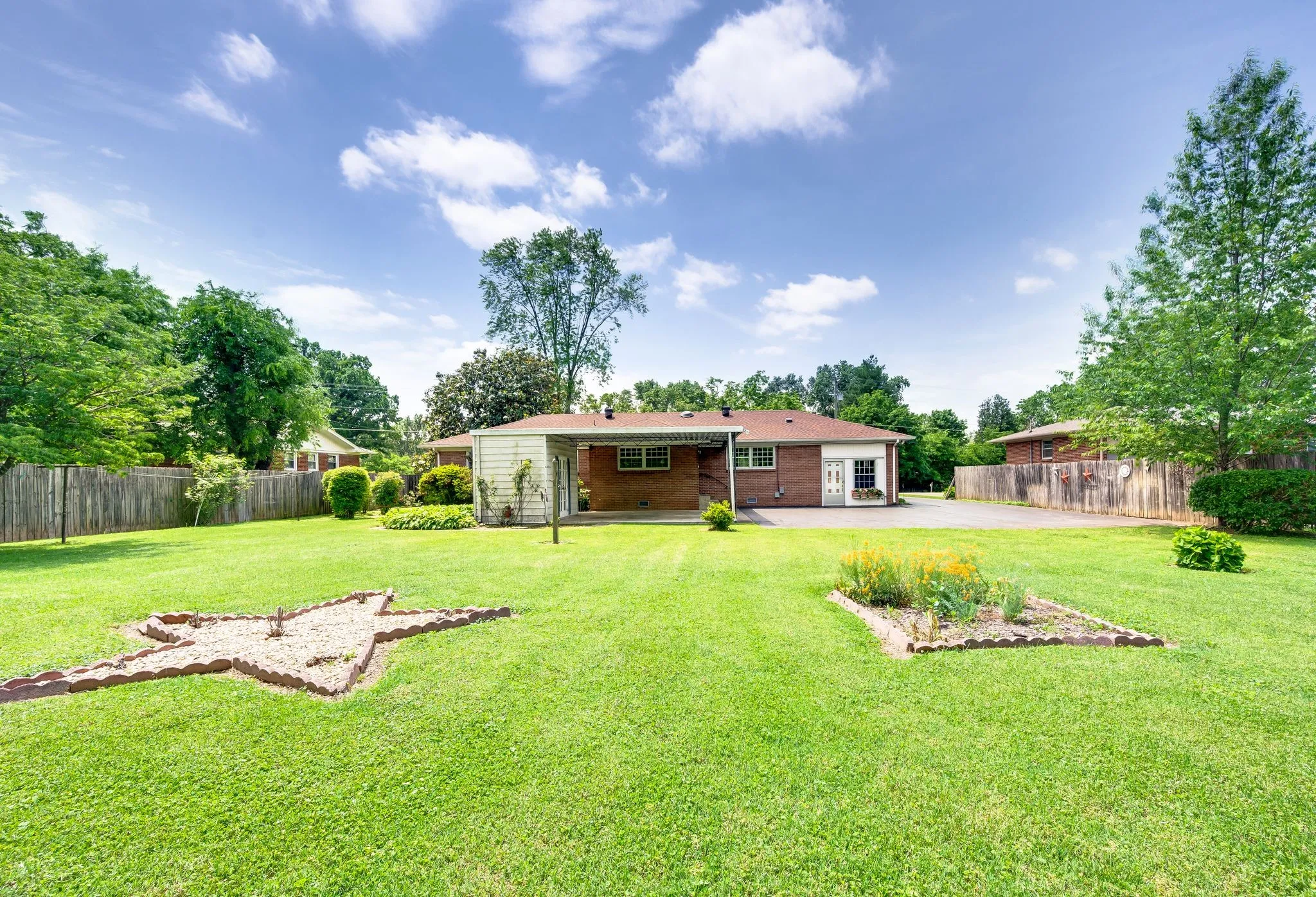 This one level ranch brick home with a rocking chair front porch is move-in ready! Come check out this amazing home and see the beautiful updated floor finishing. This home has beautiful established floral landscapes that take years to accomplish. Truly stunning! 3 bedroom brick ranch home on a beautiful level lot. New roof/sellers say this roof warranty is transferrable. Spacious walk-in closets . 2 car carport attached / storage room custom build adjacent to the home. The amazing home is conveniently located near a variety of shopping, entertainment, restaurants, recreational facilities, and the interstate. It’s also close to walking trails in the Murfreesboro wetlands, perfect for nature walks and bird watching.