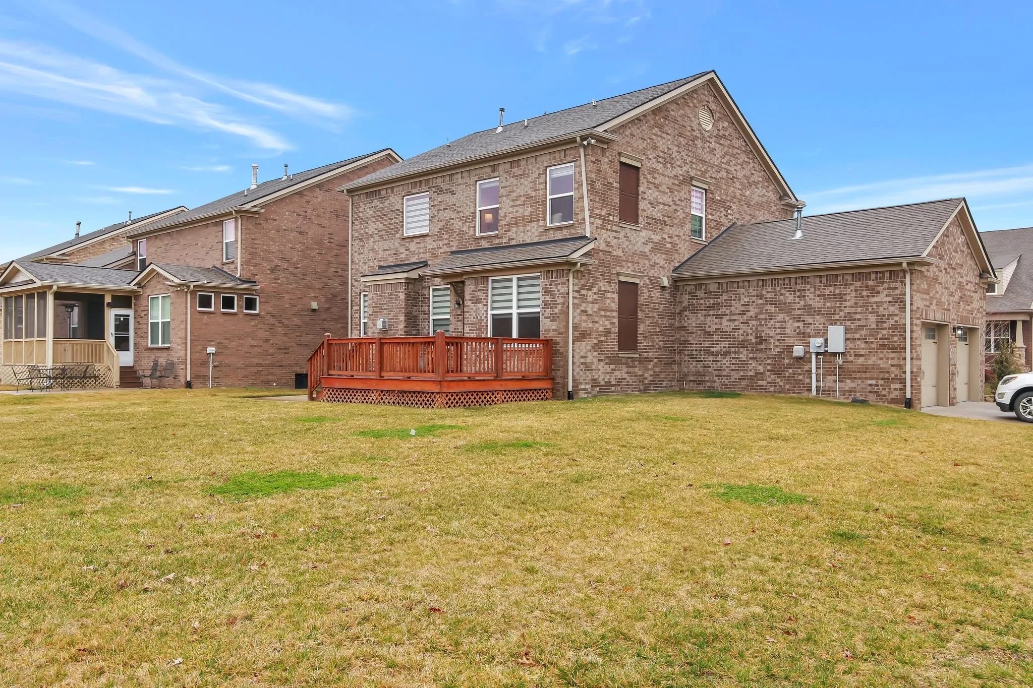 Beautiful Brick home, 3bed 2 1/2bath home is available for rent in highly desirable Ladd Park Subdivision. Open floorplan is light & bright with tons of windows. Living Room with cozy fire place. Gorgeous kitchen features with cabinets, granite counters/island, tiled backsplash, gas cooktop, pantry, & stainless steel appliances, Formal dining room, Office room for remote working, Master Suite with tile & tub, shower, 3 Bedrooms are upstairs. Rec room upstairs, Covered Front porch, Storage rooms, Relax on your back deck overlooking your back yard that backs to common space. Smart Thermostat, Smart bulbs, Smart Ring Cameras, Short walk to pool & playground. Minutes to I-65, I-840, shopping, restaurants & Berry Farms Town Center. Zoned to Highly rated Williamson County Schools. Refrigerator & W/D stay.
