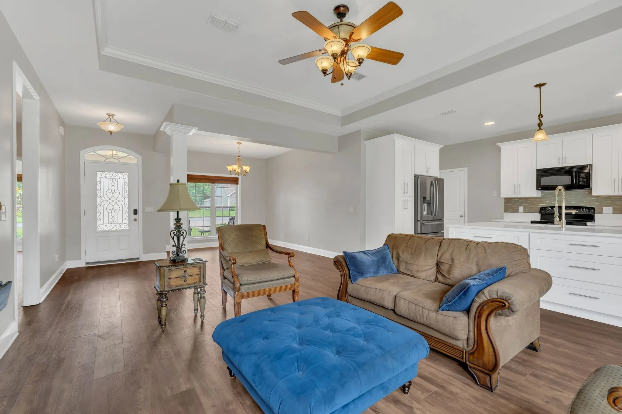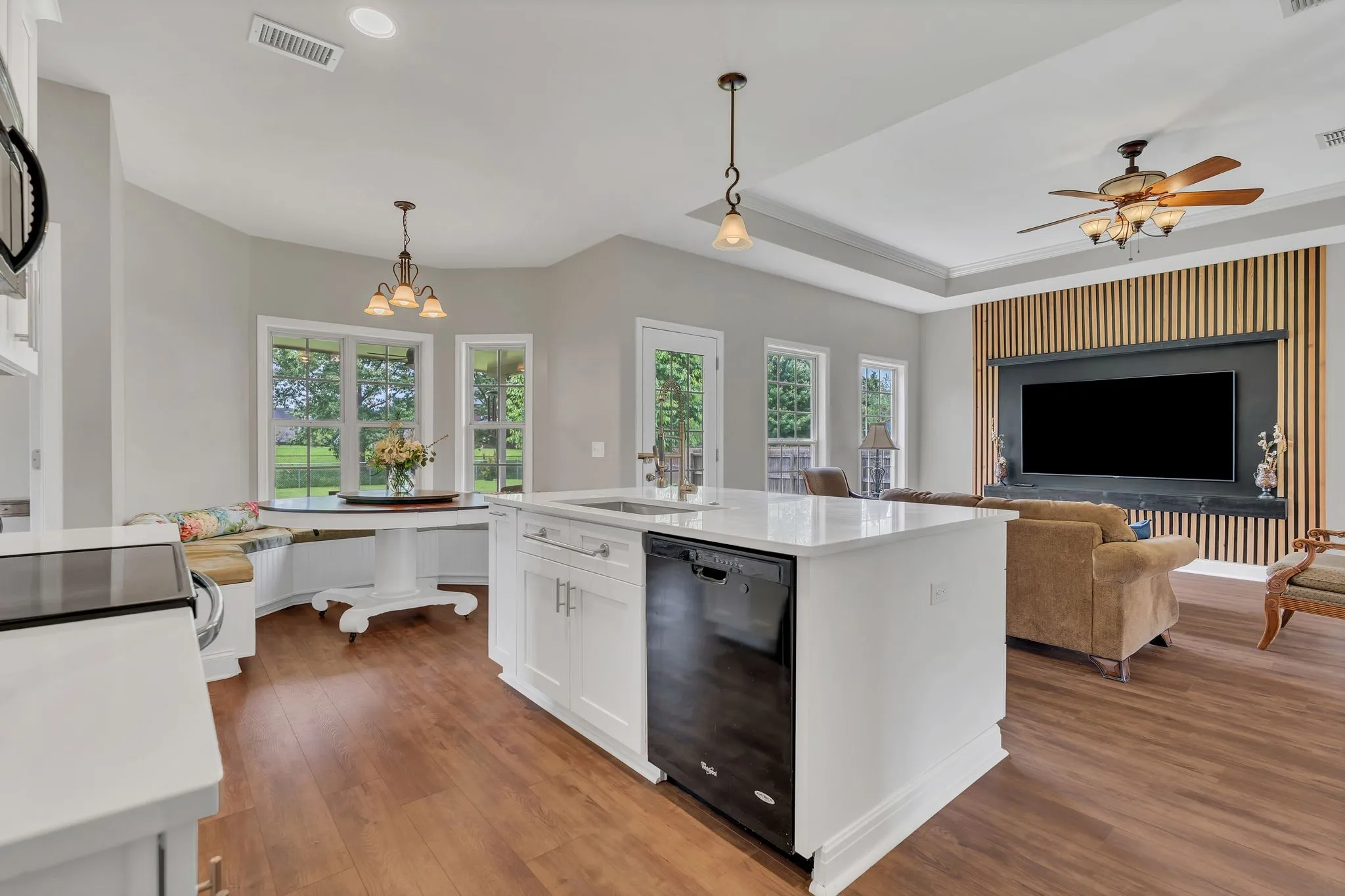 Spacious one-level home with tornado shelter! Located in the sought-after Colonial Estates neighborhood, this move-in ready 3-bedroom home offers all bedrooms on the main floor with a zoned layout plus a large bonus room upstairs, creating ideal separation for work, rest, and guests. The home’s renovated kitchen includes a custom built nook with matching table that remains, kitchen island, newer cabinetry, quartz countertops, and all appliances remain—including the washer and dryer. You’ll love the high ceilings, thoughtful open floor plan and tasteful improvements! Other stand-out interior features include new flooring throughout the main level, no carpets anywhere but the bonus room, new accent wall in the living room, water softener, large windows in every room and more! The oversized garage includes space for toys and a workshop, an epoxy-coated floor and a built-in tornado shelter for ultimate peace of mind. Outdoors, enjoy your summer time in the large, level, fully fenced backyard, complete with a huge covered patio for shaded play or relaxing evenings. Neighborhood has an optional neighborhood pool—a great spot for cooling off in the summer! This home perfectly blends functionality with comfort! Don’t miss this opportunity in one of Murfreesboro’s most livable locations—schedule your showing today! Ask about 1% towards lower interest rate with preferred lender and 1-year home warranty with acceptable offer.