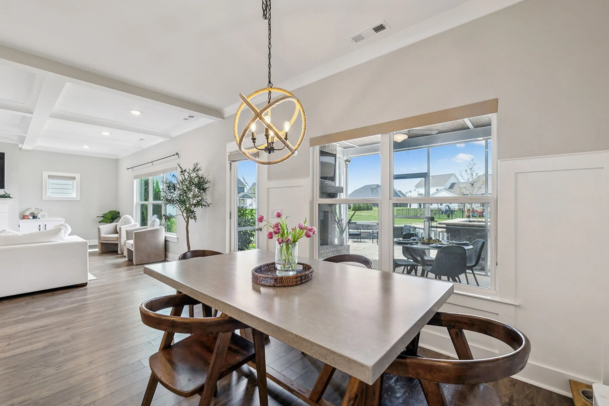 Better than new construction with upgrades throughout!! This is a beautiful,meticulously maintained stylish home! Master bedroom with coffered ceilings + 2nd bedroom/bath on main level. Chef kitchen, stainless steel farmhouse sink, granite countertops & range hood over gas cooktop. Hardwoods in main living area, staircase, hallway & two upstairs bedrooms. Screened in covered porch w/ fireplace, custom paver patio, rockwall fountain feature & built-in bar… just add your grill. This home features a large yard, irrigation system, fully sodded yard and landscape lighting, makes it the perfect retreat area. Extended length garage in 2 out of 3 bays to park your boat or extra long extended truck. Paran: Waverly floor plan. Ask your agent for Highlights & Upgrade information sheet.