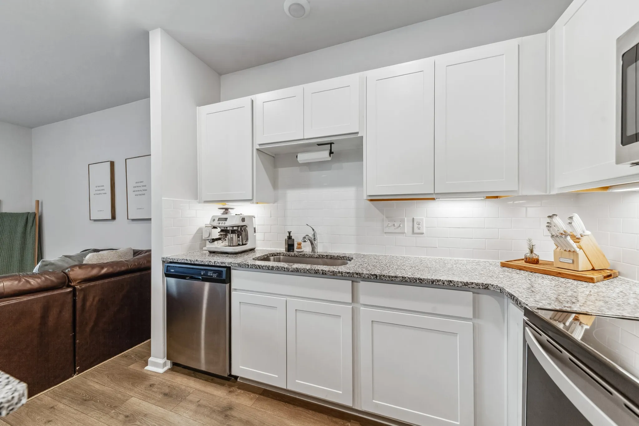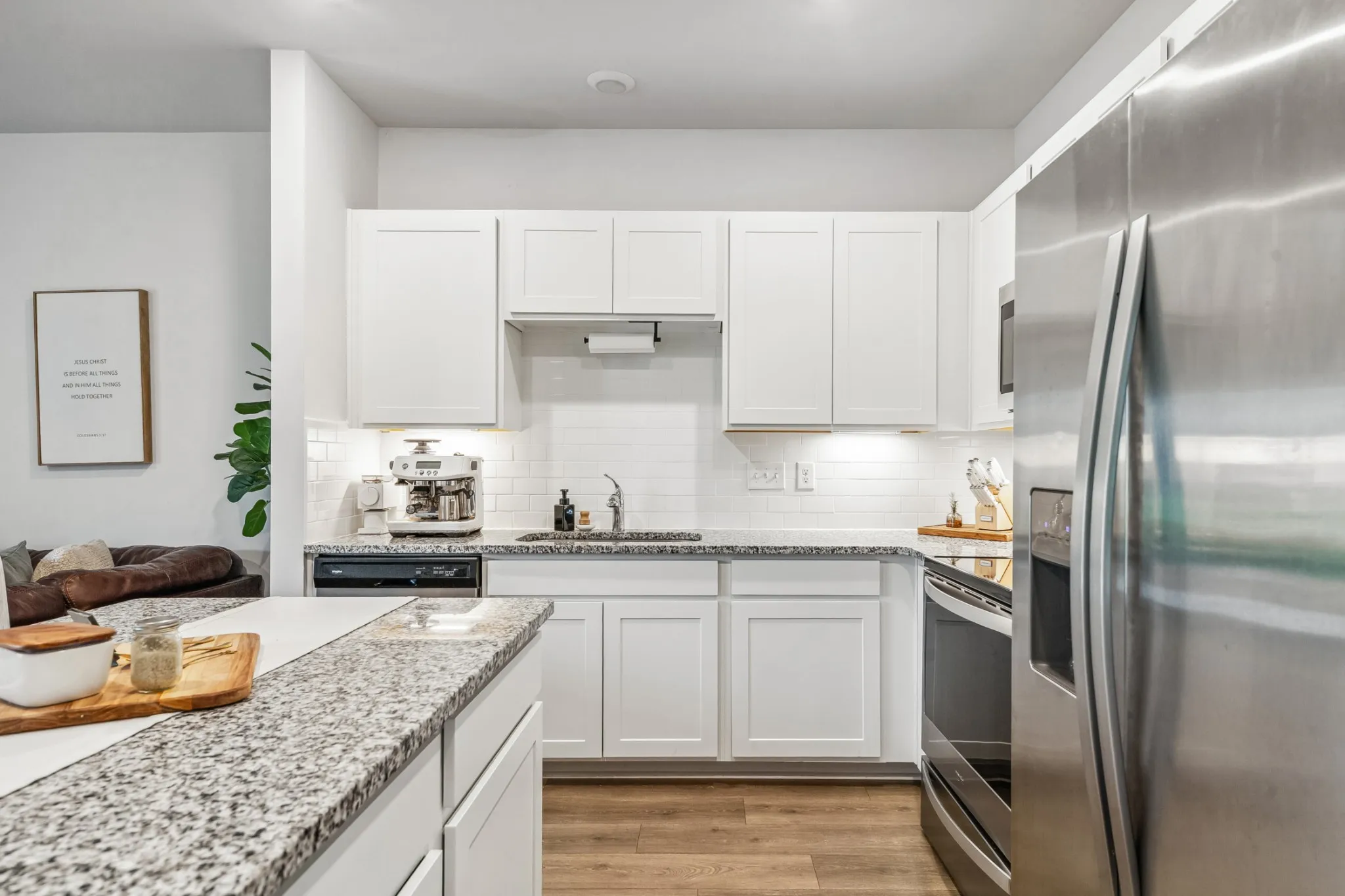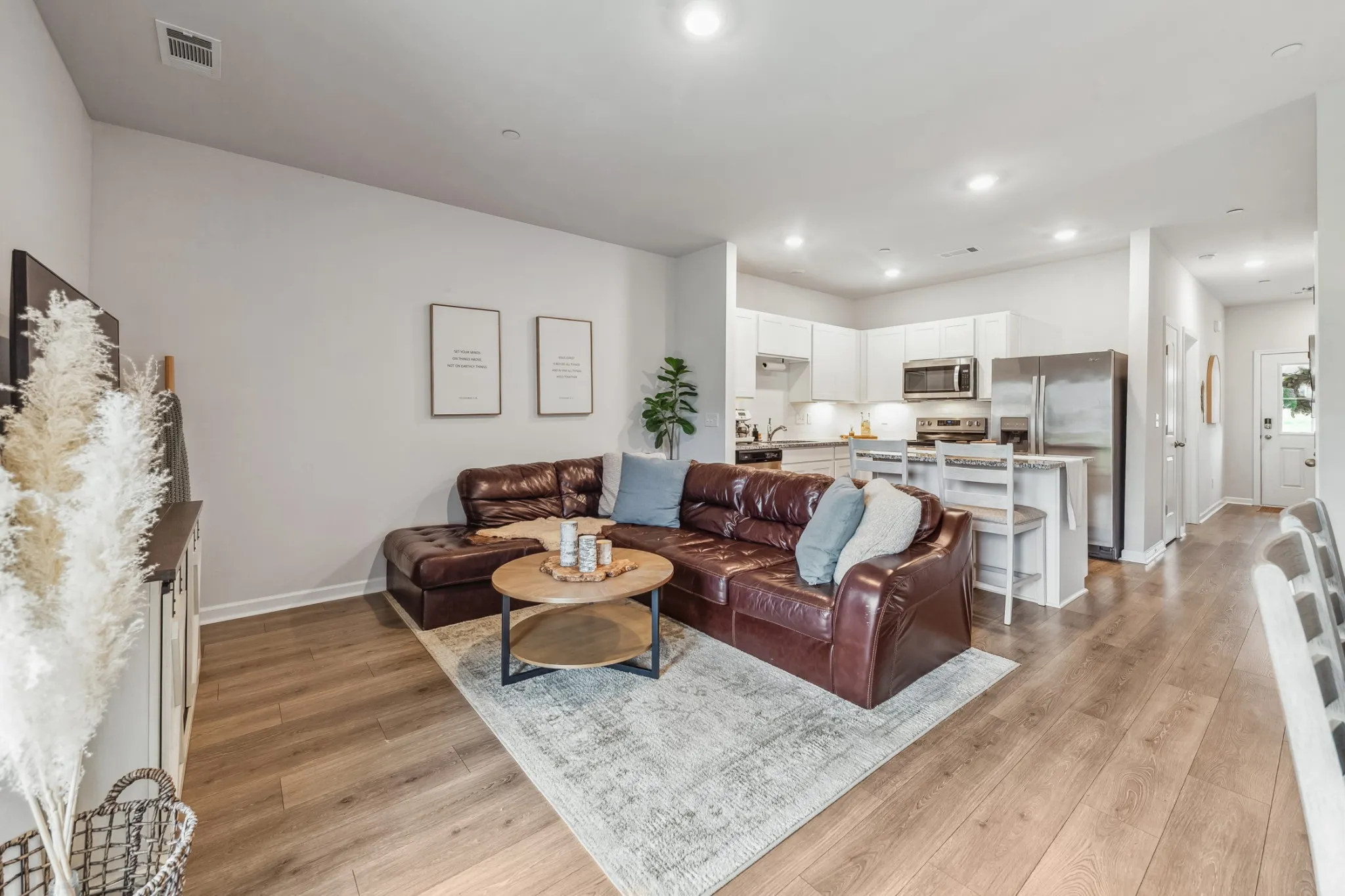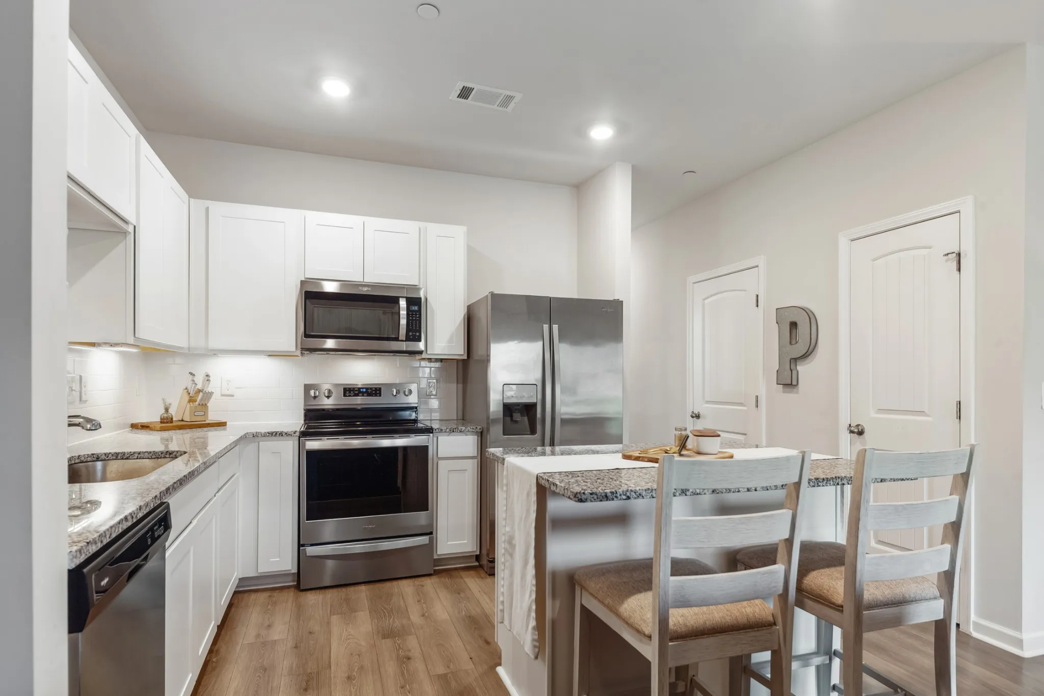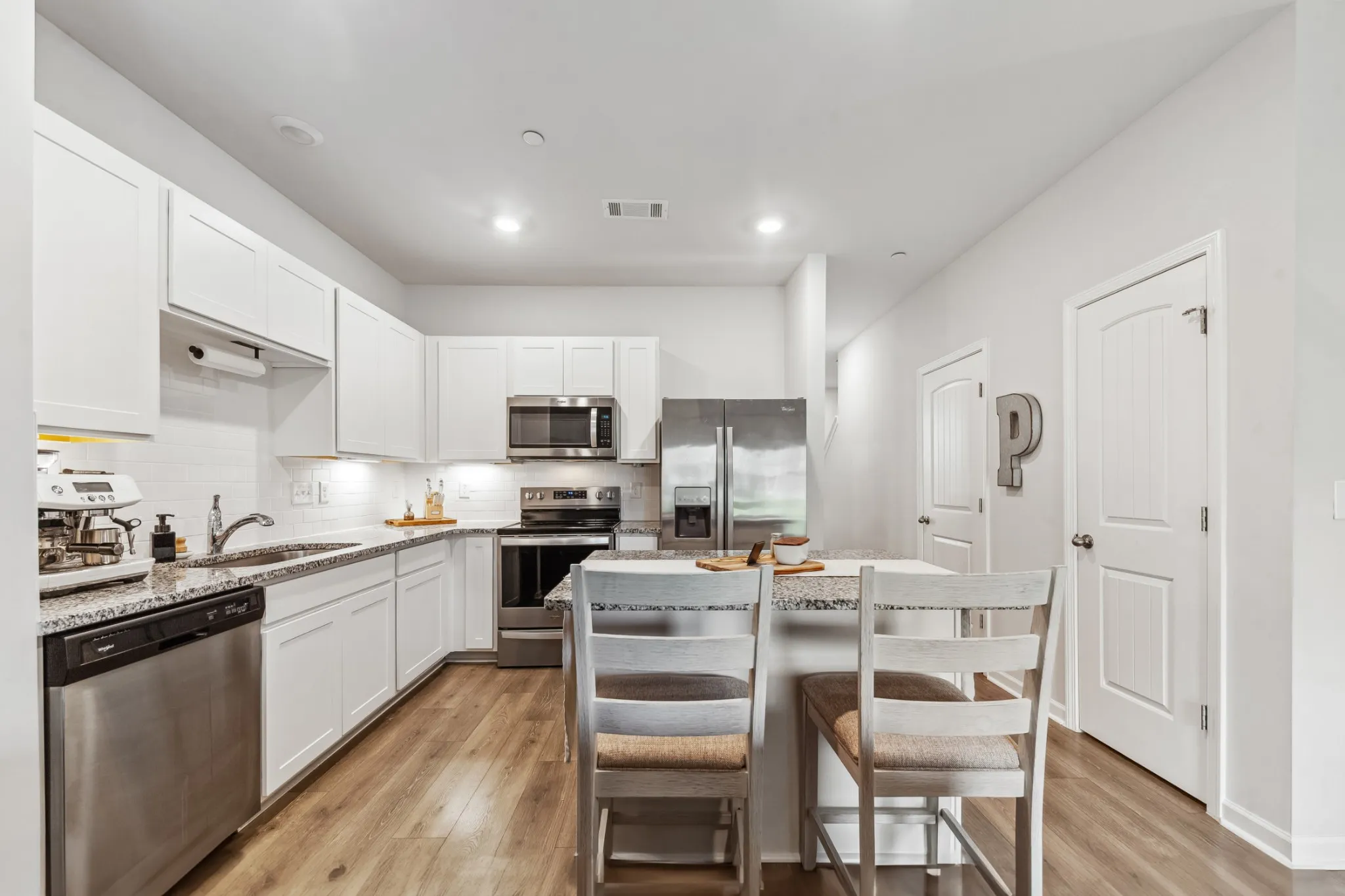 Welcome to your Dreamy Townhouse Oasis! This immaculate 3-bedroom, 2.5-bathroom gem boasts 1440 sq. ft. of pristine living space and is move-in ready just for you! With a professional blend of fun and functionality, this home welcomes you with an airy, serene, relaxing feel. LVP flooring, recessed lighting and SMART features throughout provide luxury. Enjoy cooking in the modern kitchen, featuring granite counters, a spacious island, and sleek stainless steel appliances, while the alarm system and washer-dryer add ultimate convenience.