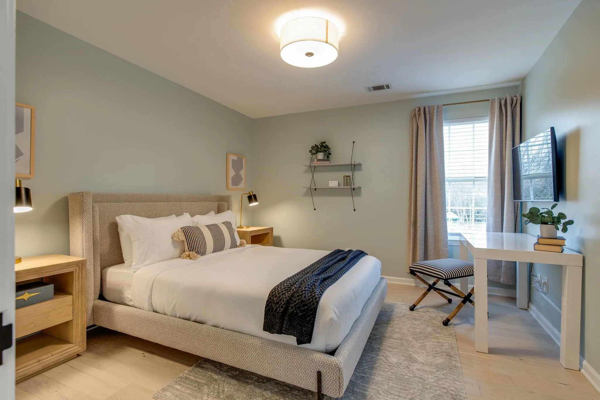Beautiful, Sleek, and Modern 4 bdr Home Away from Home! Newly renovated and fully furnished home on a quiet cul-de-sac, This like new home is perfect for pet lovers with a private fenced in backyard and view of the park from your deck. This home has a main floor bedroom with a full bath, with a family room and living room. Down the hall awaits a new kitchen with new appliances and enough cabinets and pantry space for any cook. The kitchen, dining room, and living room connect to create an open floor plan. With two separate staircases, access to the upstairs bedrooms is effortless. Upstairs awaits more bedrooms, including a master with vaulted ceilings, a walk in closet, and a luxurious bathroom. This home is perfectly set up for your home away from home stay. Quite and easy location that is quick 10 minute drive to Cool Springs Mall, Interstate 65, or the Square in Downtown Franklin! Welcome to your home away from home! Minimum 6 month lease required. Amenities include: Kitchen set up for all your cooking needs including an air fryer, blender/food processor, Keurig for Kcups or ground coffee, double ovens, and more! Large fenced in back yard with direct access to public playground Two car garage Large living room with gas fireplace and open floor plan off of eat in kitchen Sitting room with record player HD televisions with USB cords for extra connections High speed fiber internet Large office with printer and monitors Formal dining room for 6+ people Master en suite with walk in shower, soaking tub, and double vanities Charcoal smoker/ grill with blue tooth Please inquire about availability as it varies quickly with our corporate rentals.