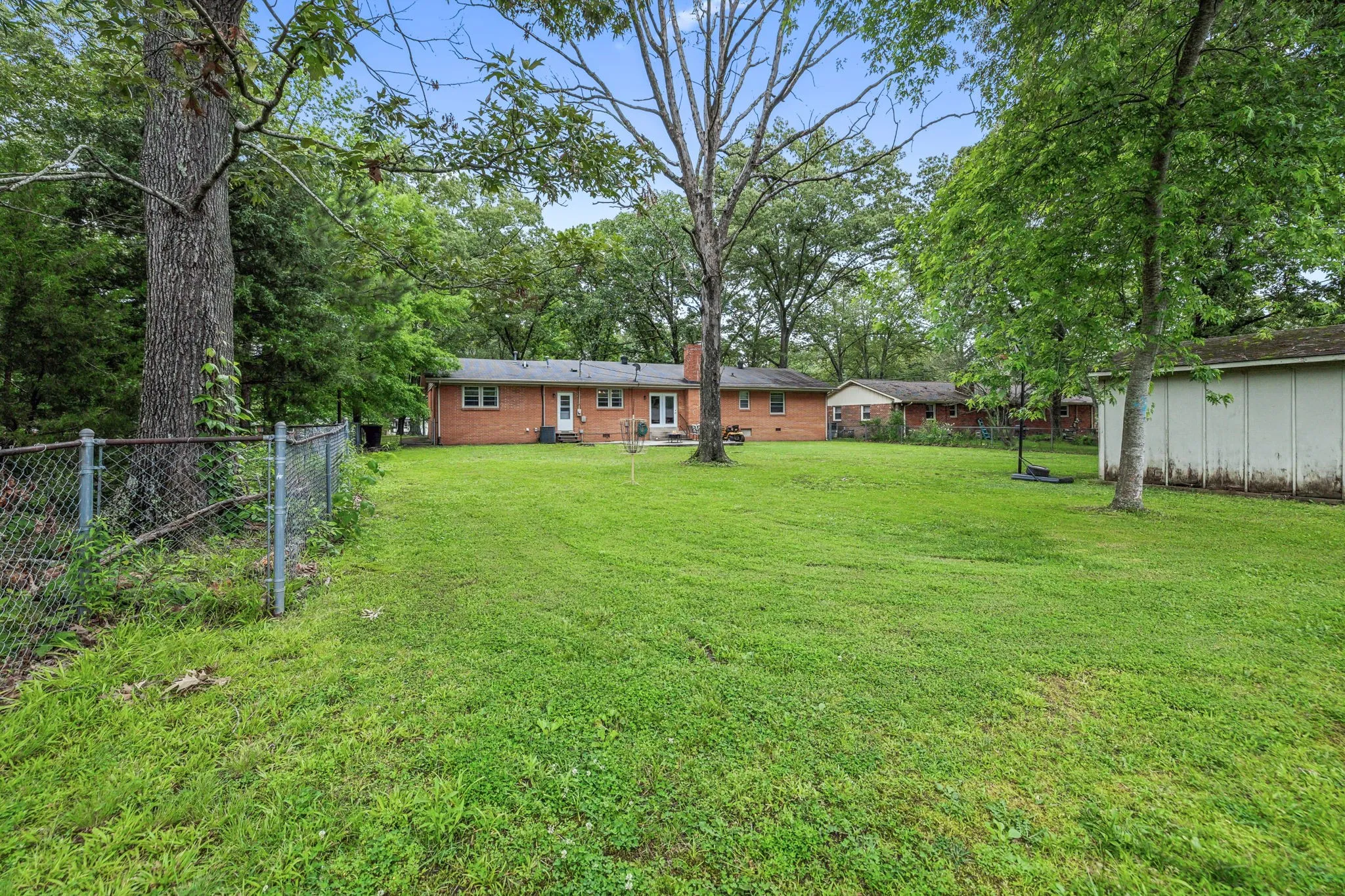 Chain link fenced backyard – pets, parties, or both? You decide