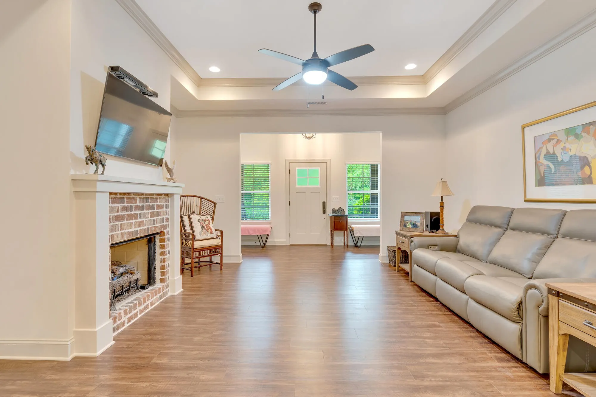 Welcome to easy living in one of the area’s most desirable communities—The Oxford! This beautifully maintained 3-bedroom, 3.5-bath home offers the perfect blend of comfort, convenience, and privacy. With two master suites on the main level, this floor plan is ideal for multi-generational living or hosting guests with ease. The inviting living room features a cozy gas fireplace, while the spacious kitchen and dining area make entertaining a breeze. Upstairs, you’ll find a third bedroom with its own full bath—perfect for a home office, bonus space, or additional guest suite. Set at the end of a quiet street with no neighbors on one side, you’ll enjoy extra peace and privacy. The oversized two-car garage offers plenty of storage and room for vehicles, bikes, or a workbench. Living in The Oxford means yard work is taken off your plate, thanks to the HOA, and you’ll love having access to community sidewalks, nature trails, and a sparkling pool—all just steps from your front door. If you’re looking for low-maintenance living with upscale finishes and unbeatable community amenities, this one checks every box.