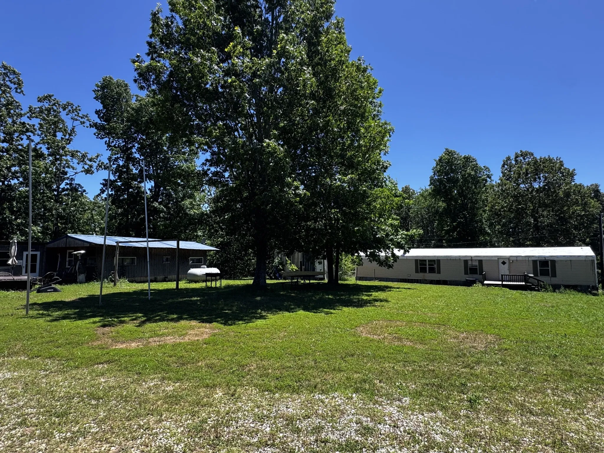 Investor’s opportunity to own a small trailer park in the country. 4 rental properties all on 5 acres with plenty of space for more! Excellent well water supplying all 4 properties and told it could handle more. The 2 vacant single-wide trailers could use some new kitchen cabinets, vanities, interior paint and a little work on the decks. Current tenant in the double wide is excellent to pay $750/mo. But no lease. This property could quickly bring in $2,000-$2,500/mo with the current buildings. There is room for least 3 more mobile homes.