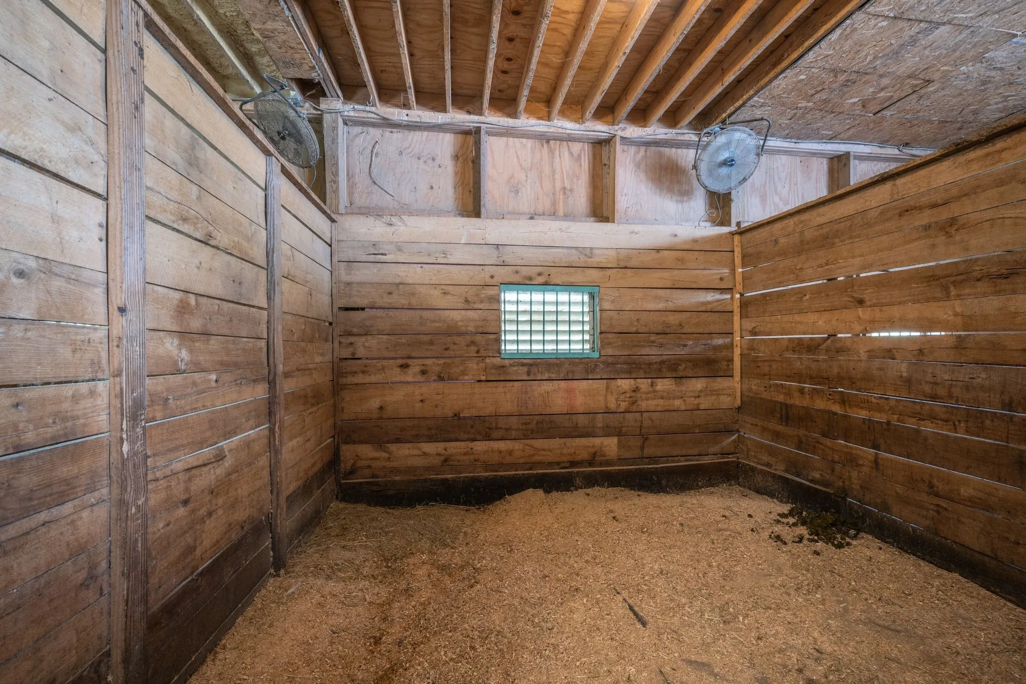 "LongDescription" => "Looking into Barn. Tack/feed storage room on the left."