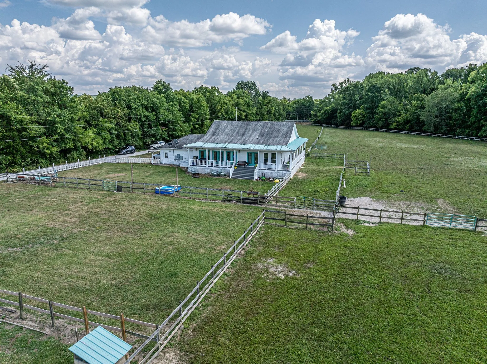Discover this exceptional 11.21-acre farm featuring a beautifully maintained 3-bedroom, 3-bath single-level home with a charming wraparound porch, plus a 2-bedroom, 1.5-bath barndominium offering additional living space or rental potential.\n