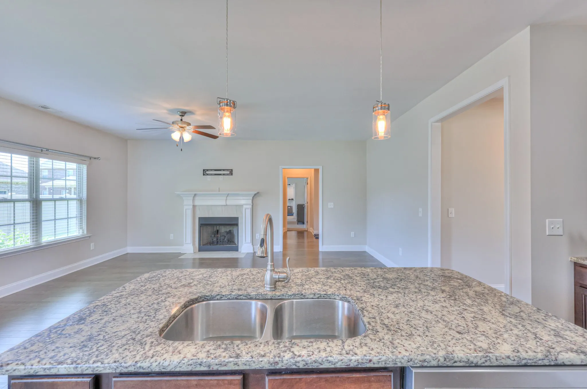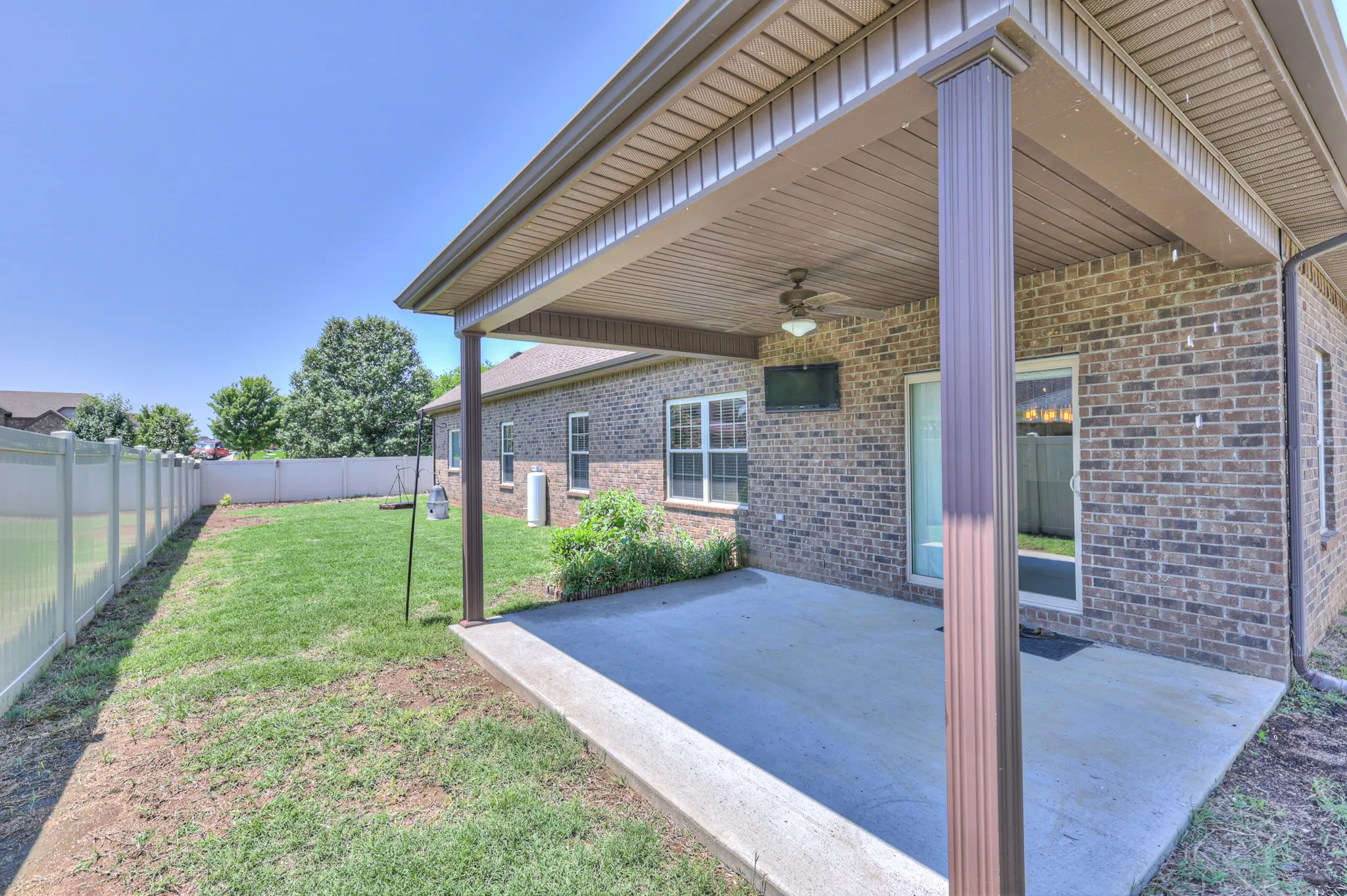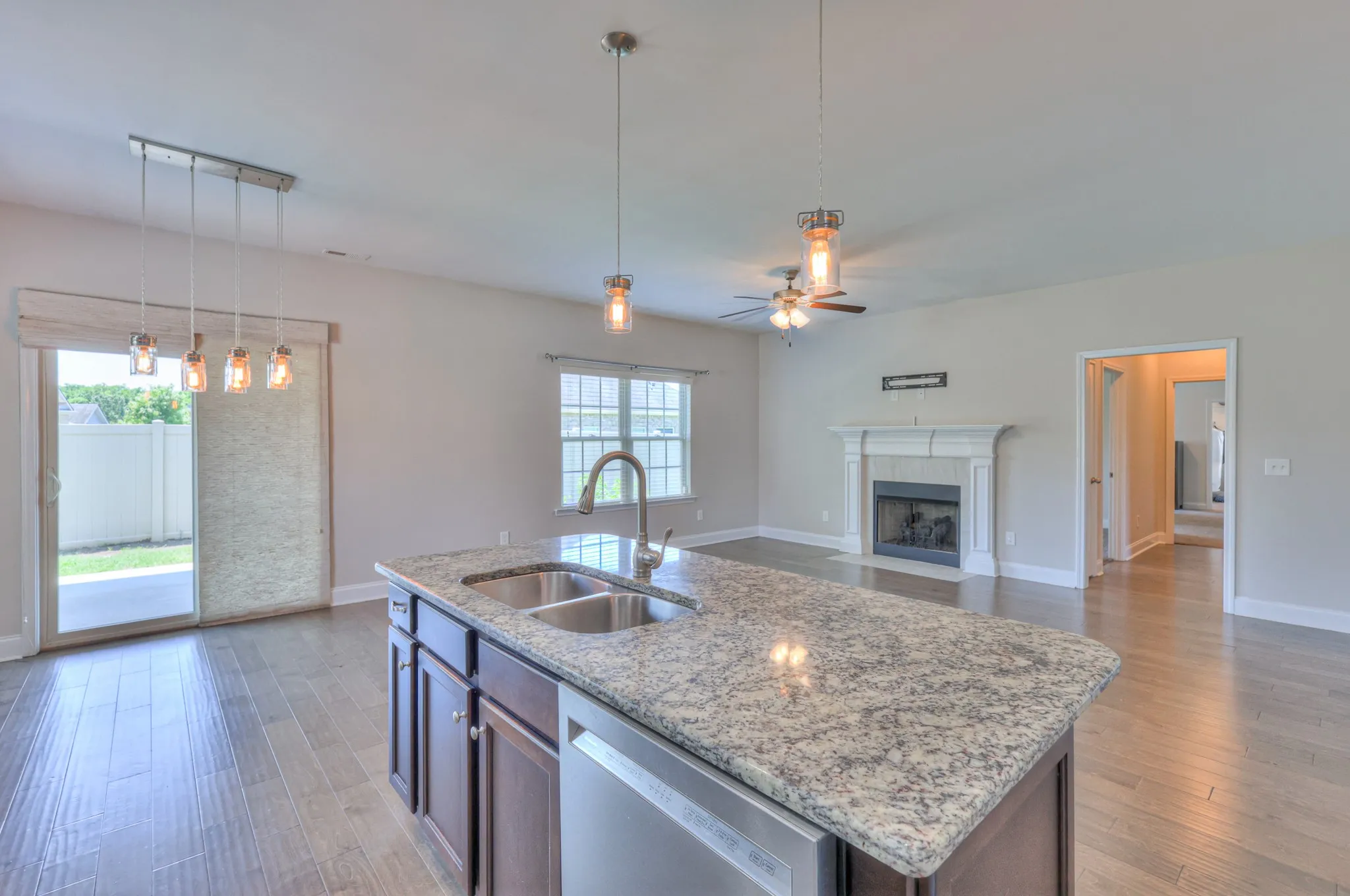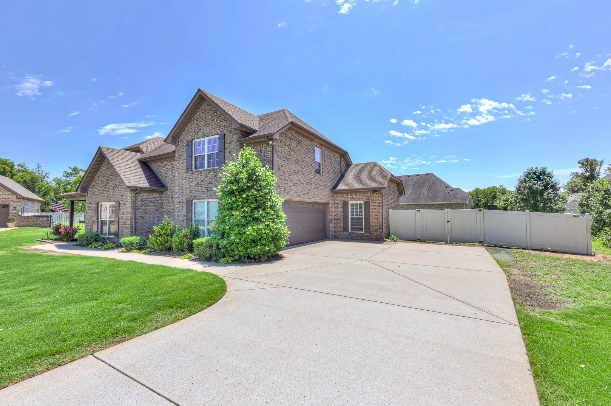 This stunning all-brick home Features gleaming hardwood floors and an open-concept layout centered around a cozy fireplace, this home offers both style and comfort. The kitchen is a chef’s dream with granite countertops, stainless steel appliances, and plenty of space to cook and entertain. The spacious primary suite boasts tray ceilings and a serene retreat feel. Enjoy outdoor living on the covered patio overlooking a private, fenced backyard—perfect for relaxing or entertaining. All bedrooms and main living areas are conveniently located on one level, with an oversized bonus room above the garage and a large attic for extra storage. The home also includes a 2-car side-entry garage. Located in a fantastic community with easy access to the interstate and top-rated schools, this home combines convenience with exceptional living.