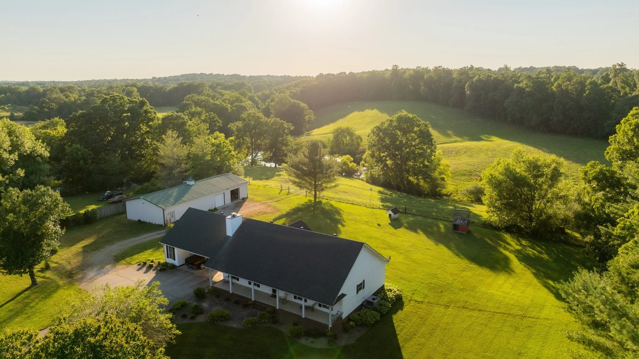 Gentle rolling 90 acres with well maintained pastures and mature timber that sits just minutes outside the rapidly growing Dickson, TN. Hilltop build sites provide views of the countryside and sunrise/sunset. One acre spring fed pond and other areas where the topography provides additional pond build sites. Dry Hollow Branch creek flows through the property. Income potential from cattle, hay and low lying fields that could be converted to row crop land. There is a three bedroom, 2.5 bath house and 30×72 shop with water and electricity. Perfect opportunity for estate, weekend getaway or family compound with everything needed to be a self-sufficient farm.
