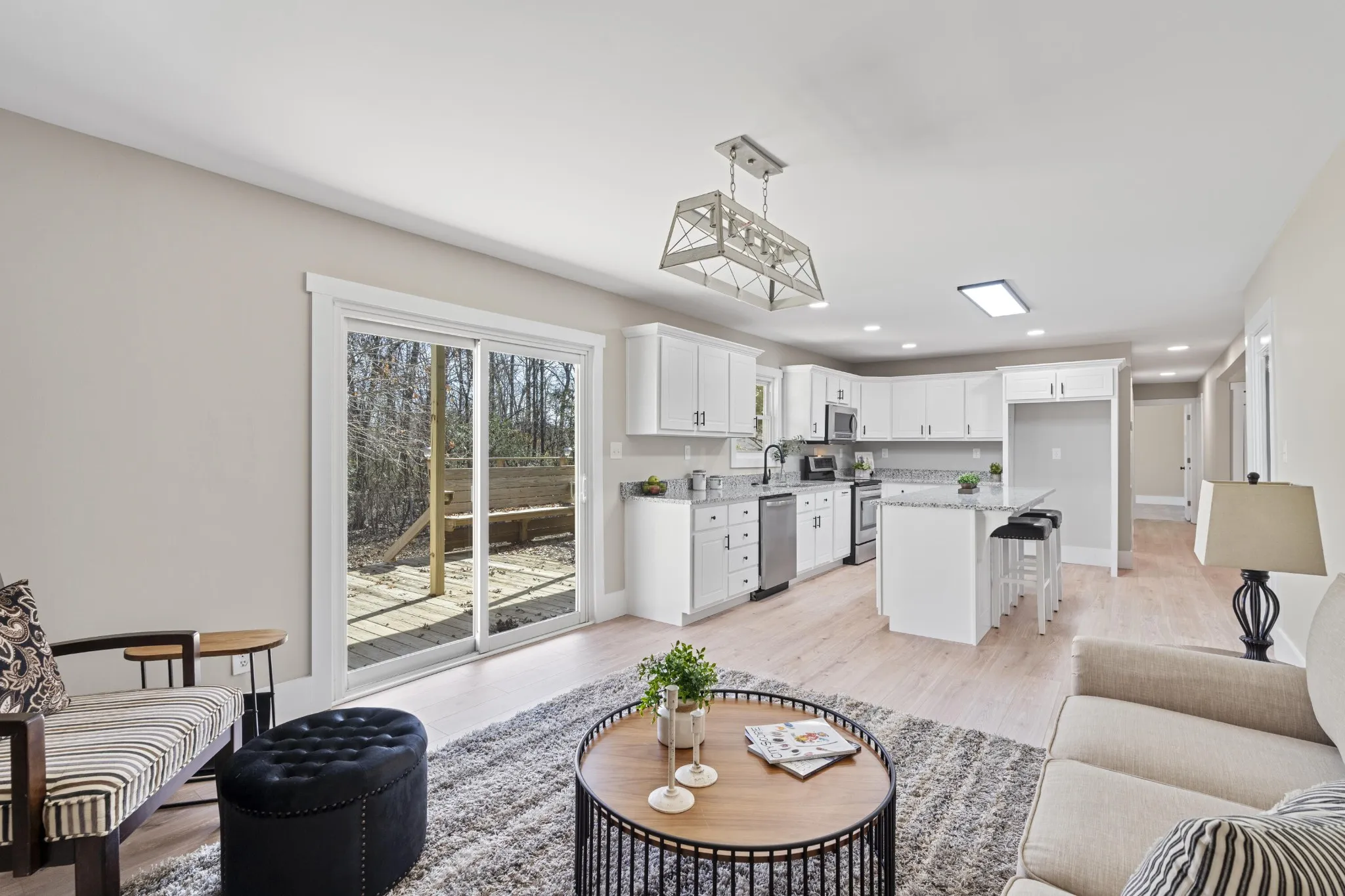 Welcome to 8208 Graham Rd. This completely remodeled beauty is tucked away privately. 4 large bedrooms, 3 bathrooms, all with tiled shower surround, granite tops, and vanities. The large custom kitchen is a chefs dream and perfect for the entertainer. Venture outside to a large front porch and wrap around deck, that even has a second floor Juliet balcony attached to the master bedroom. Tons of storage space in this home everywhere you turn. 2 brand new heat and air units will provide years of comfort. Solar panels spread all through the roof will provide energy concession for the life of the home. Home will be sold AS-IS, Buyer to verify all information deemed important,.