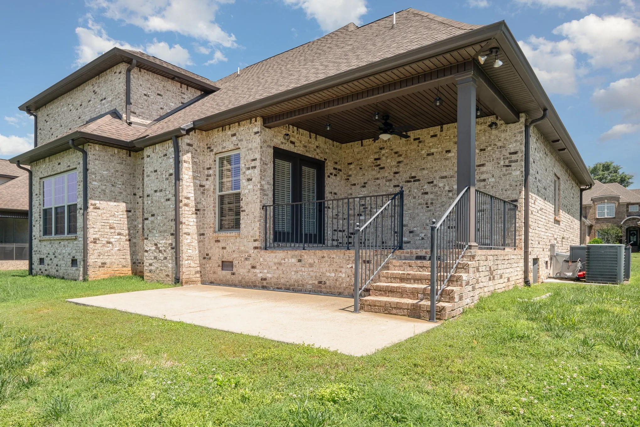 Welcome to this beautifully maintained 5-bedroom, 3-bath all-brick home offering 3,065 square feet of move-in-ready comfort! Located in a peaceful, family-friendly neighborhood, this spacious home features a side-entry garage and desirable master suite on the main level. The gourmet kitchen boasts matching granite countertops, stainless steel appliances, and a water filtration system, perfect for modern living. Elegant crown molding flows throughout the home, complemented by gleaming wood floors. Enjoy outdoor living with both a covered rear patio and a welcoming front porch. Additional highlights include a tankless water heater, quality finishes, and plenty of space for entertaining or relaxing. Don’t miss the opportunity to own this stunning, turnkey property!