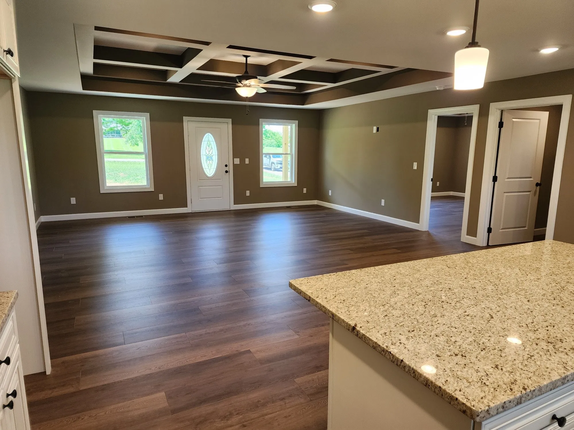New home in a super location! Just right outside of town but country feel! 1802 sq feet 3 bdr 2 bath on a beautiful one acre tract! Tons of upgrades, coffered ceilings, lvp flooring throughout, tile shower, granite counters, covered front and back porches, beautiful cabinets, and more! This home is ready to move into! Not many choice lots like this one!