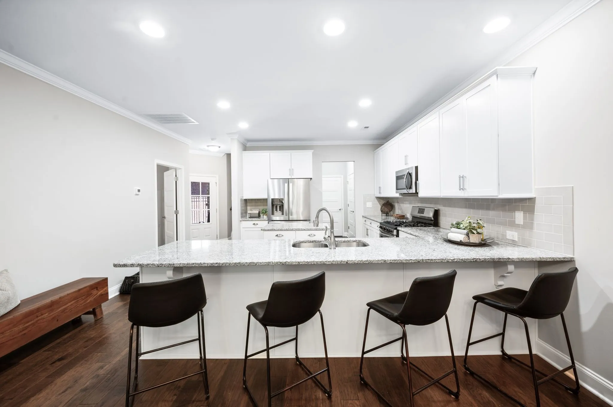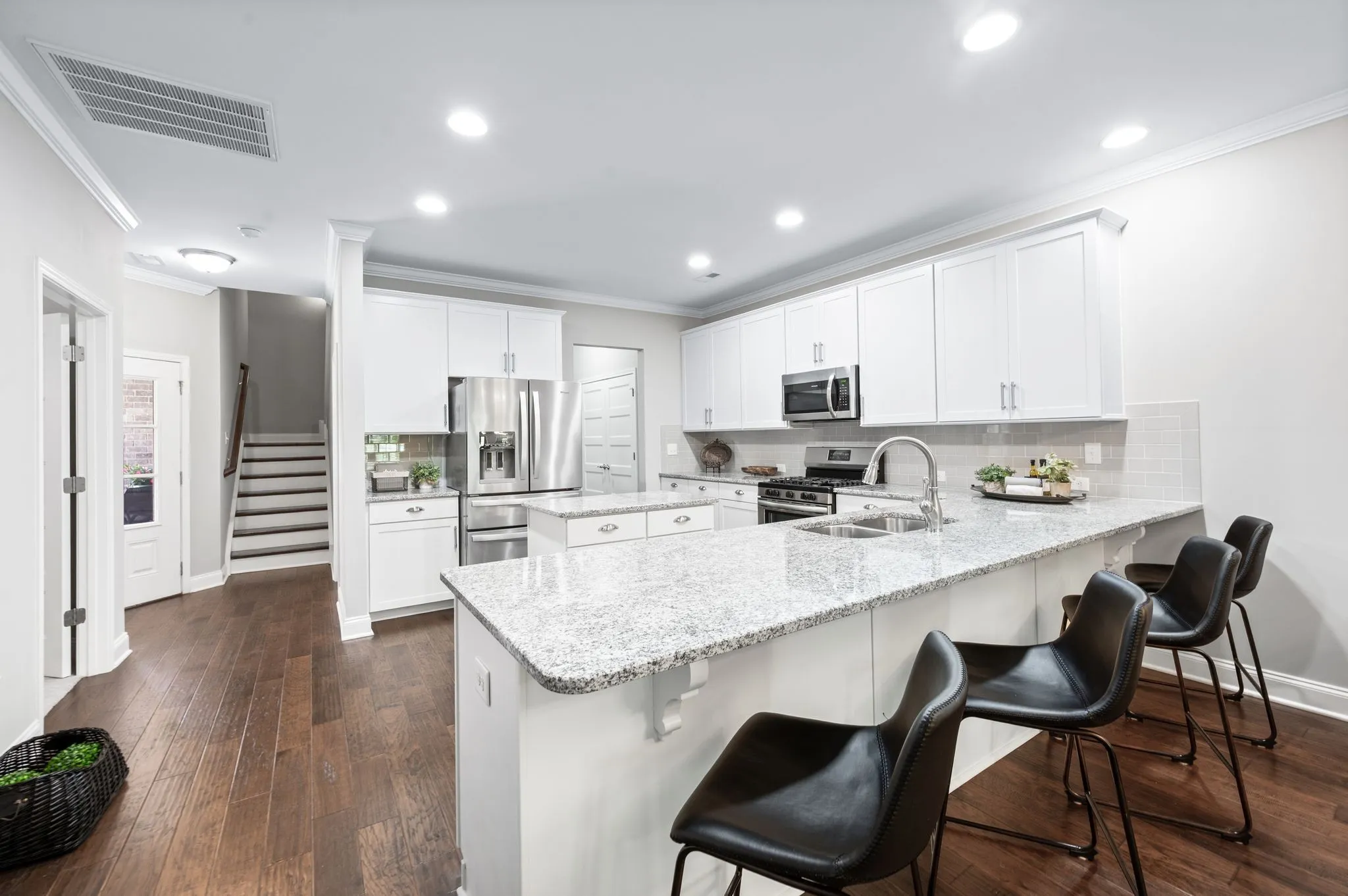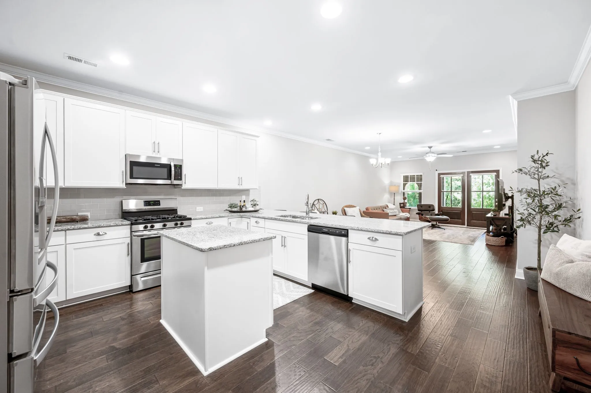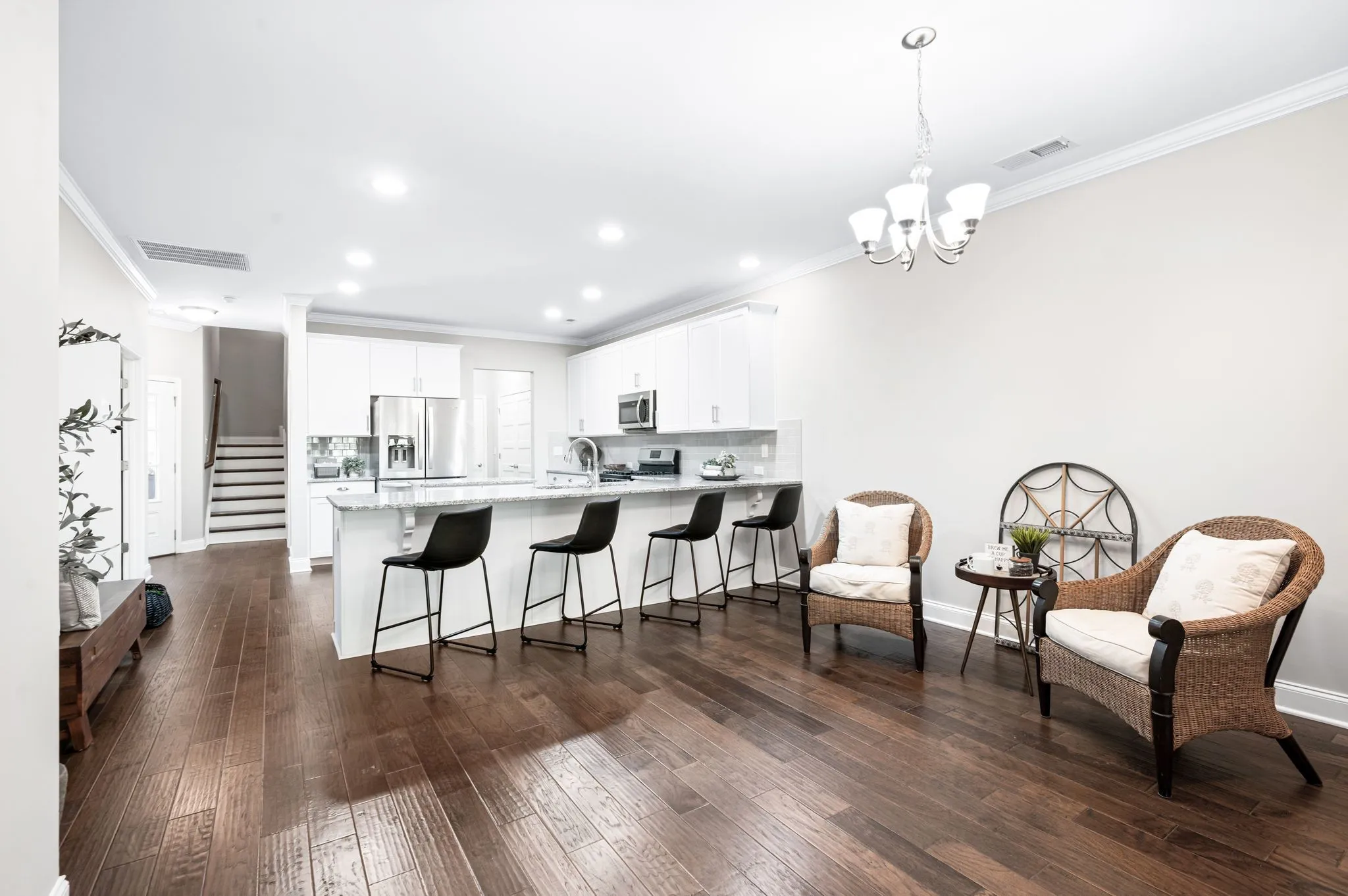 +"PublicRemarks": "Waters Edge-Echelon Cottage move-in ready and like new! This barely lived-in Ashleigh floorplan offers an open concept layout with a rare front porch view in a unique, wooded setting. Enjoy your mornings and relax in the evenings on the secluded covered porch overlooking peaceful natural scenery with frequent visits from deer and squirrels. The kitchen features granite countertops, counter-height seating, extensive cabinetry and a pantry, flowing into the dining and living areas all with beautiful wood flooring—ideal for entertaining. The spacious main-level primary suite includes new carpet, a double vanity, tiled shower, and walk-in closet along with views of the wooded scenery. A secondary main-level bedroom, full bath, and laundry/utility room off the garage complete the first floor. Upstairs, find a large bonus/retreat room, full bath, and large walk-in storage closet—perfect for a 3rd bedroom or guest suite, office, or flex space. Enjoy maintenance-free living in a private-feeling location with full access to Waters Edge resort-style amenities: pool, splash pad, playground, fitness center, and walking trails. Don’t miss this rare opportunity to live and play in such a great environment close to downtown Franklin restaurants and shops, the Pearlene Park, Berry Farms, minutes from Cool Springs shopping and restaurants and just a short drive to downtown Nashville!"