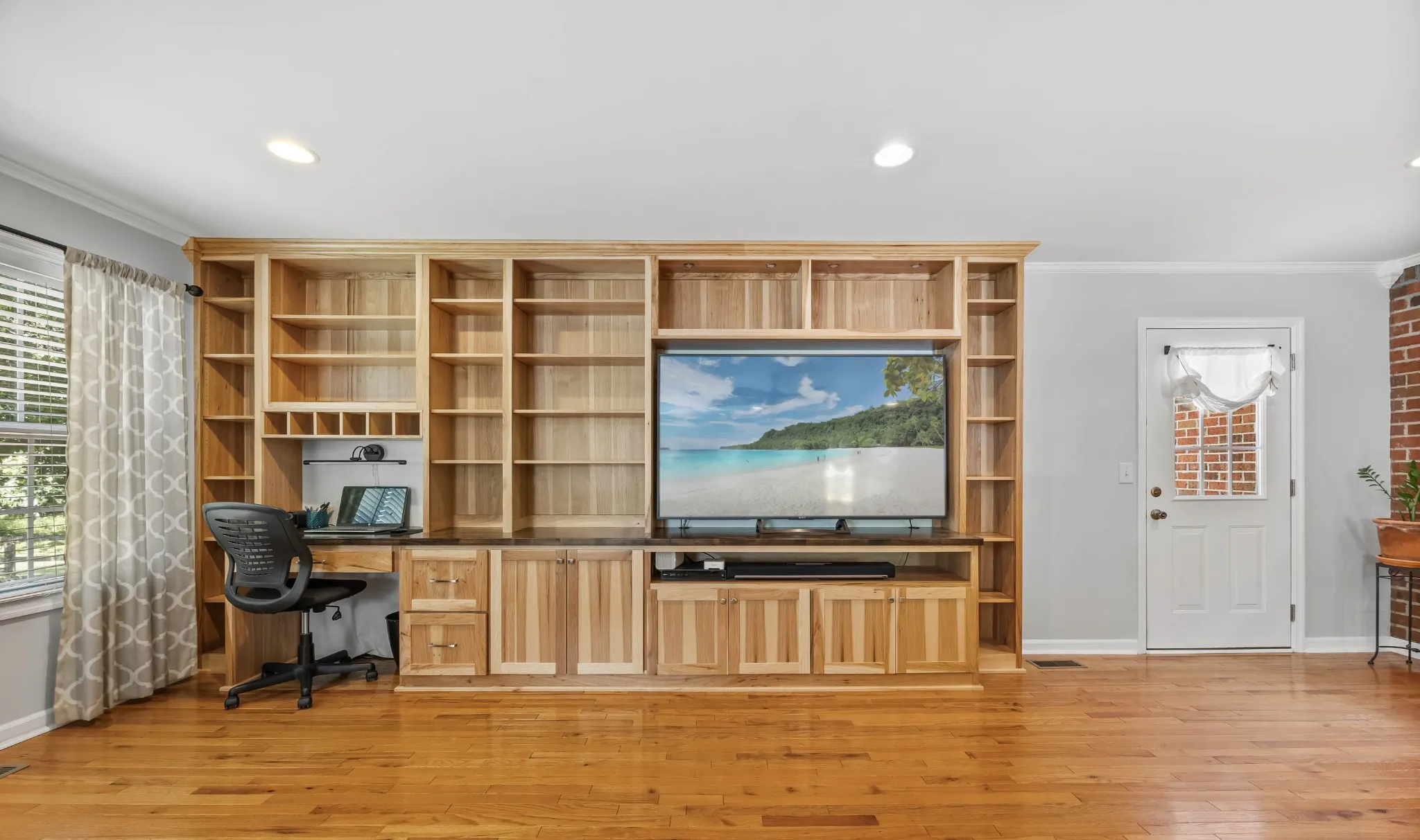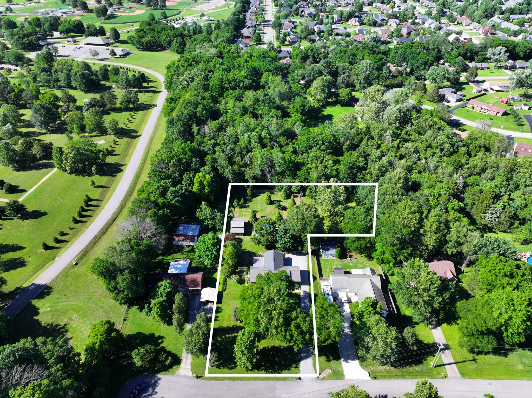 Welcome to this enchanting all brick ranch home, perfectly situated on 1.3 serene acres that back up to picturesque Barfield Park. Surrounded by mature trees, fruit trees, and vibrant, well maintained landscaping- including a charming arbor-this hidden gem offers the perfect blend of peaceful seclusion and convenient living. Inside you will find not one, but two spacious primary suites, making it ideal for multi-generational living or guests. The expansive 24 x 24 family room addition features built in bookshelves, and a stunning hearth-style stone fireplace, creating a cozy, inviting atmosphere for gatherings. The gourmet kitchen is a dream, boasting newer hickory cabinets, gleaming hardwood floors and stainless steel appliances, marrying modern functionality with timeless warmth. The entire home is equipped with a water softener system. Step outside and discover your own private oasis. The 33 foot pool with a full surrounding deck is the focal point of the backyard, complemented by a 5 x 10 pool hut. The covered back deck offers a quiet retreat to enjoy nature in privacy. For the hobbyist or craftsman, the 32×18 workshop is equipped with a finished floor, electricity and loft providing practicality and comfort. This one of a kind property offers all the conveniences of city life while delivering the charm and tranquility of country living. Don’t miss your opportunity to own this rare retreat!