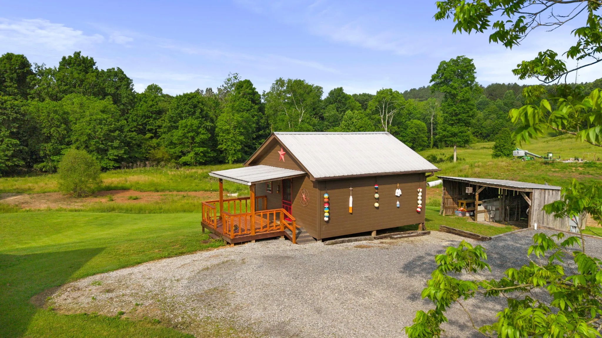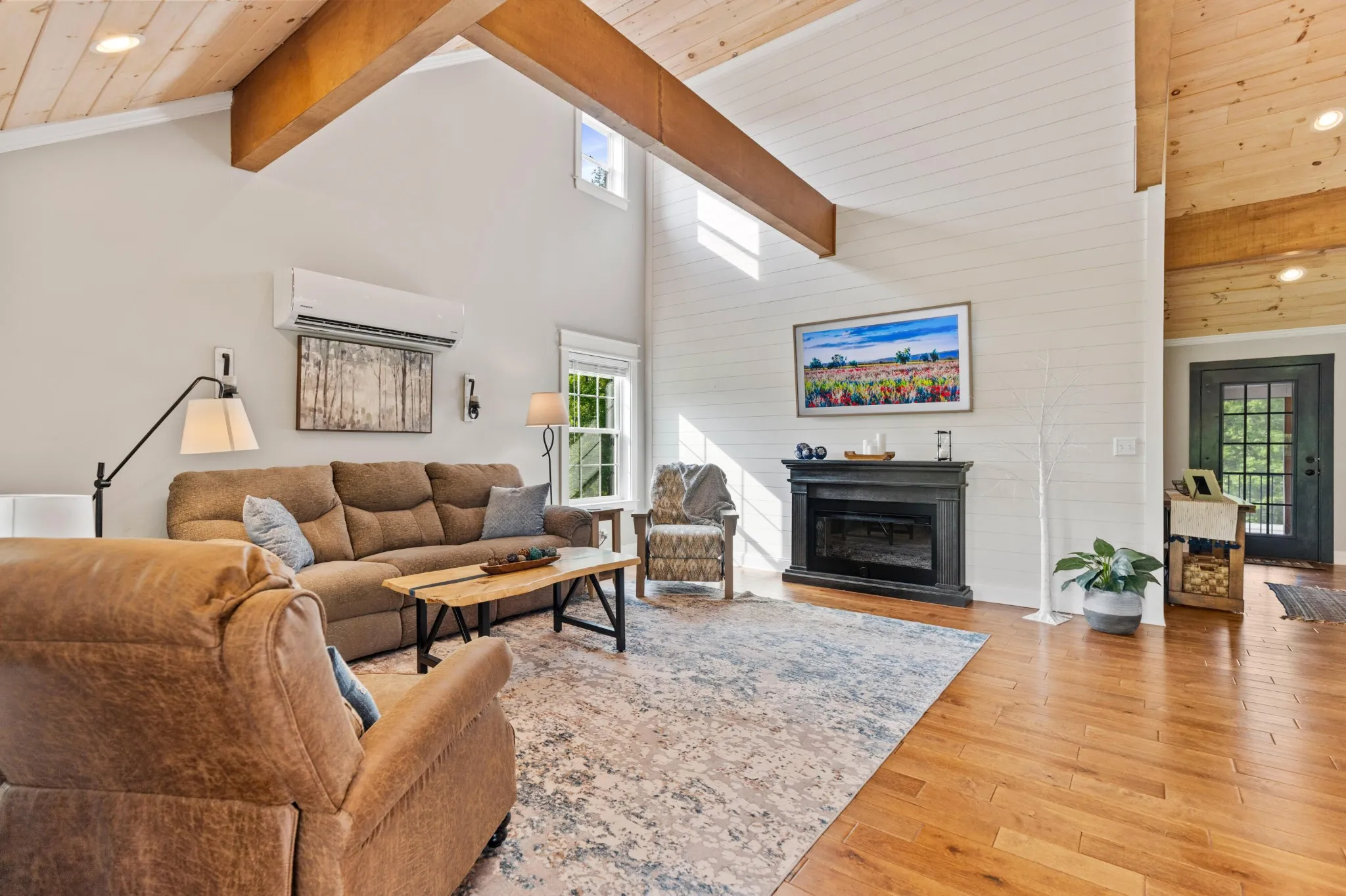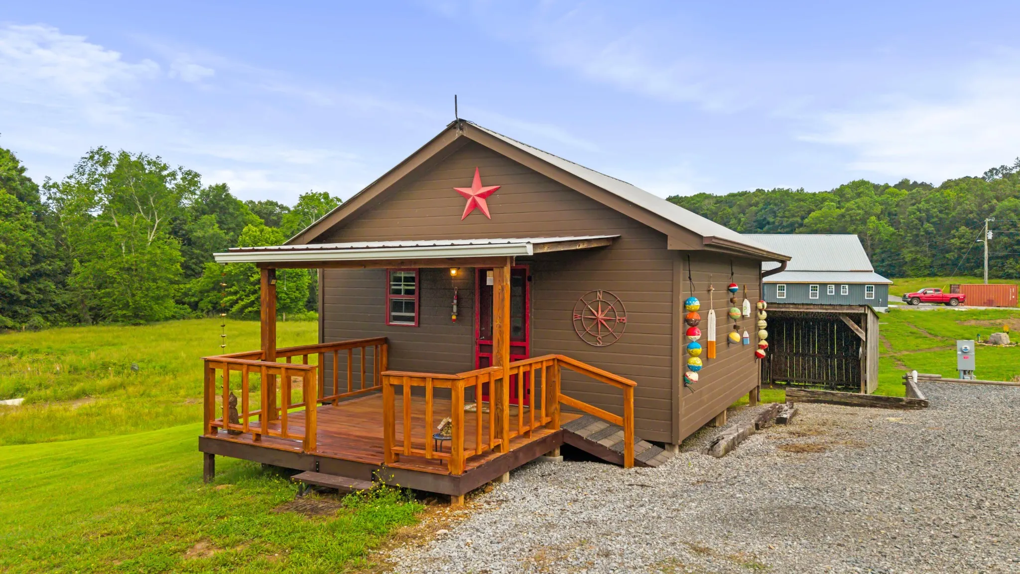 The main home features engineered wood flooring, a screened back porch, and a covered front porch with composite decking—ideal for enjoying your morning coffee in the fresh air. The living space is kept comfortable year-round with three mini-split systems.