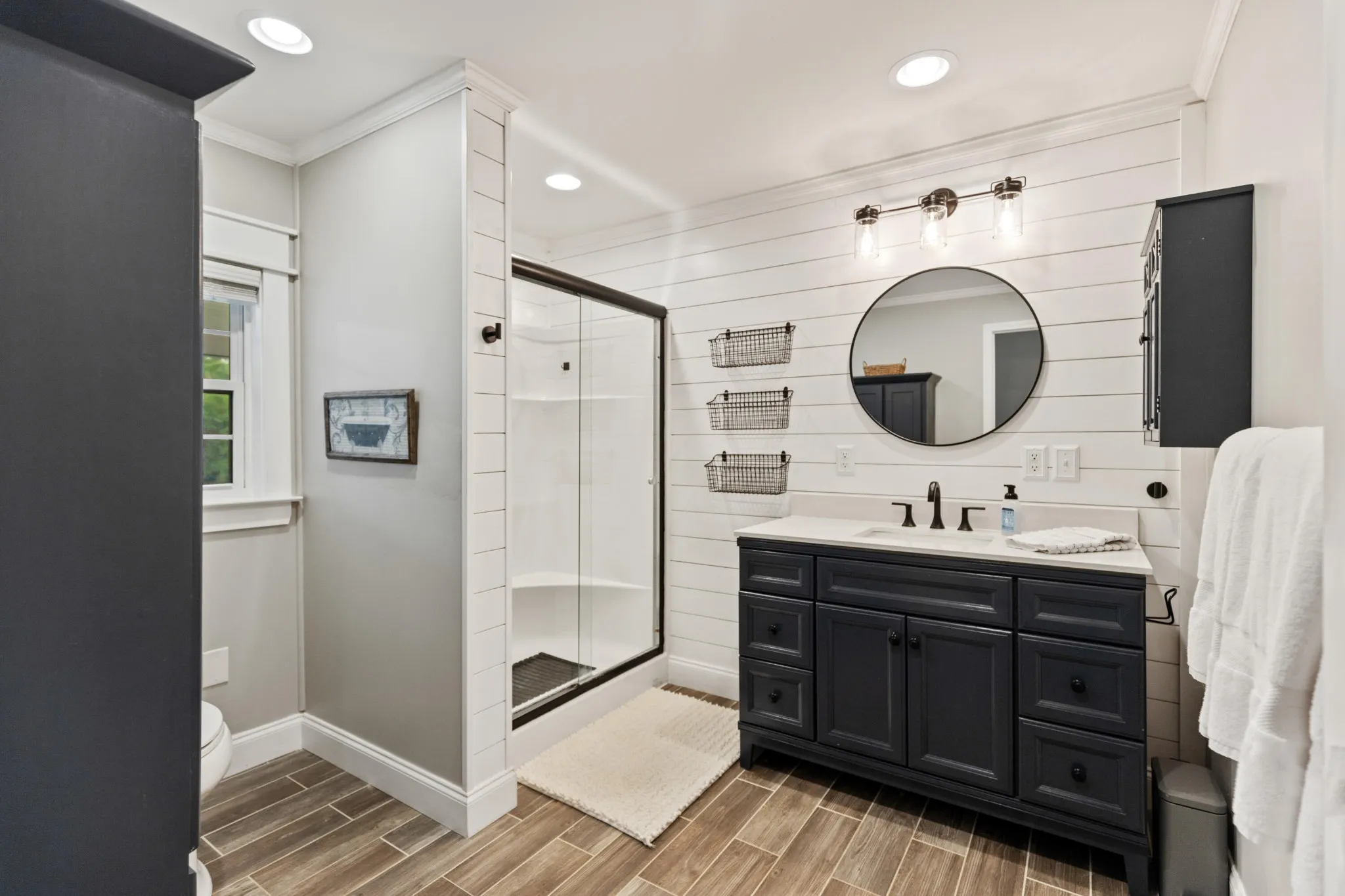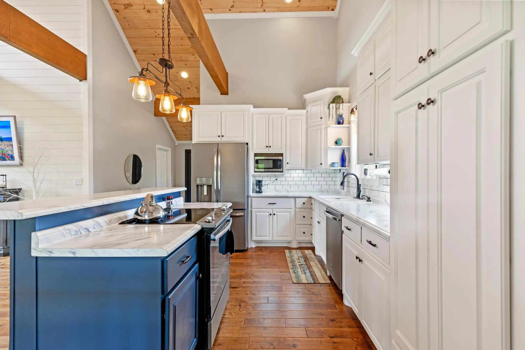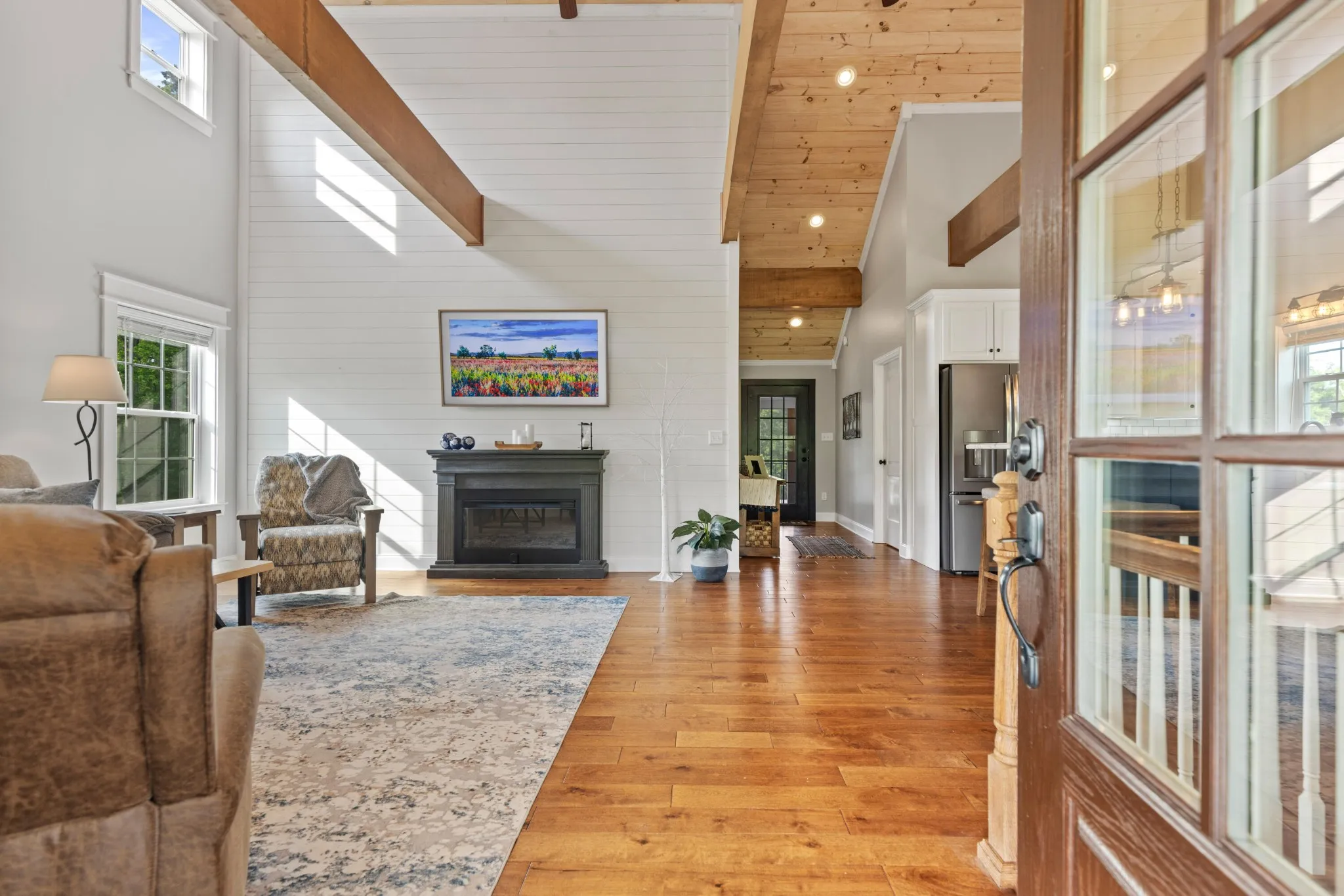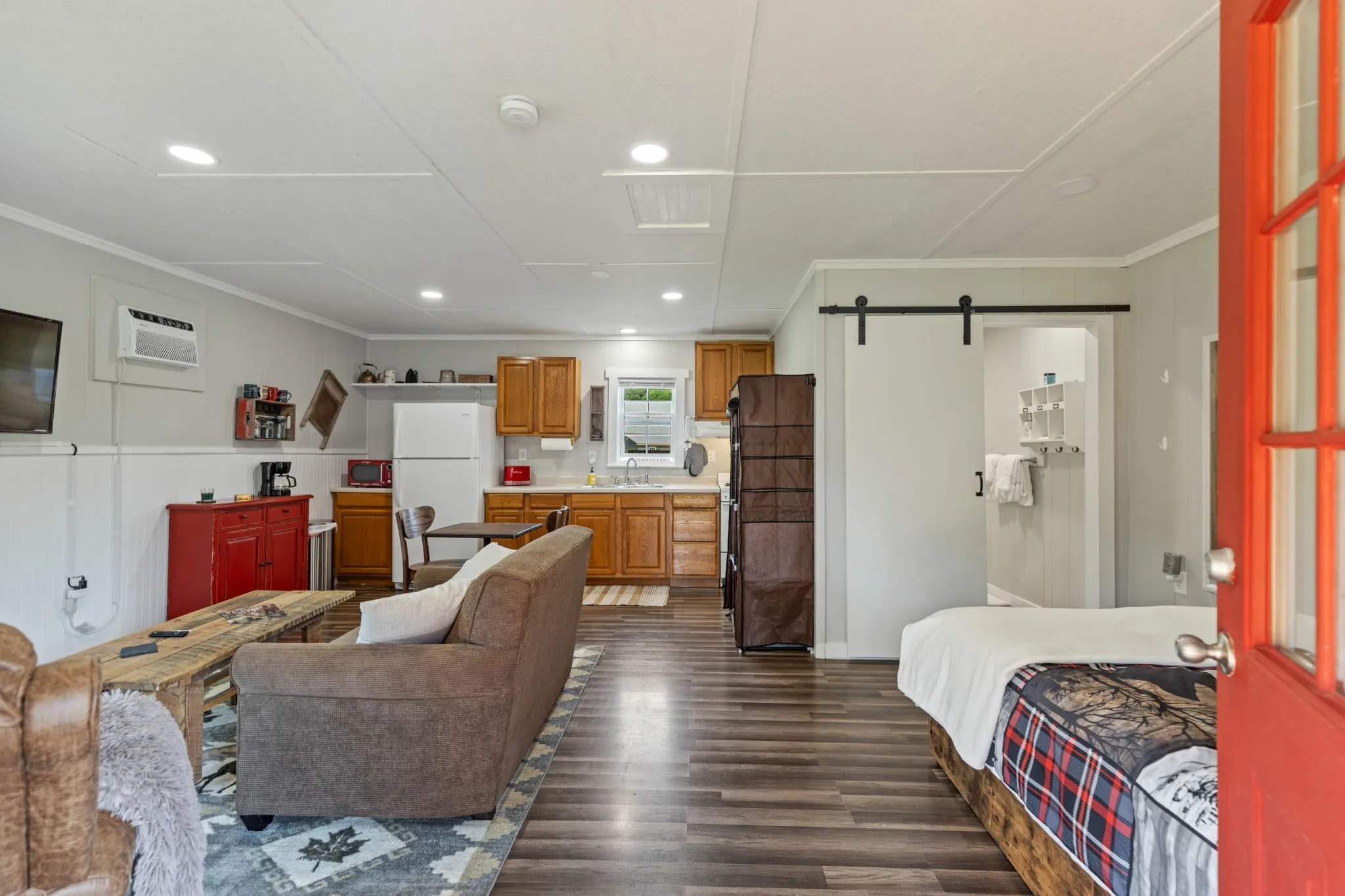 The main home features engineered wood flooring, a screened back porch, and a covered front porch with composite decking—ideal for enjoying your morning coffee in the fresh air. The living space is kept comfortable year-round with three mini-split systems.