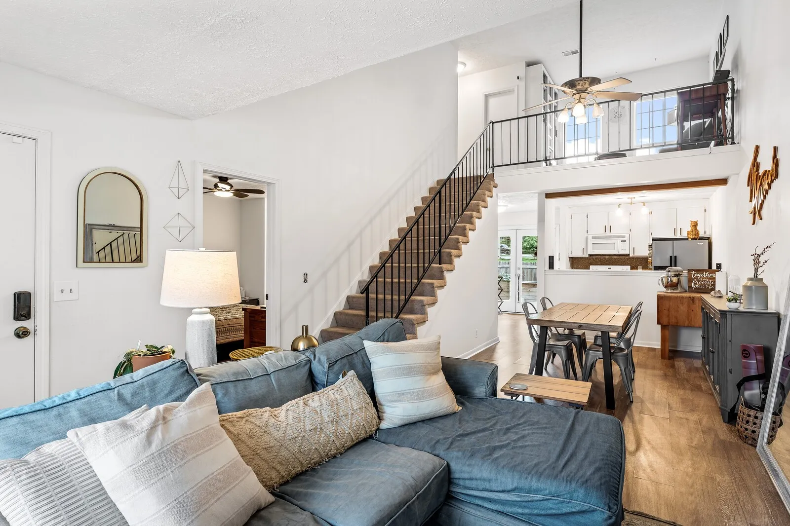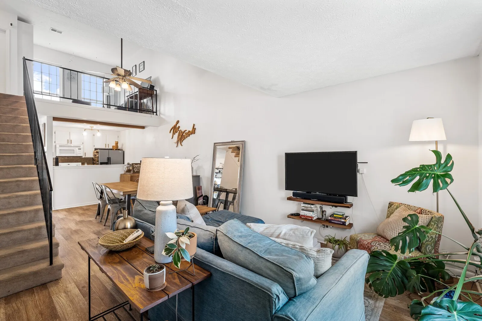 UPDATES GALORE AND SO MUCH CHARACTER! This spacious 2-bedroom, 2-bathroom townhome offers over 1300 square feet of well-designed living space with a hard to find Primary Suite on the main level. First floor has luxury vinyl floors throughout. The open floor plan, complemented by high ceilings, creates a welcoming and expansive feel. Primary bathroom includes a walk in shower and a his and hers vanity. A versatile loft can easily serve as a third bedroom, and with three walk-in closets and built-in cabinets, storage is abundant. The second bedroom upstairs is generously sized with a vanity inside the bedroom. Second bathroom has brand new tub/shower combo adjacent to the second bedroom. The home features Energy Star windows and neutral tones throughout, making it a blank canvas ready for your personal touch. Ideally located, this townhouse combines comfort and convenience. Added decking out back is perfect for entertaining. Unlike other townhomes this home has a fence and enough green space for your pet to safely enjoy! Only 14 miles to downtown Nashville. Convenient to I40 Shopping, Schools, and Restaurants. Marshall Parsons with CMG Home Loans to credit buyer up to 1% of purchase price toward buyer closing closing cost.