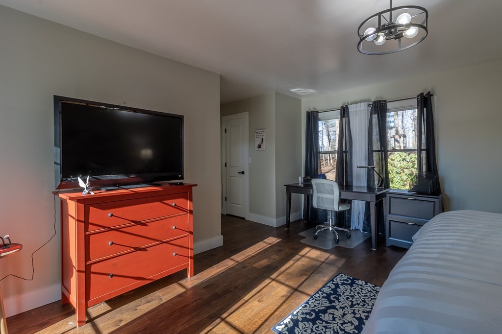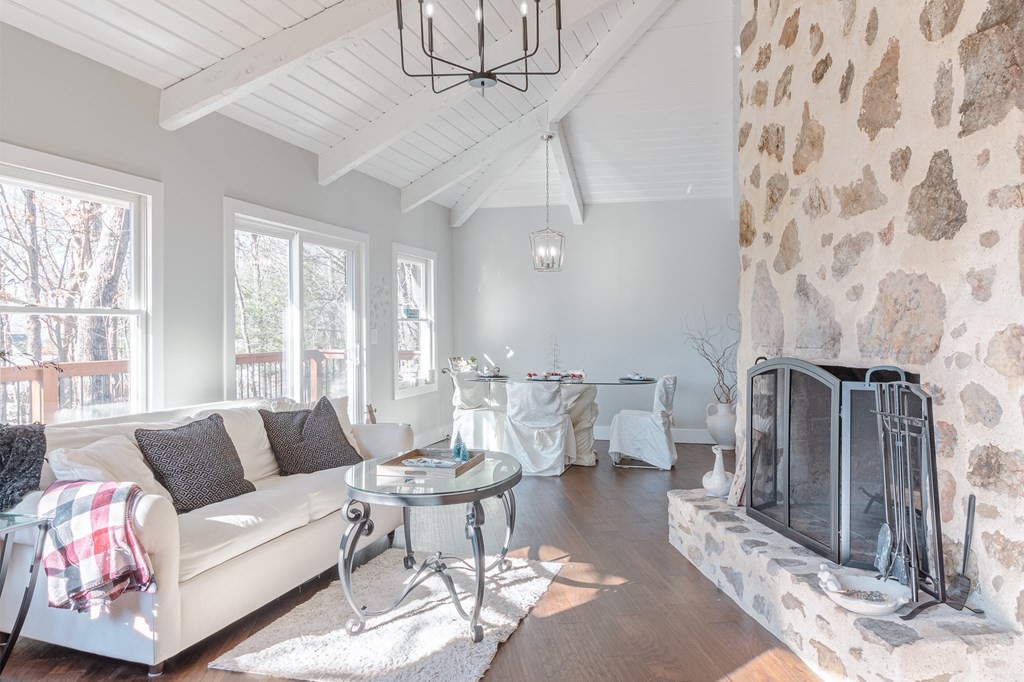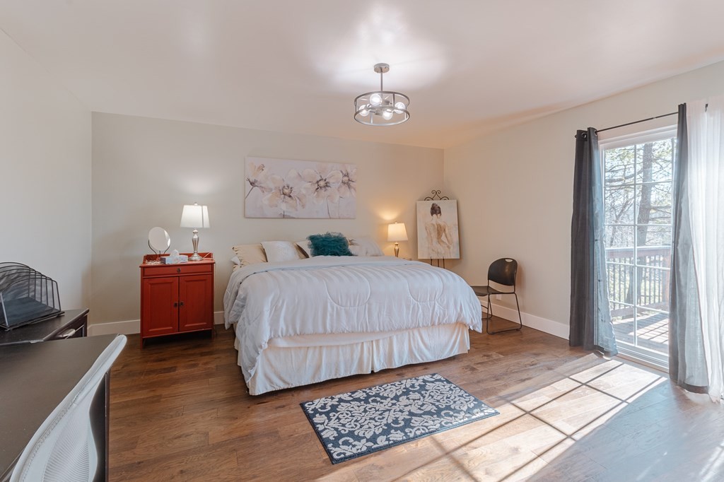 FOR LEASE: Experience this stunning modern mountain home, nestled on a spacious corner lot within the coveted Fort Mountain Estates community. Inside, discover an expansive open-concept great room anchored by a striking floor-to-ceiling fireplace. The kitchen features stainless steel appliances elegantly paired with granite and quartz countertops, complemented by a sizeable basin-style sink. Bask in the natural light pouring through the expansive wall of windows, or step out onto the expansive porch that spans the length of the home. This home provides exclusive access to private porches for each upstairs master suite. Elegance continues throughout with rich hardwood flooring and contemporary tile accents, including a large walk-in shower in one suite and a sumptuous bathtub in the other.