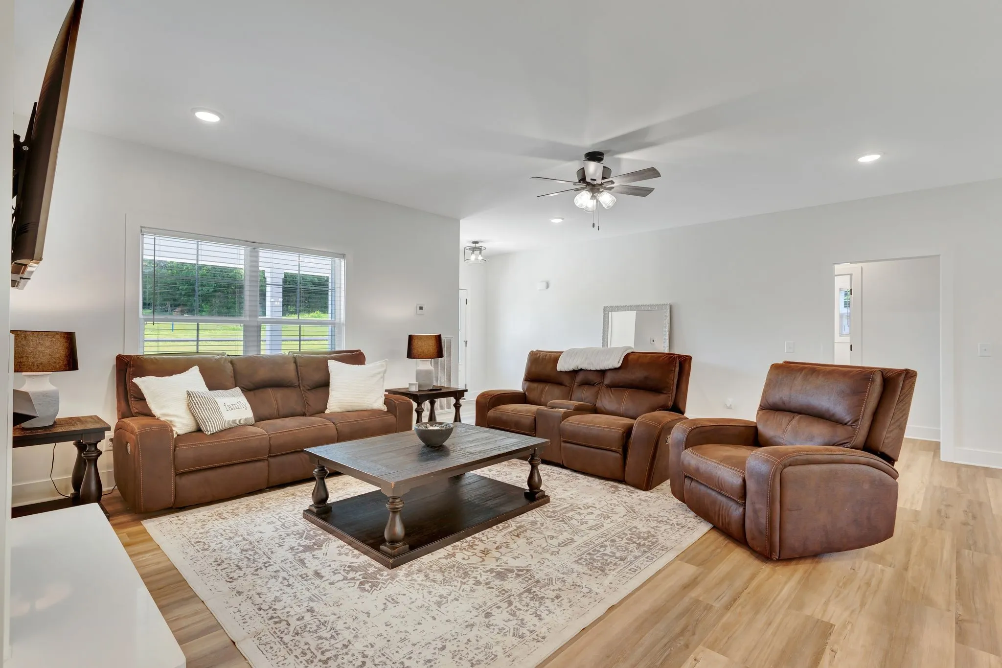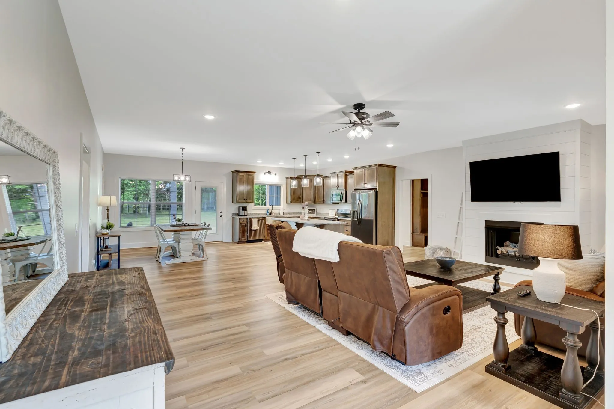 Beautiful newer home on just over 3 acres with over 2,000 square ft of living space, an attached garage, a 30×30 shop, and a paved drive, all adjoining scenic Goose Creek. Ideally located between Lebanon, Lafayette, Gallatin, and Hartsville, and just approximately an hour from the Nashville airport. This move-in-ready home features a 3-bedroom, 2-bath split floor plan with an open living room, kitchen, and dining area. Enjoy custom touches throughout, including a gas fireplace with shiplap, barn door accents, custom cabinets with granite countertops, and stainless steel appliances. The home boasts all tile and luxury vinyl plank flooring, a spacious master suite with trey ceiling, and covered front and back porches. Additional highlights include an encapsulated crawl space and beautifully finished interiors throughout and much more—perfect for country living with modern convenience. Schedule a showing today!