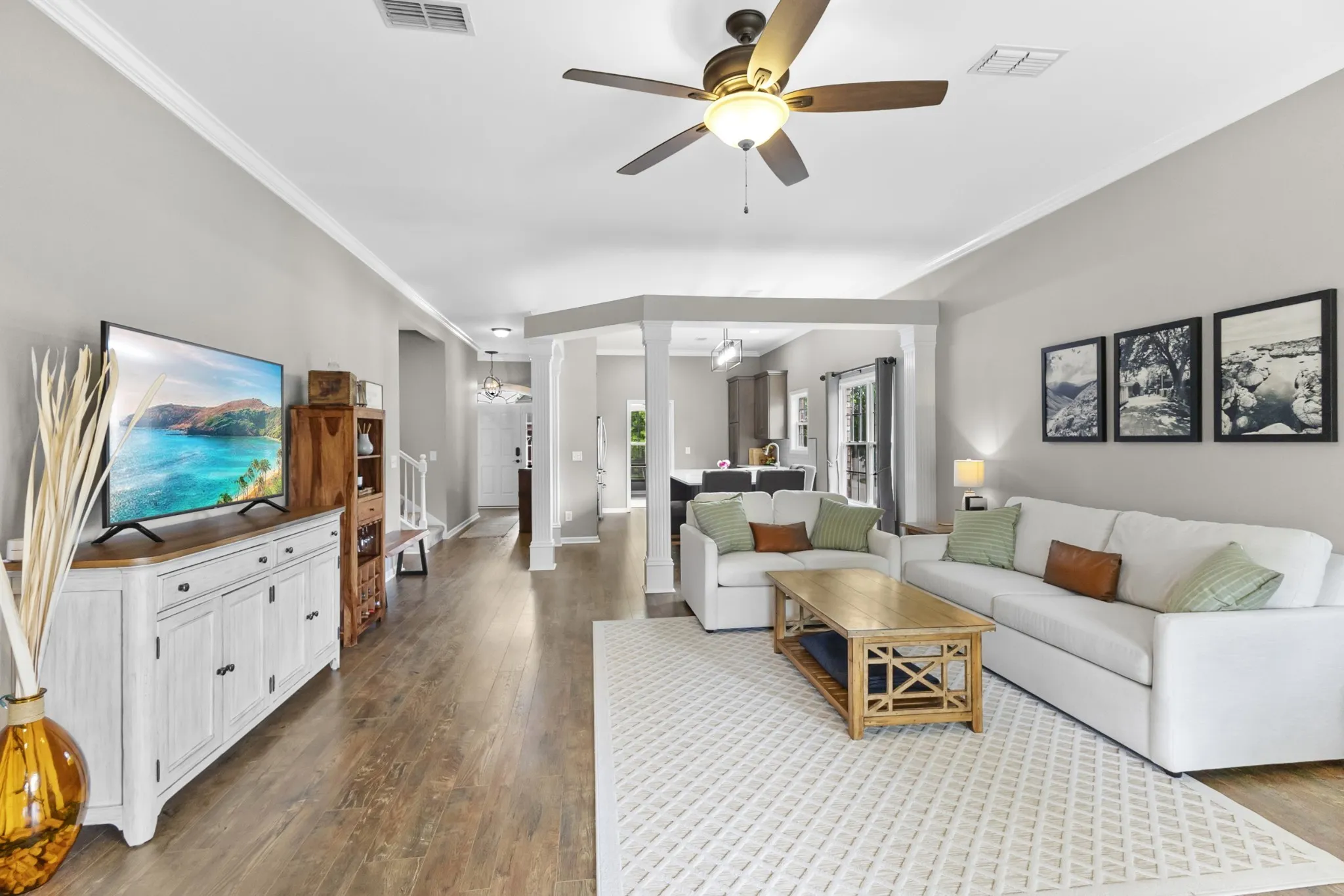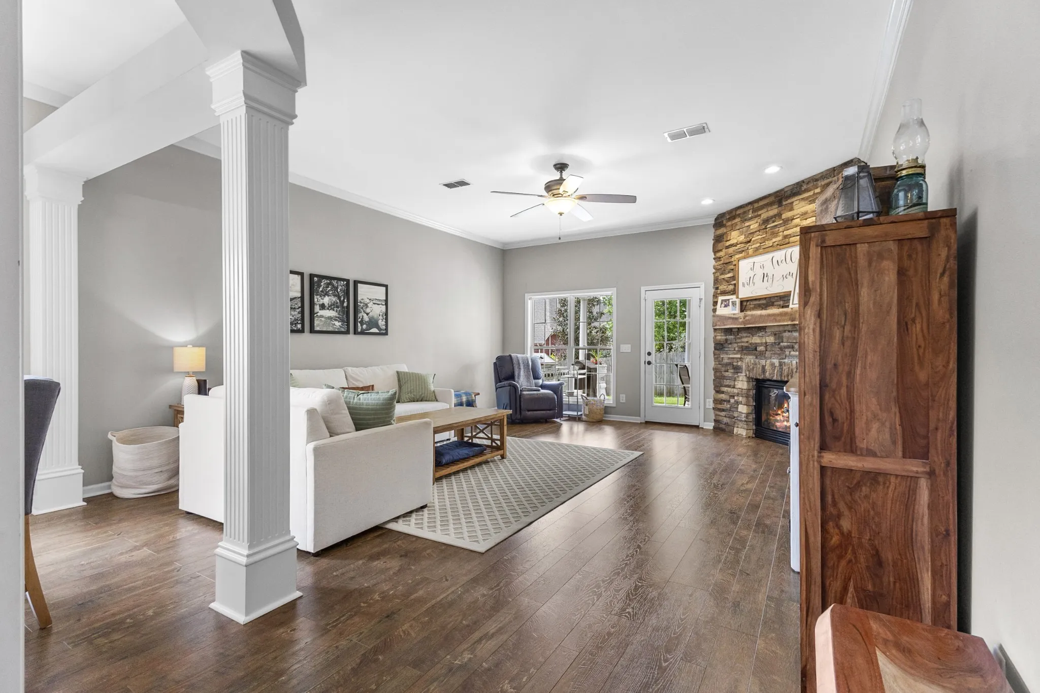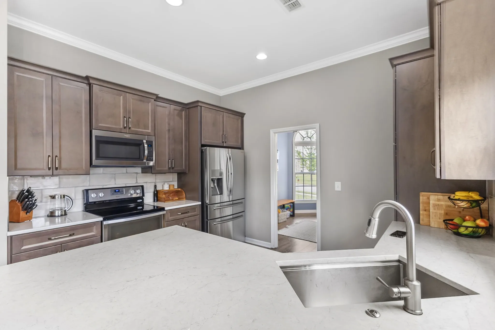 Welcome to this beautifully maintained home nestled in the heart of the desirable Buckner Crossing neighborhood. This inviting residence combines modern updates with cozy comfort, offering everything you need for relaxed living and effortless entertaining. Step inside to find a thoughtfully remodeled kitchen (2020) featuring quartz countertops, contemporary cabinetry, and stainless steel appliances—perfect for both casual meals and gourmet cooking. The open layout flows seamlessly into the spacious living and dining areas, filled with natural light and ideal for gatherings. Enjoy peace of mind with major upgrades already completed, including a new roof (2020) and a brand-new water heater (2024), and water softener system. The home also features two-door roof access, adding convenience and functionality for storage or maintenance. Outside, the covered patio provides a private oasis for morning coffee or evening barbecues, while the fenced-in backyard is perfect for kids, pets, or gardening. Whether you’re hosting friends or simply unwinding after a long day, the outdoor space offers comfort and versatility. Located just minutes from local parks, schools, shopping, and dining, this home offers the best of suburban living with quick access to all that Spring Hill has to offer. Don’t miss this opportunity to own a well-maintained, move-in-ready gem in a friendly and established community!