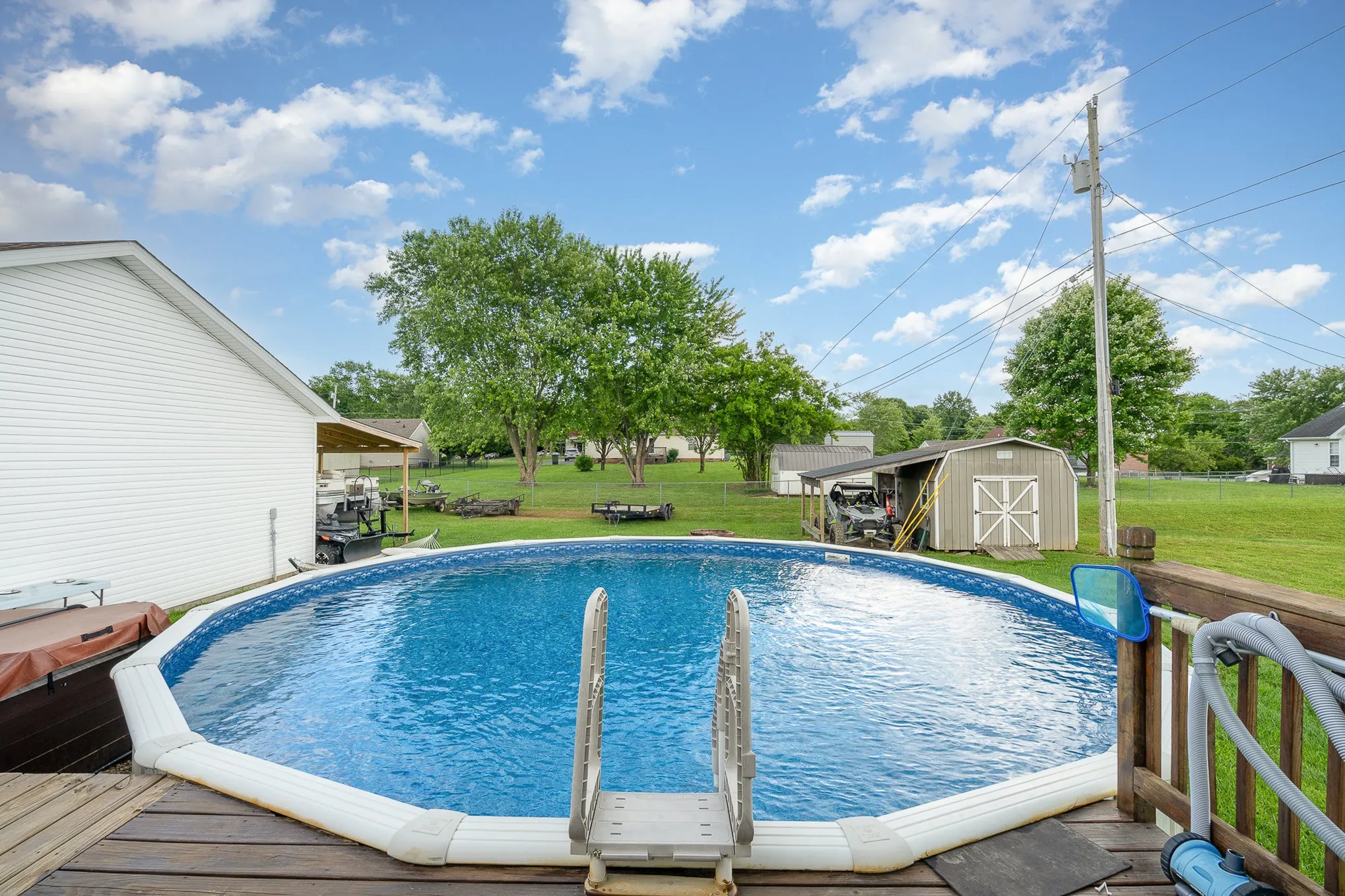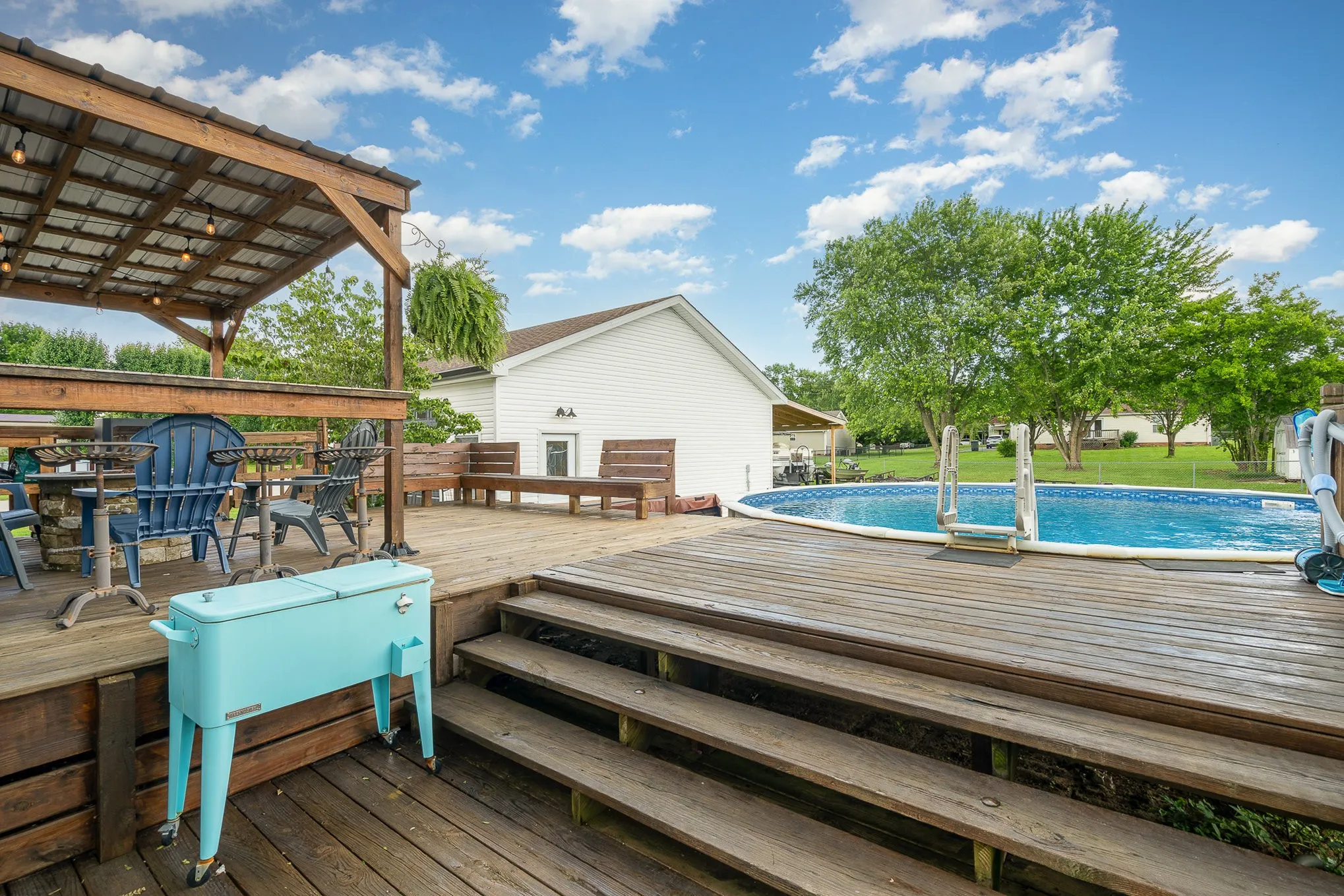 Enjoy the luxury of a newly renovated master bathroom, complete with modern finishes that bring a touch of spa-like comfort to your daily routine. Step outside to your private backyard oasis, where a large deck leads to an above-ground pool, ideal for summer fun and relaxing weekends. Additional features include a 2-car detached garage providing ample storage or workshop space, and a generous yard with room to play or garden.