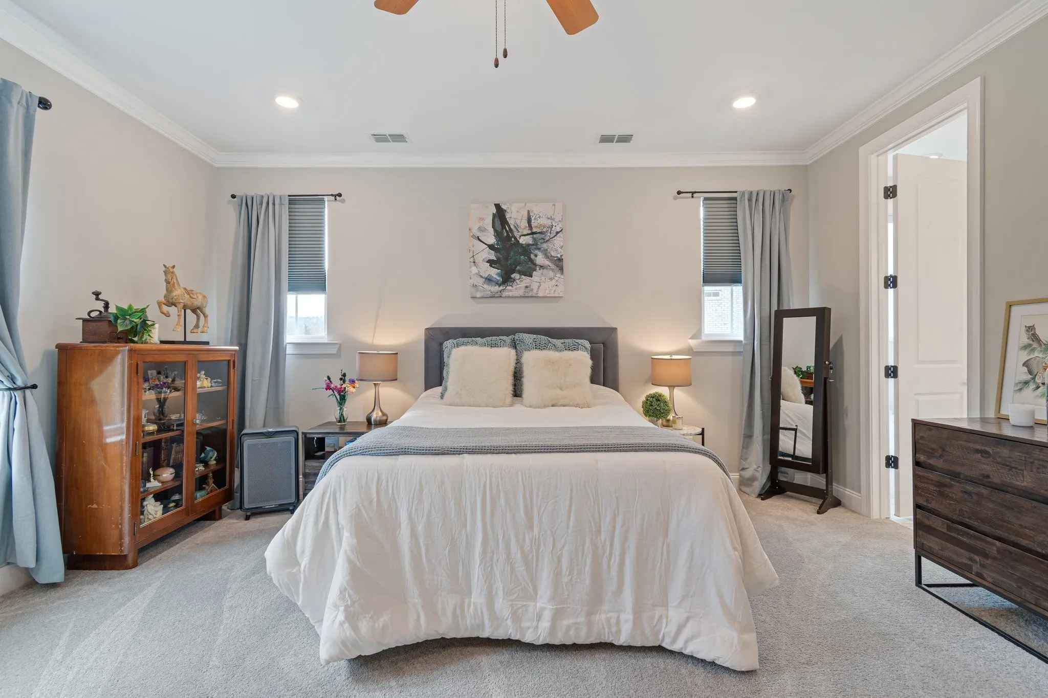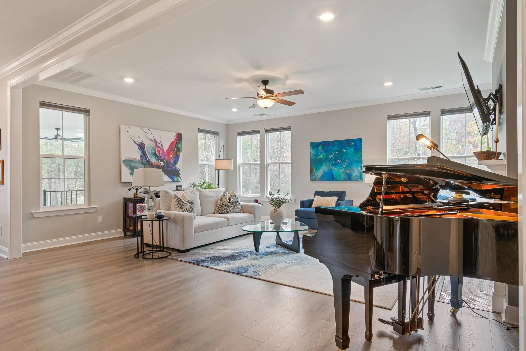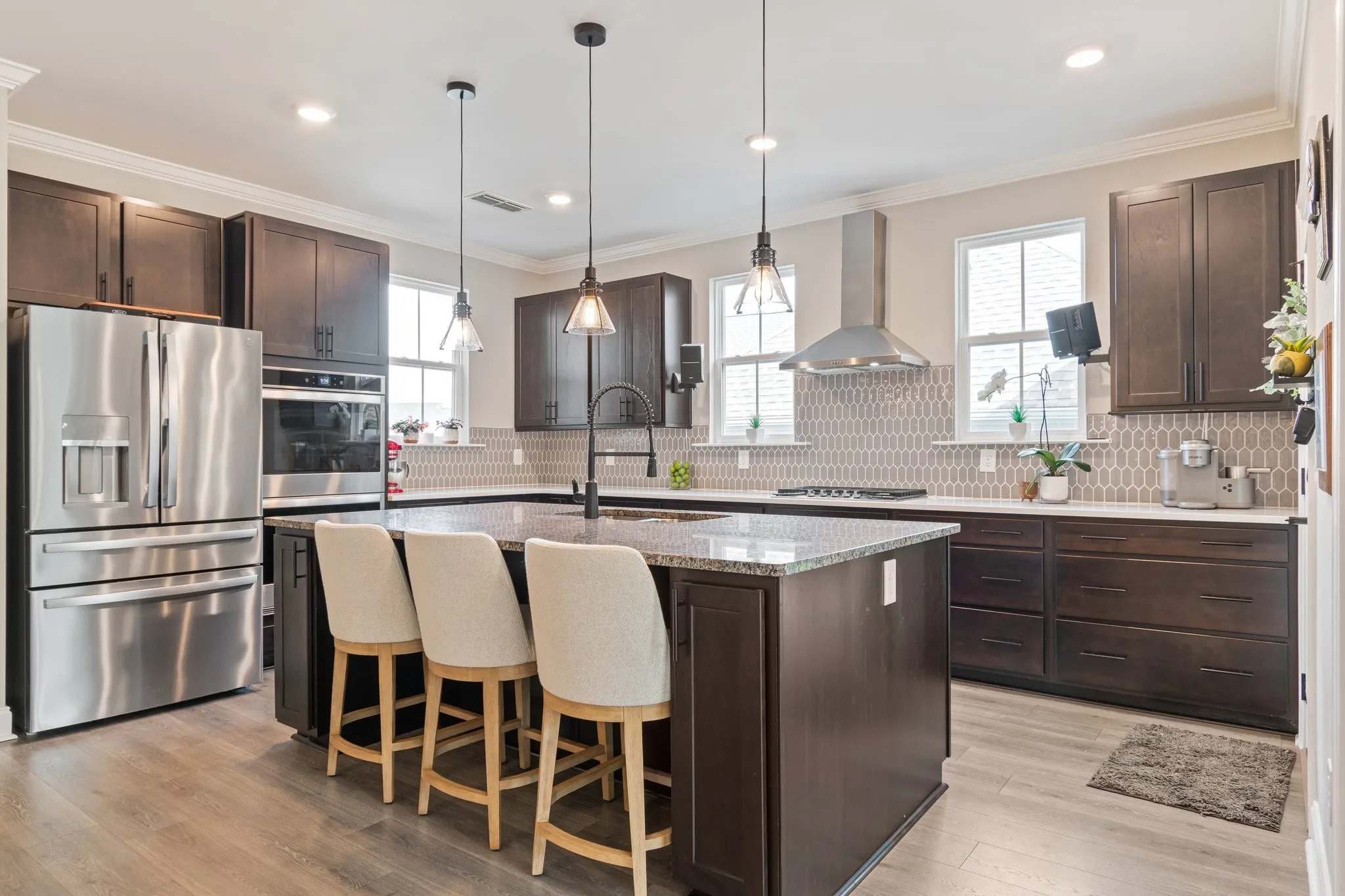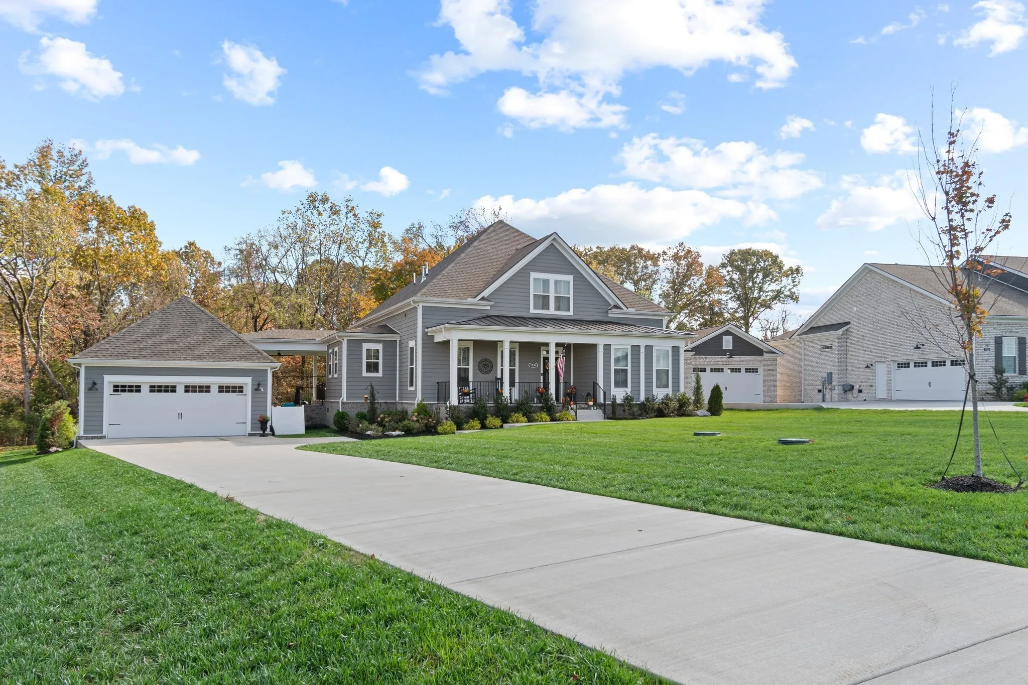 Imagine morning coffee under mature trees, evening gatherings on a spacious patio, and room to grow — including space for your dream pool — all on a rare half-acre lot in a peaceful cul-de-sac. Just 1 mile from the Williamson County line, this upgraded 4BD home built by Regent Homes less than 2 years ago offers unmatched space inside and out. Backed by serene, private woods, this home delivers the calm of nature without sacrificing convenience — perfectly positioned between Murfreesboro and Cool Springs, offering the best of both worlds without the Williamson County price tag. Inside, enjoy a bright, inviting layout with a cozy fireplace (upgraded tile surround) and a dedicated home office that doubles as a 5th bedroom. The chef’s kitchen features dark cabinetry, white quartz countertops, a designer backsplash, gas cooktop, vent hood, upgraded appliances, lighting, and drawer stacks for functional lower cabinet storage. A large island anchors the space for entertaining and everyday life. The primary suite feels like a retreat with spa-like finishes, a walk-in closet, and upgraded tile + faucets. The laundry is nearby for convenience. Upstairs, a spacious bonus room offers versatility for media, play, or guests—plus easy attic access for storage. Outside, enjoy a covered patio perfect for al fresco dining or evenings by the firepit. With wooded views, privacy, and proximity to MTSU and Murfreesboro’s top attractions, this home blends modern style with natural tranquility. Unmatched privacy, size, and location—all without the Williamson County price tag.