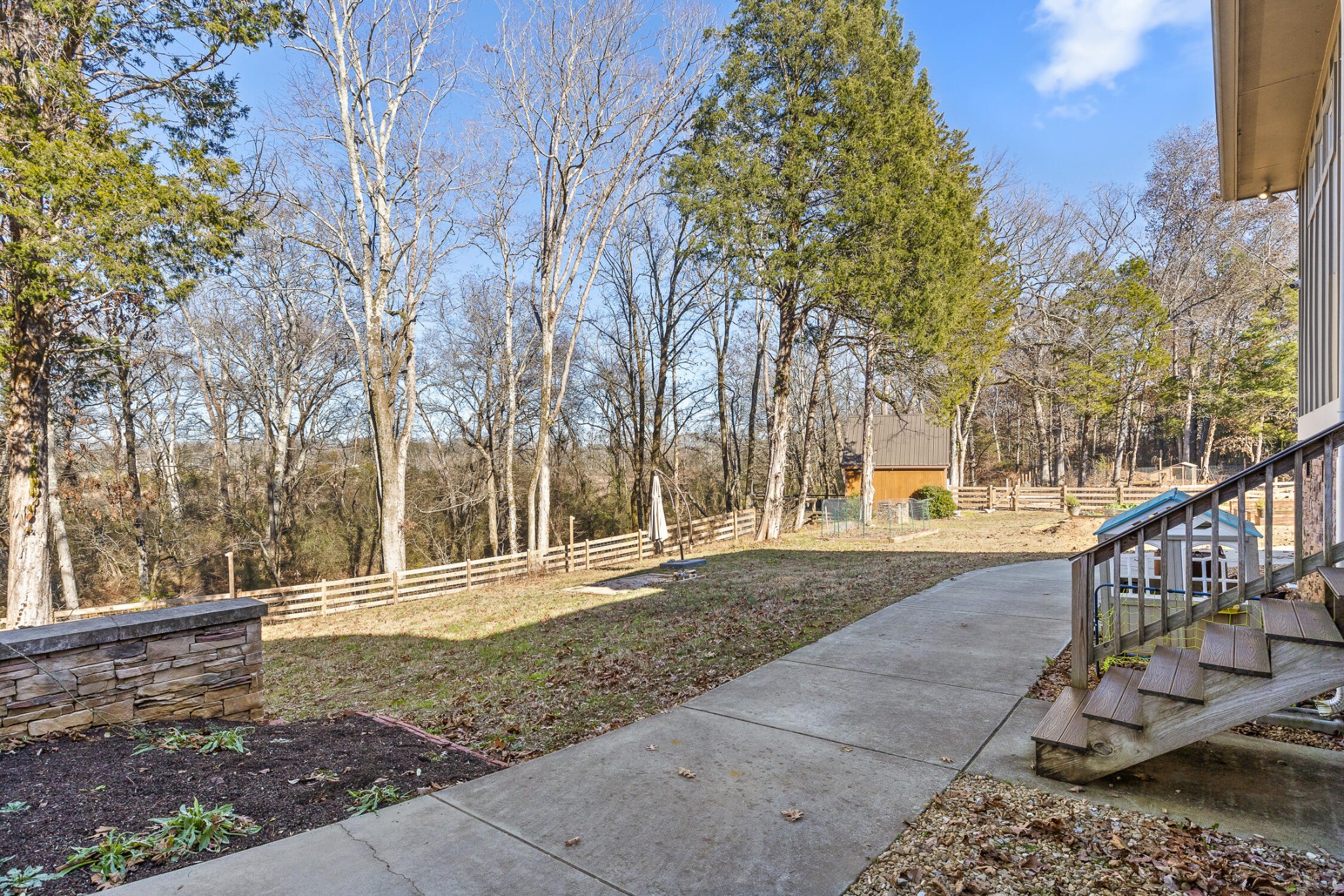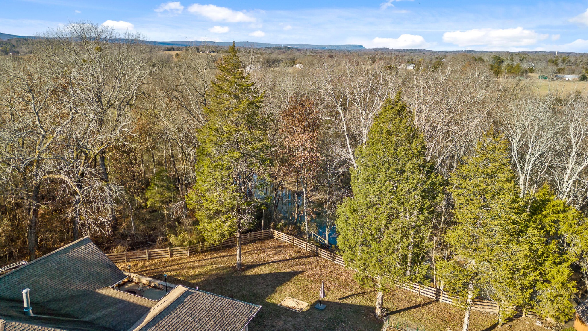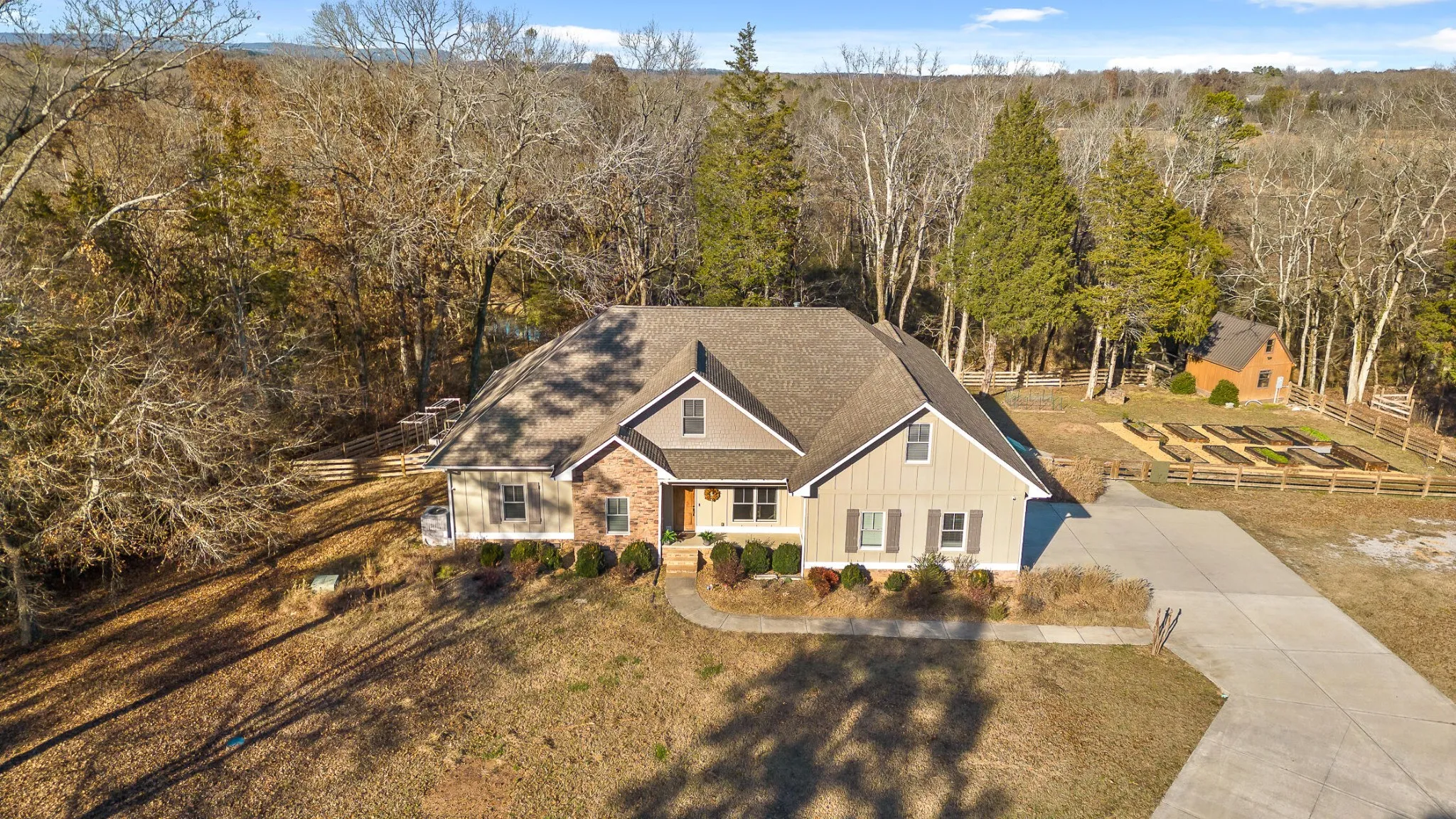 Welcome to your private sanctuary on nearly 14 acres along the serene West Chickamauga Creek. Take a drive along the meandering driveway and immerse yourself in luxury as you enter this 4-bedroom, 3.5-bathroom, 4000 sqft home, meticulously built in 2015. The grandeur begins with exquisite hardwood floors, high ceilings, and an inviting open floor plan. As you enter the home, you are greeted with the formal dining room, adorned with coffered ceilings, adjacent to the stylish kitchen. The exquisite kitchen features beautiful white cabinets, granite counters, and stainless steel appliances. Discover a hidden pantry with matching cabinet doors and a seamless pass-through to the garage for convenient grocery delivery. Seamlessly flowing into the expansive living room, revel in the tongue-and-groove accent wall and custom entertainment center or to the sunlight bathed breakfast room with custom built in hutch. The primary suite is on the first floor and dazzles with tray ceilings and a walk-in closet doubling as a storm shelter with reinforced walls and a steel door. The en-suite primary bathroom features double sinks, a spacious walk-in tile shower with double shower heads and a private water closet. There are two additional guest bedrooms on the first floor, both with walk-in closets. The spacious first guest bedroom could easily double as a second primary suite with a full en-suite bathroom and tray ceilings with tongue and groove accents. The second guest bedroom is versatile in design as this room doubles effortlessly as a convenient office space. The adjacent guest bathroom ensures comfort and convenience, making it an ideal haven for visitors or a functional workspace to suit your needs. The laundry room is a vision of functionality with custom cabinets with storage galore, a double basin sink, and beautiful tile floors.