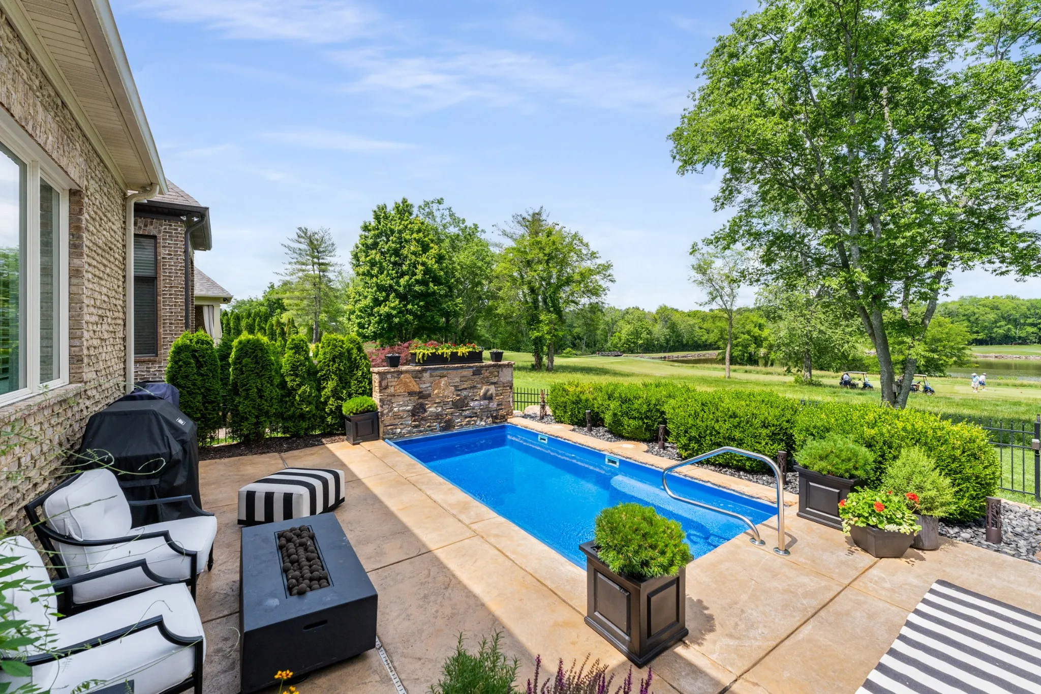 +"PublicRemarks": "Welcome to your oasis in the desirable Fairvue Plantation! Nestled against a picturesque golf course and serene lake, this beautifully renovated property offers the epitome of luxurious living. Featuring a meticulously renovated interior with high-end designer finishes, this home is an entertainer’s dream. A sparkling plunge pool with new LED lighting and pool heater is perfect for a refreshing dip on a summer day, while the adjacent fire pit sets the stage for cozy gatherings under the stars. Featuring designer lighting fixtures, GE Cafe and Thermador appliances, California Closets, travertine tile, pre-wired elevator shaft, and an office in addition to the four bedrooms, this home checks all of the boxes. The kitchen and laundry room have been fully renovated with no expense spared, and the roof and two HVAC units are also brand new. Conveniently located near amenities and less than 30 minutes to Nashville, this property offers the perfect blend of privacy and convenience."