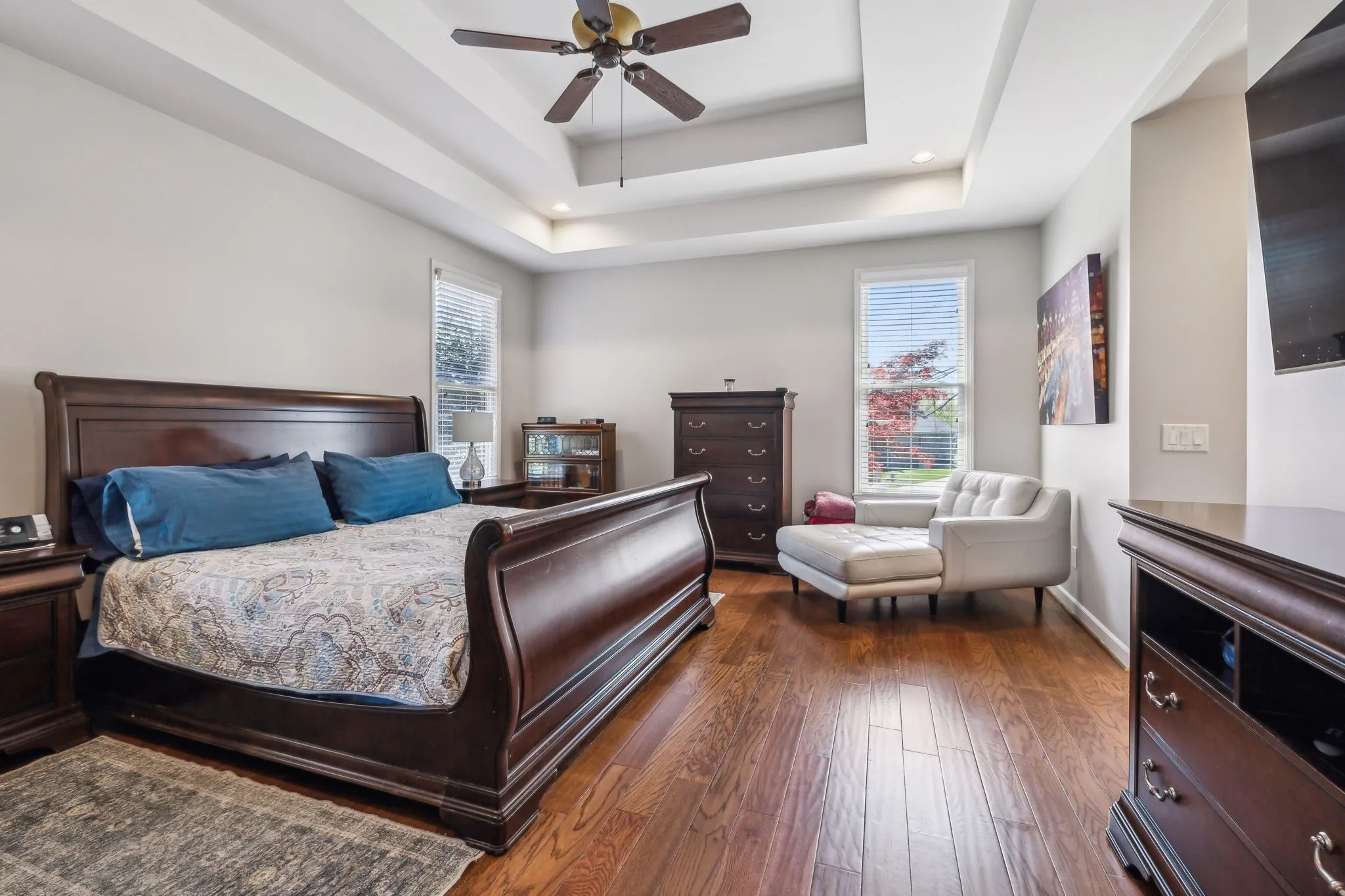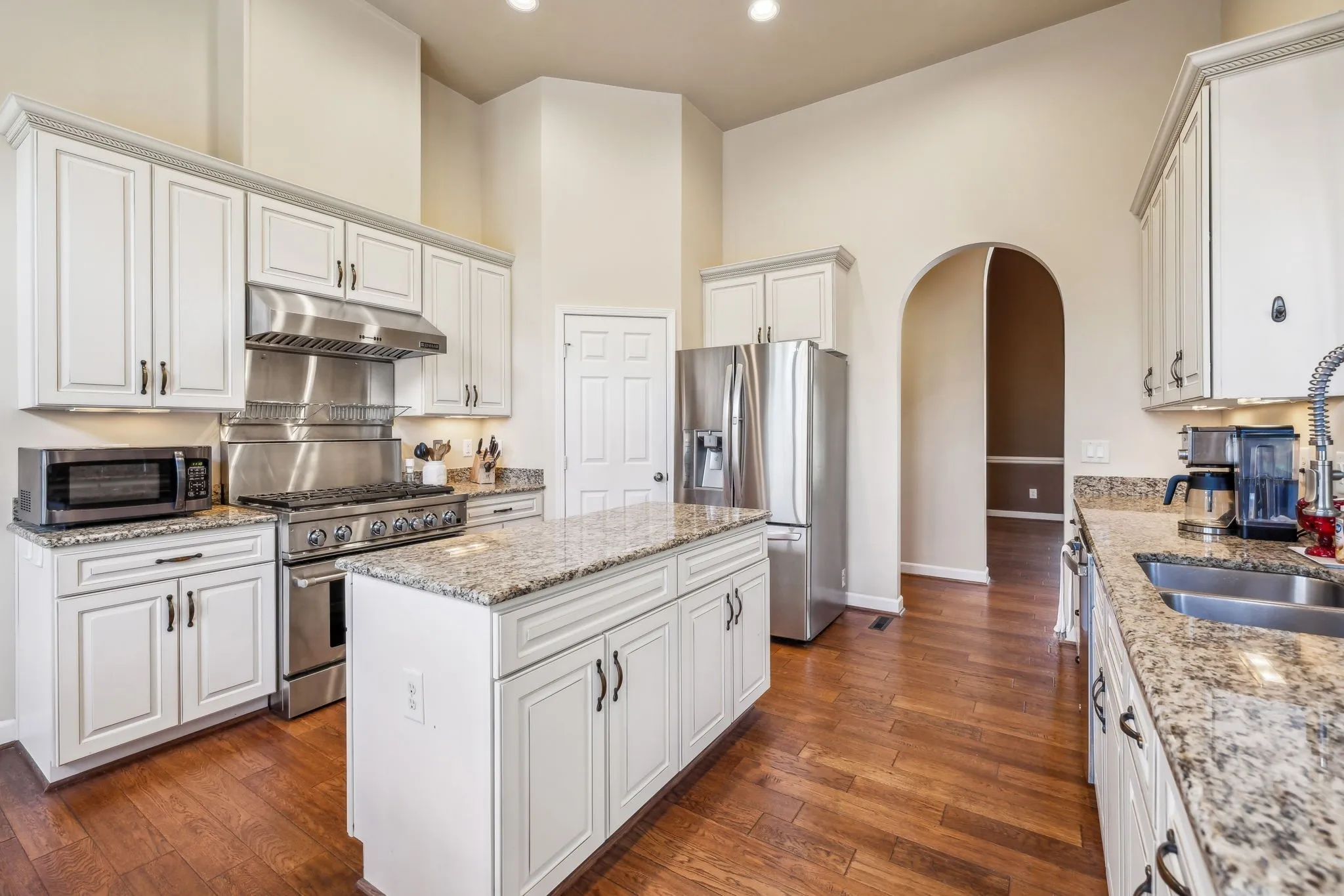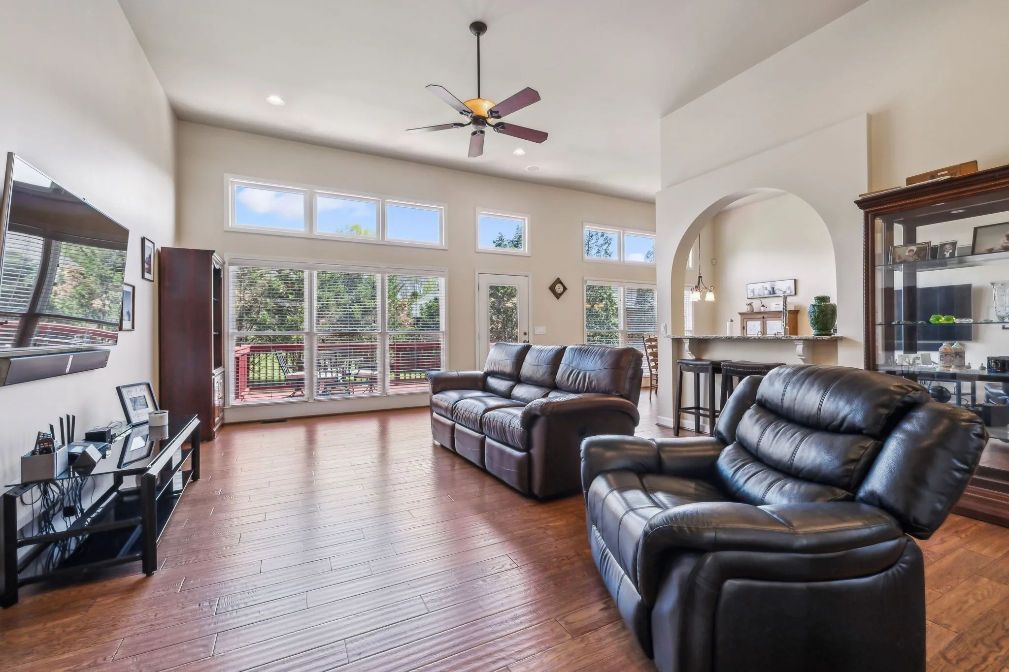 Beautiful 4 BR/3.5 BA home in desirable Meadows of Seven Points situated on a heavily landscaped .39 Acre level lot ~ MAIN LEVEL LIVING featuring THREE spacious bedrooms down ~ Hand scraped white oak hardwoods throughout the entire main level ~ Walls of windows & 12 ft ceilings in the main level living areas all in a light-filled open floor plan that invites the outdoors in ~ Great room, kitchen & dining flow together effortlessly for ideal entertaining ~ Chef’s Kitchen boasts stainless steel appliances including a JENN AIR 6 burner gas range & hood, Granite counters & workstation island + a corner pantry ~ Beautiful Primary Suite on the main level w/ His/Her WIC’s & en suite bath featuring Granite cabinet vanity & step in shower ~ Upstairs, you’ll find an expansive Bonus/Flex room with a Movie Theatre screen & projector, the private 4th bedroom & 3rd full bath perfect for teens/guests ~ The backyard, surrounded by mature trees, is ideal for outdoor activities or future enhancements + features the freshly stained deck w/ a gas grill hook up ** NEW ROOF (2024) ** Rain Soft Water Filtration System ~ Irrigation ~ Rare THREE CAR side entry garage w/ ample storage & workspace ~ CAT6/CAT5 Wiring ~ This home offers an extremely convenient location in a lovely neighborhood within minutes to Providence Market Place, two beautiful lakes, BNA Airport & a short commute to downtown Nashville!