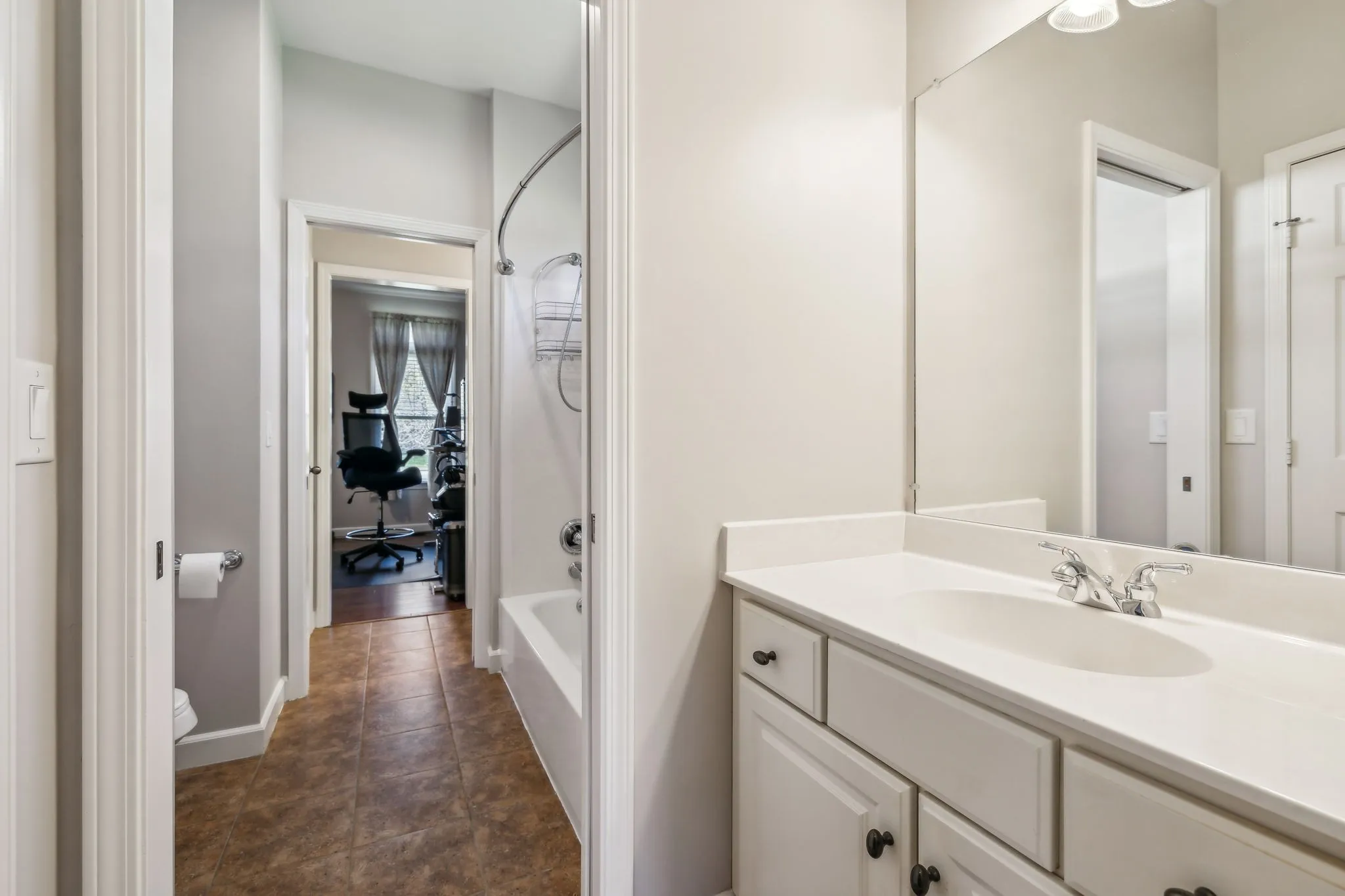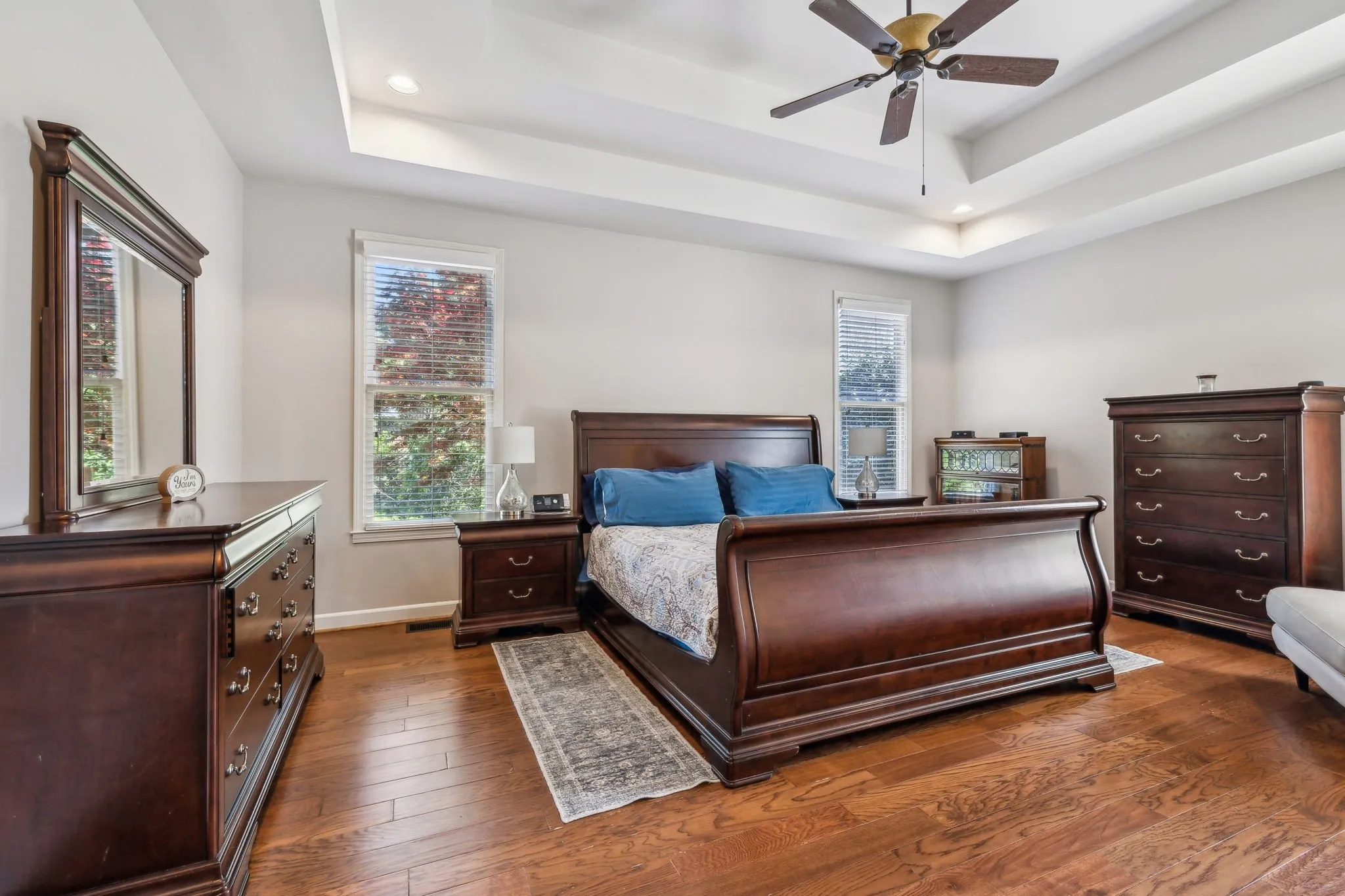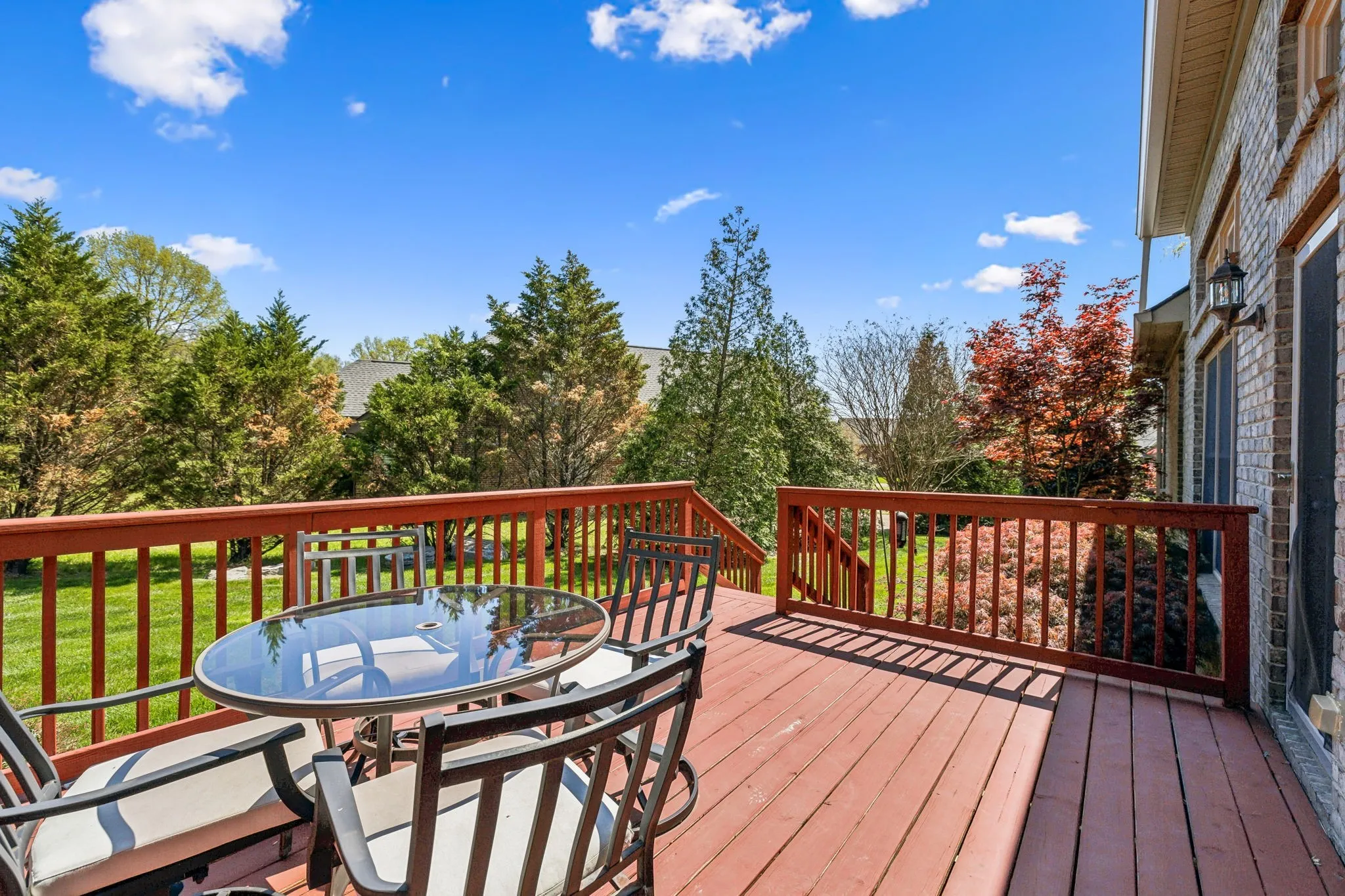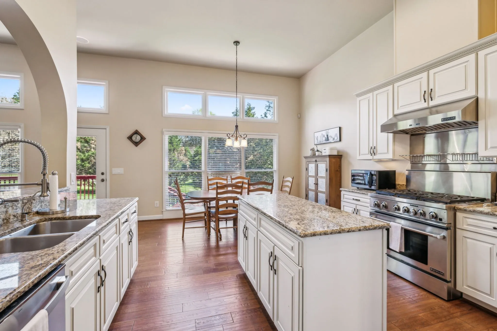 Beautiful 4 BR/3.5 BA home in desirable Meadows of Seven Points situated on a heavily landscaped .39 Acre level lot ~ MAIN LEVEL LIVING featuring THREE spacious bedrooms down ~ Hand scraped white oak hardwoods throughout the entire main level ~ Walls of windows & 12 ft ceilings in the main level living areas all in a light-filled open floor plan that invites the outdoors in ~ Great room, kitchen & dining flow together effortlessly for ideal entertaining ~ Chef’s Kitchen boasts stainless steel appliances including a JENN AIR 6 burner gas range & hood, Granite counters & workstation island + a corner pantry ~ Beautiful Primary Suite on the main level w/ His/Her WIC’s & en suite bath featuring Granite cabinet vanity & step in shower ~ Upstairs, you’ll find an expansive Bonus/Flex room with a Movie Theatre screen & projector, the private 4th bedroom & 3rd full bath perfect for teens/guests ~ The backyard, surrounded by mature trees, is ideal for outdoor activities or future enhancements + features the freshly stained deck w/ a gas grill hook up ** NEW ROOF (2024) ** Rain Soft Water Filtration System ~ Irrigation ~ Rare THREE CAR side entry garage w/ ample storage & workspace ~ CAT6/CAT5 Wiring ~ This home offers an extremely convenient location in a lovely neighborhood within minutes to Providence Market Place, two beautiful lakes, BNA Airport & a short commute to downtown Nashville!