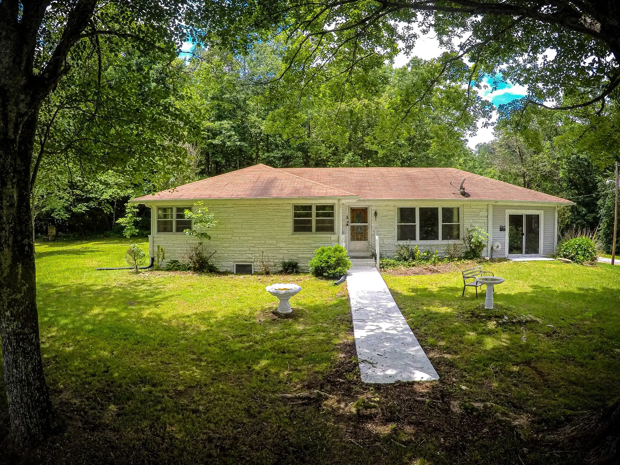 Nestled on the end of a dead end road you will find this rare gem. Whether enjoying the quite country life sitting on your front porch overlooking the ponds or enjoying the wildlife filled 12.94 acres that backs up to the elephant sanctuary. This house has it all, 4 bedroom 1 bath home that can easily be plumbed for another. It offers a full basement great for entertaining, shelter or storage. Great sunroom on back of house to enjoy sunsets or sunrises. The house is on city water but does have a spring to left of house that can be used.