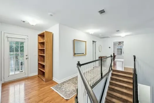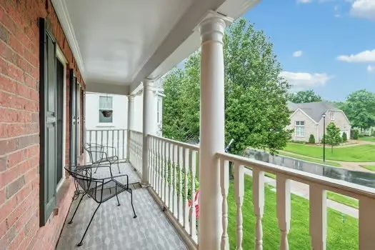 Upstairs, a beautiful covered balcony overlooks the neighborhood, & rests over an inviting rocking chair front porch, perfect for morning coffee or evening relaxation.\n