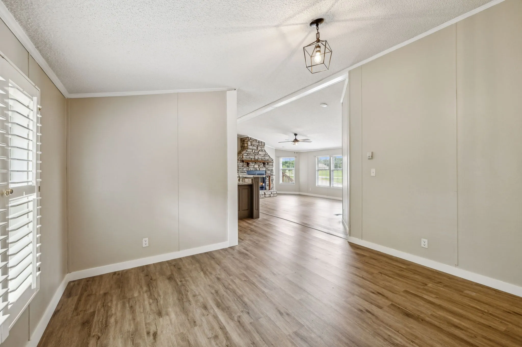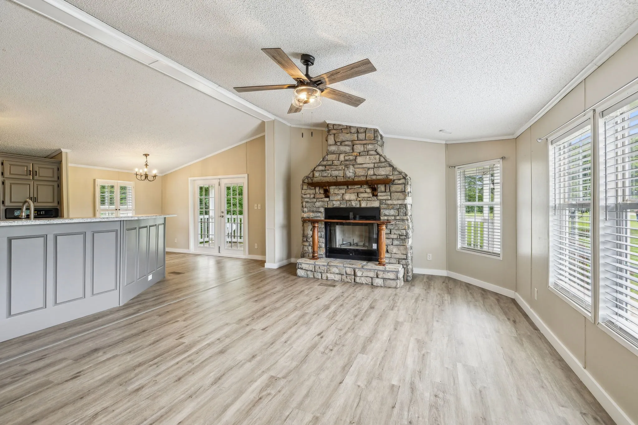 PRICED TO SELL! Manufactured home on a permanent foundation on over 3 acres. Beautiful established landscaping and well kept yard. This home had a complete renovation in 2023. New HVAC, new LVP flooring throughout, LVT in bathroom, new shower with glass doors and tub with tile surround. All new light fixtures and new paint throughout. Tile backsplash in kitchen, stainless farmhouse sink, new countertops and wood cabinet doors were added. Vacant and move-in ready! You DO NOT want to miss this spacious home with all of these quality upgrades! The storage shed will convey!