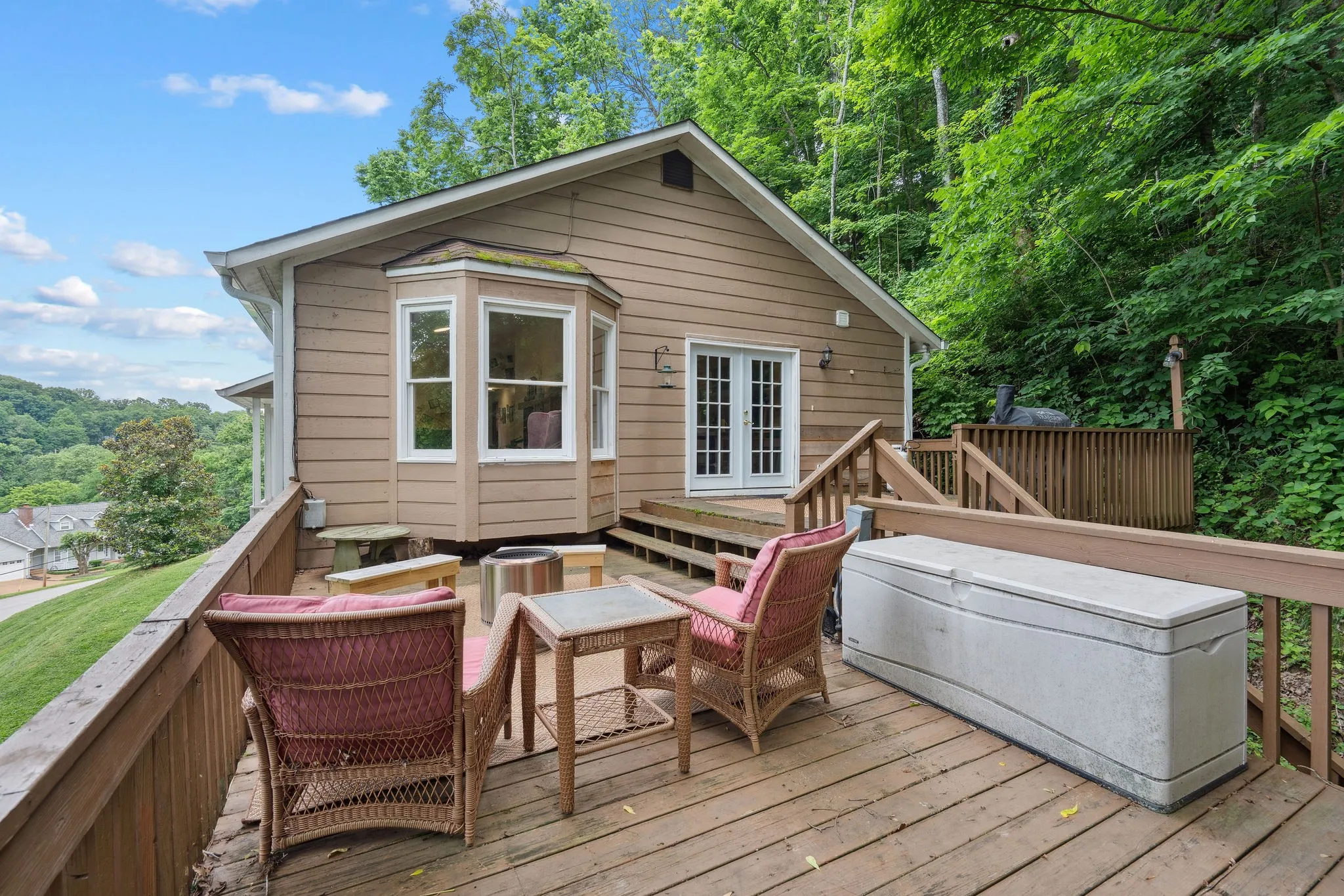Nestled on a wooded hillside in one of Franklin’s most sought-after areas, 1116 Hunting Creek Rd is a whimsical retreat offering quintessential Tennessee views and a rare chance to own in this coveted location for under $900K. The split-level layout features the main living area upstairs, complete with a fully renovated kitchen, double-sided fireplace, and three bedrooms with two full baths. Step outside to the expansive deck—perfect for entertaining with breathtaking, tree-filled views. The lower level offers endless possibilities: a den, in-law suite, storm shelter, home gym, etc. Plus, a finished 80 sq ft shed with windows, a door, and electricity—not included in the square footage—is a perfect studio or creative space. Zoned for top-rated Williamson County Schools, this home is full of charm in a one-of-a-kind setting, and it is priced to sell quickly…schedule your showing ASAP!