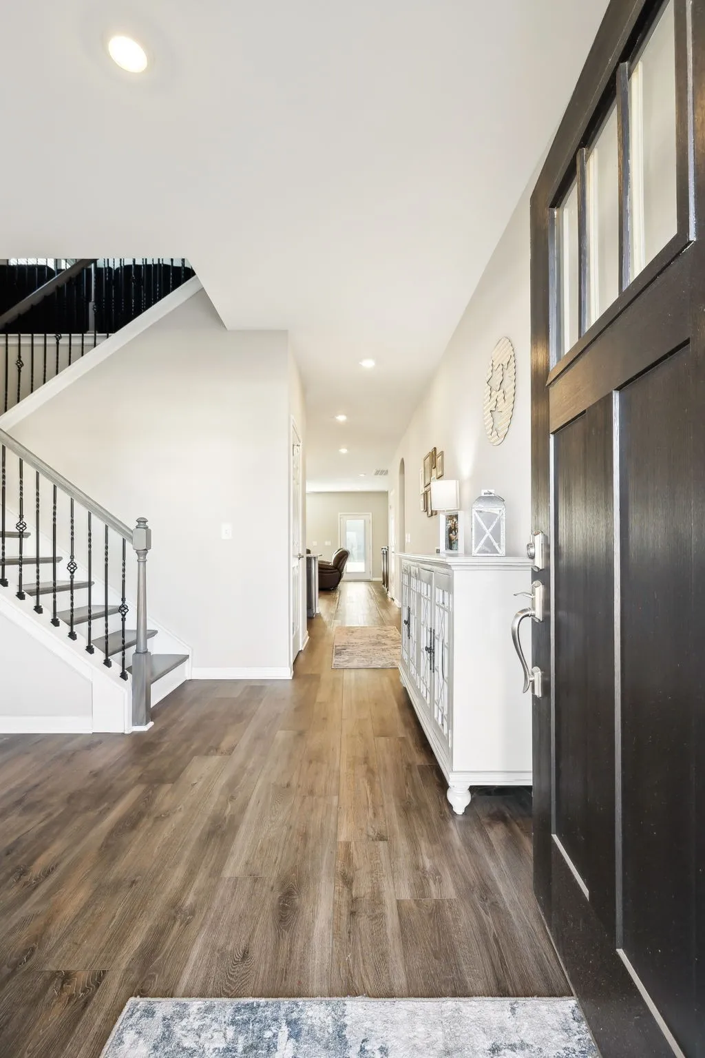 Enjoy the ease of a downstairs primary suite, perfect for convenience and privacy. The open-concept floor plan flows seamlessly through the main living areas, ideal for both entertaining and everyday living. Stunning arched doorways, iron stair spindles, and luxury vinyl plank flooring add timeless style throughout.