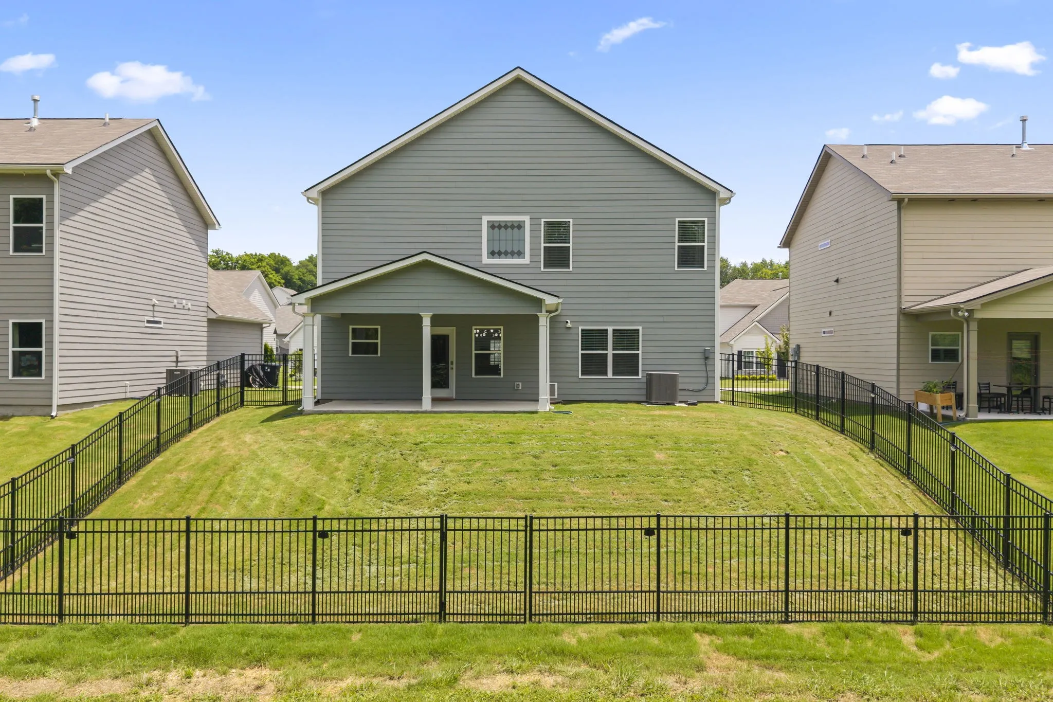 • Fully fenced backyard with no neighbors behind you for extra privacy